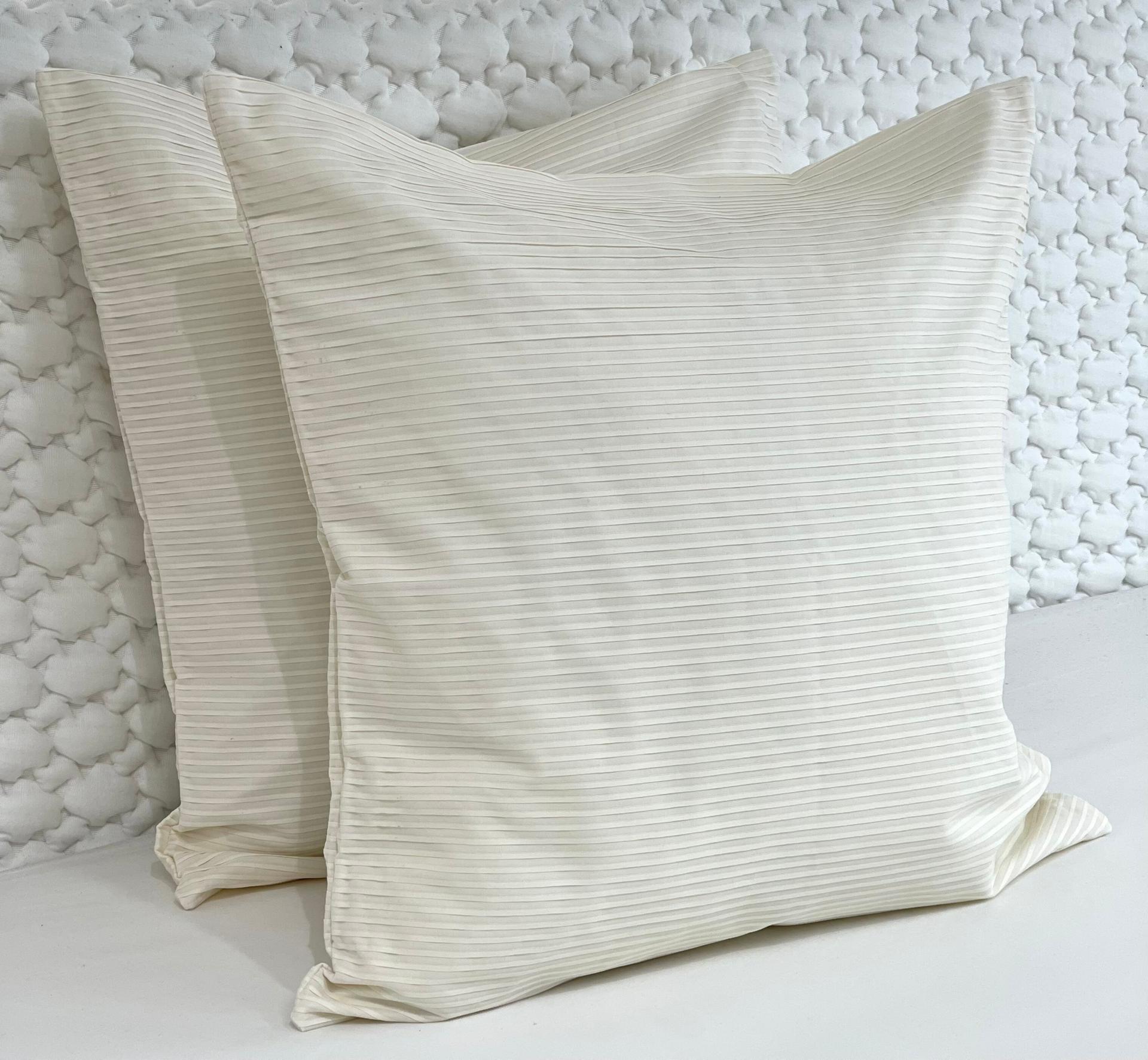 Fronha almofada decorativa com fecho. Modelo em bege com padrões riscas.
