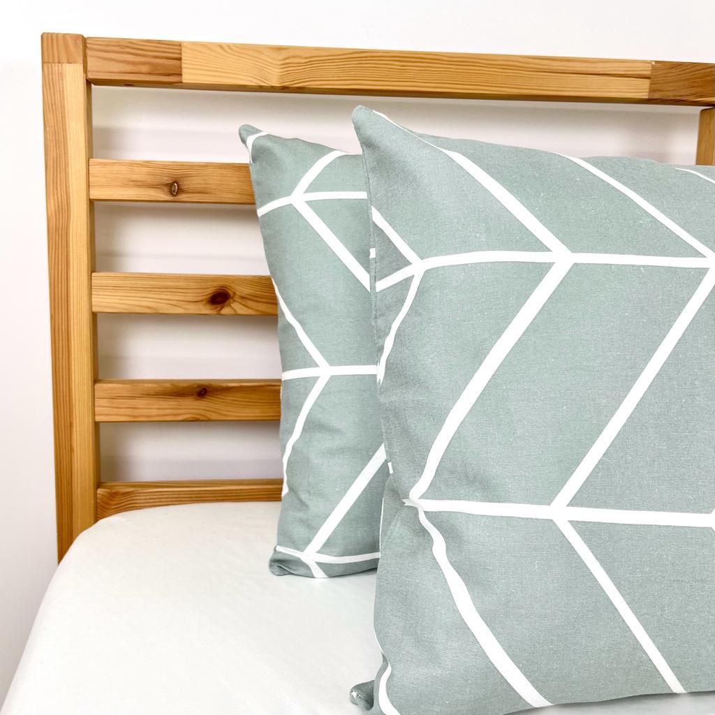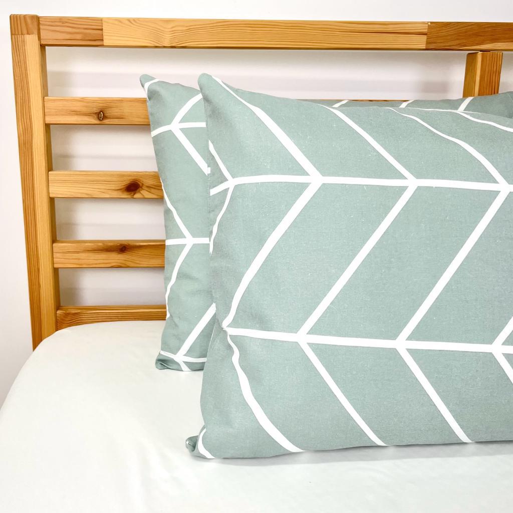 Fronha de almofada em flanela , almofada de cama. Muito macia e quentinha. Disponivel em verde-agua com padrão.