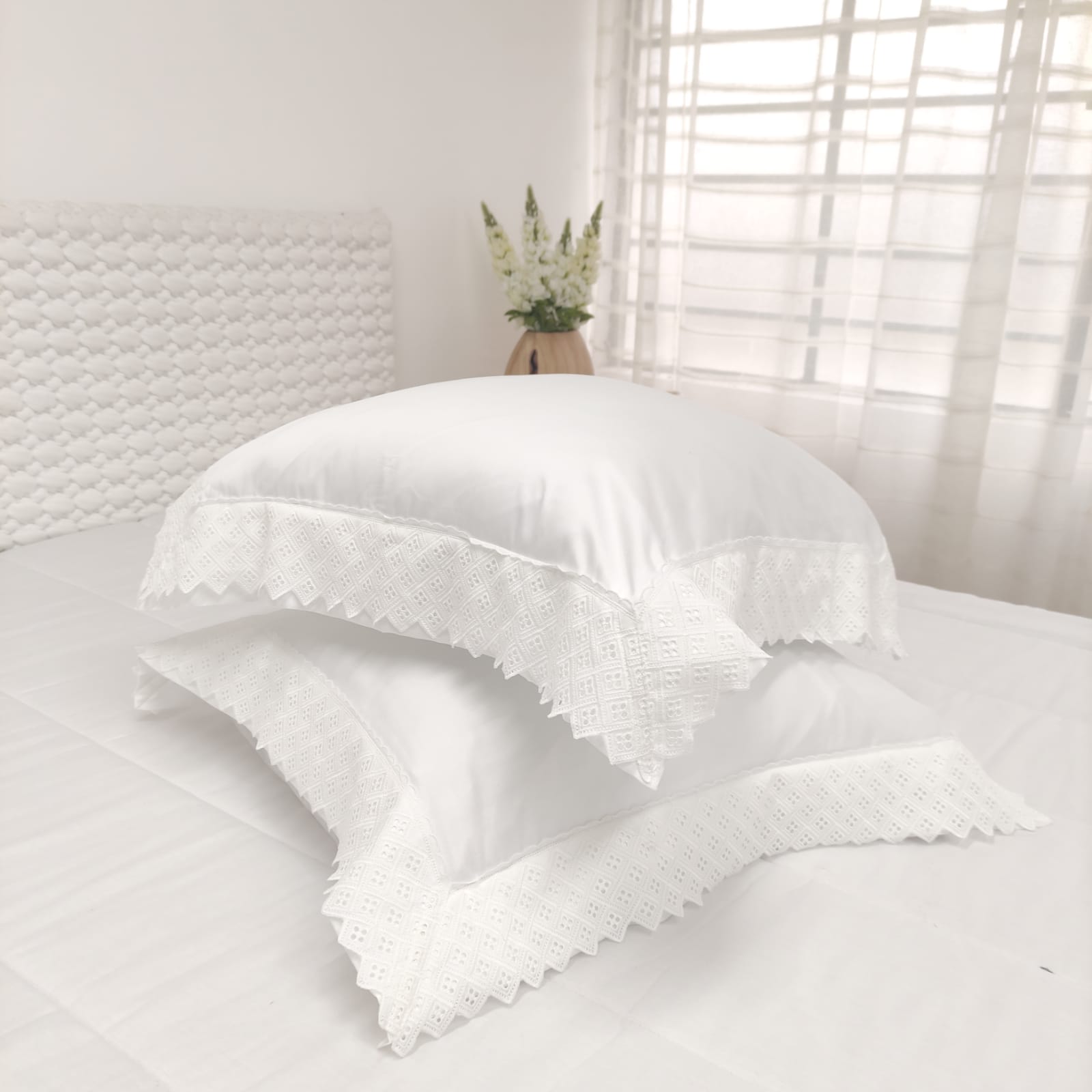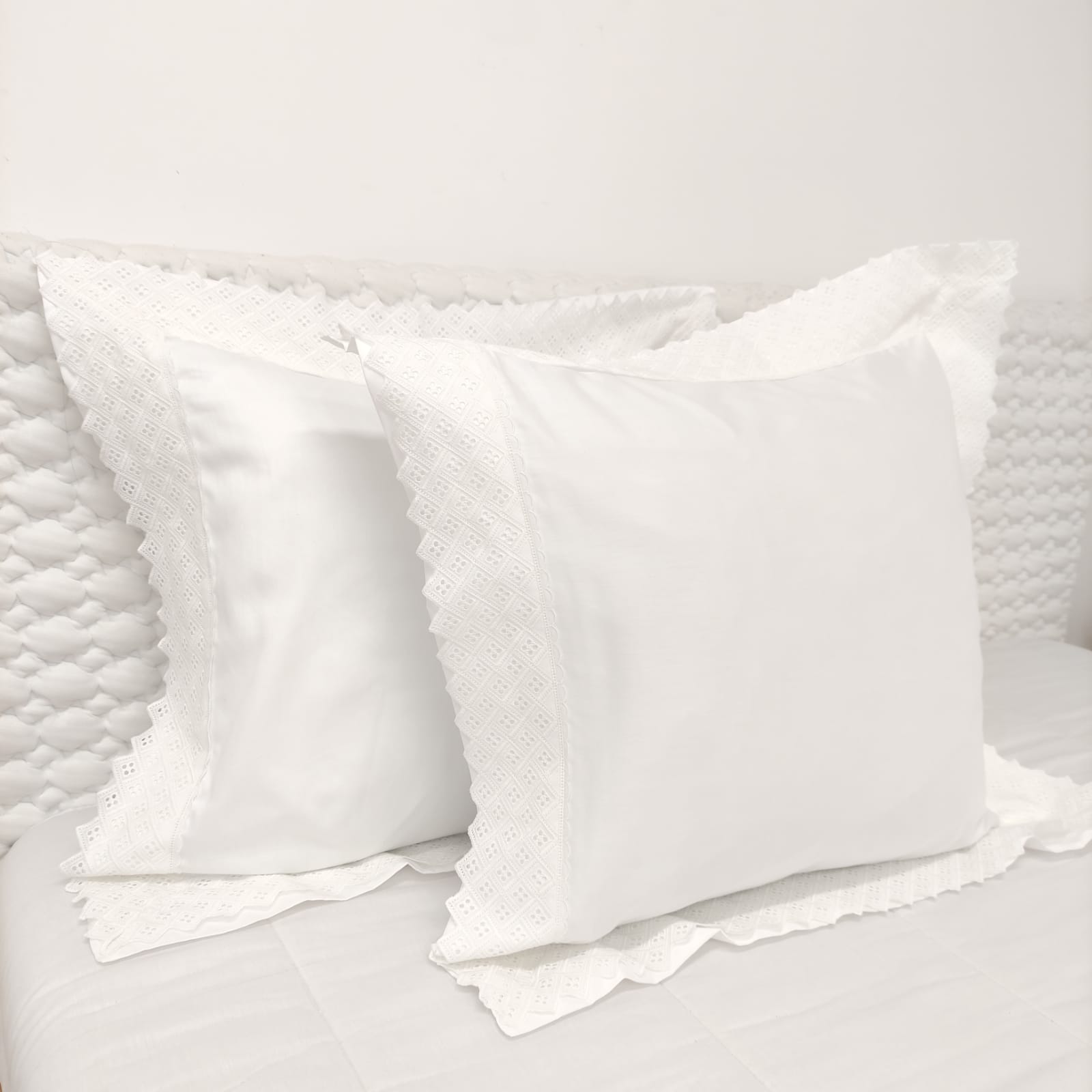 Fronha de Almofada em 100% algodão e com pormenor de renda em  volta da almofada. Adicione um toque acolhedor, clássico e elegante ao seu quarto.