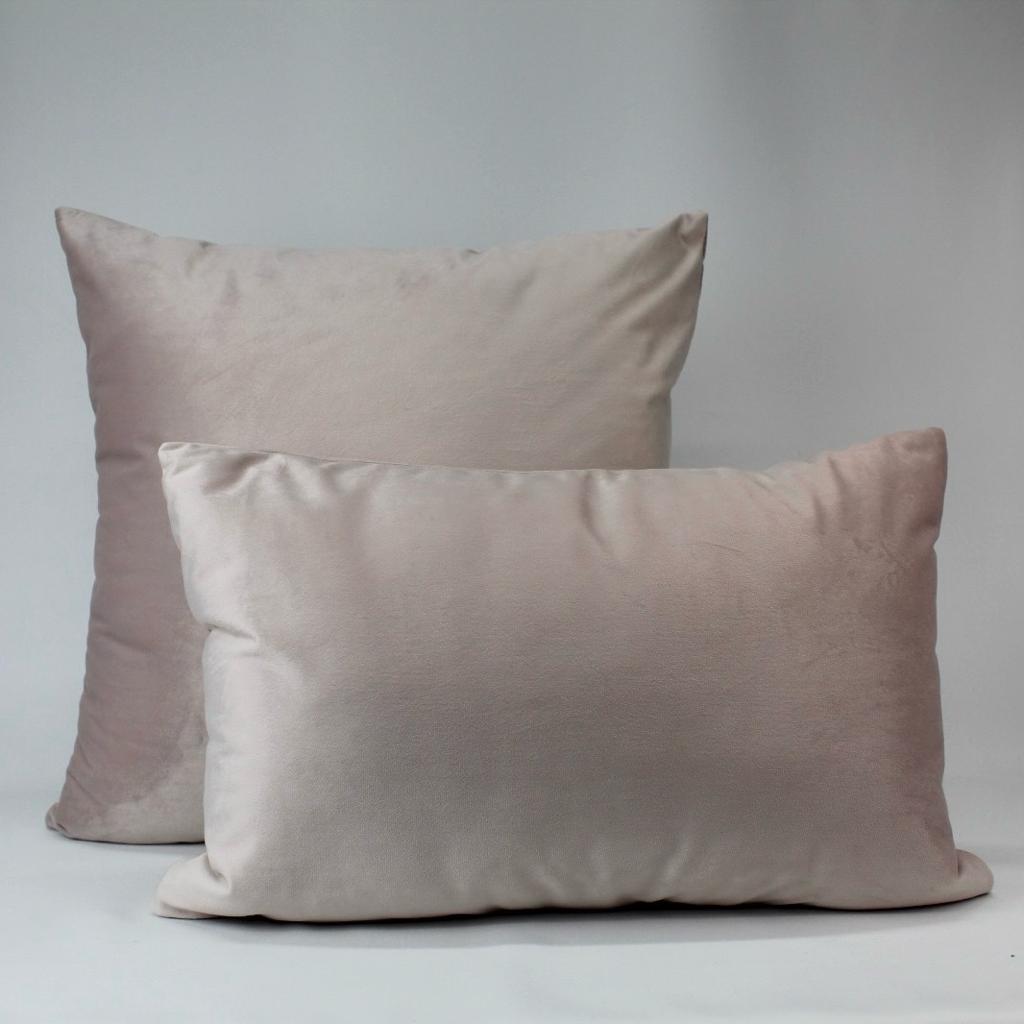 Almofada decorativa de veludo rose com enchimento.
