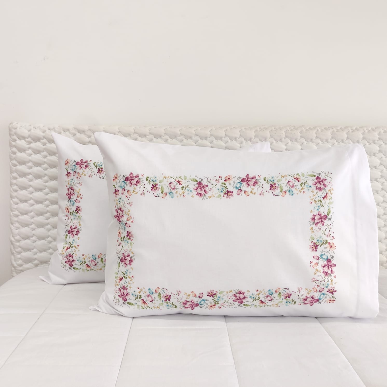Fronha de Almofada Branco com Florzinhas.