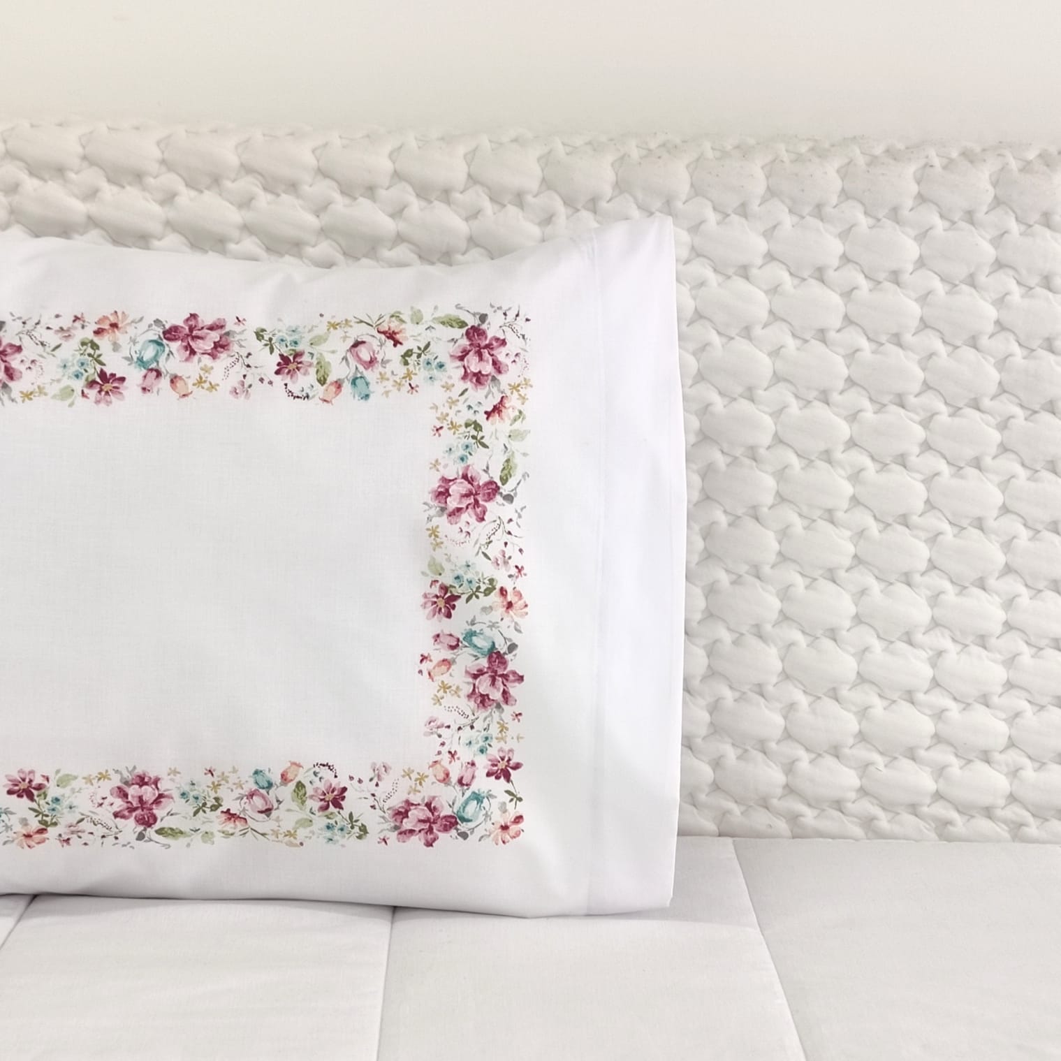 Fronha de Almofada Branco com Florzinhas