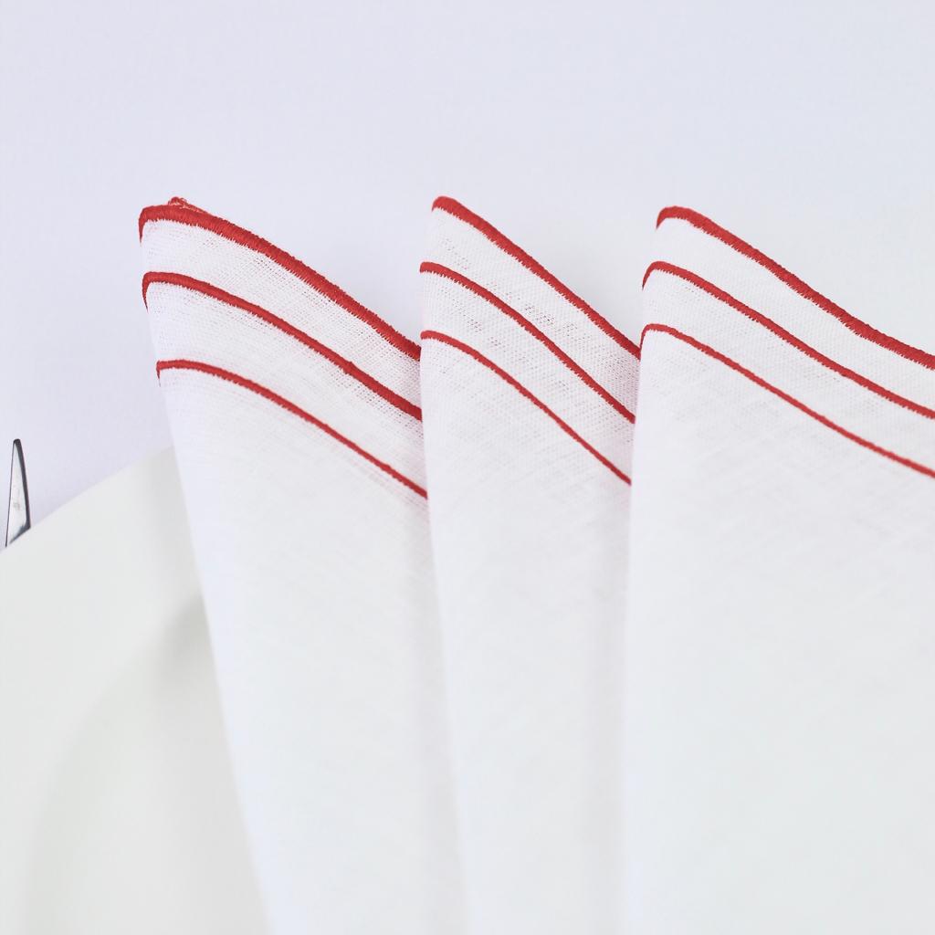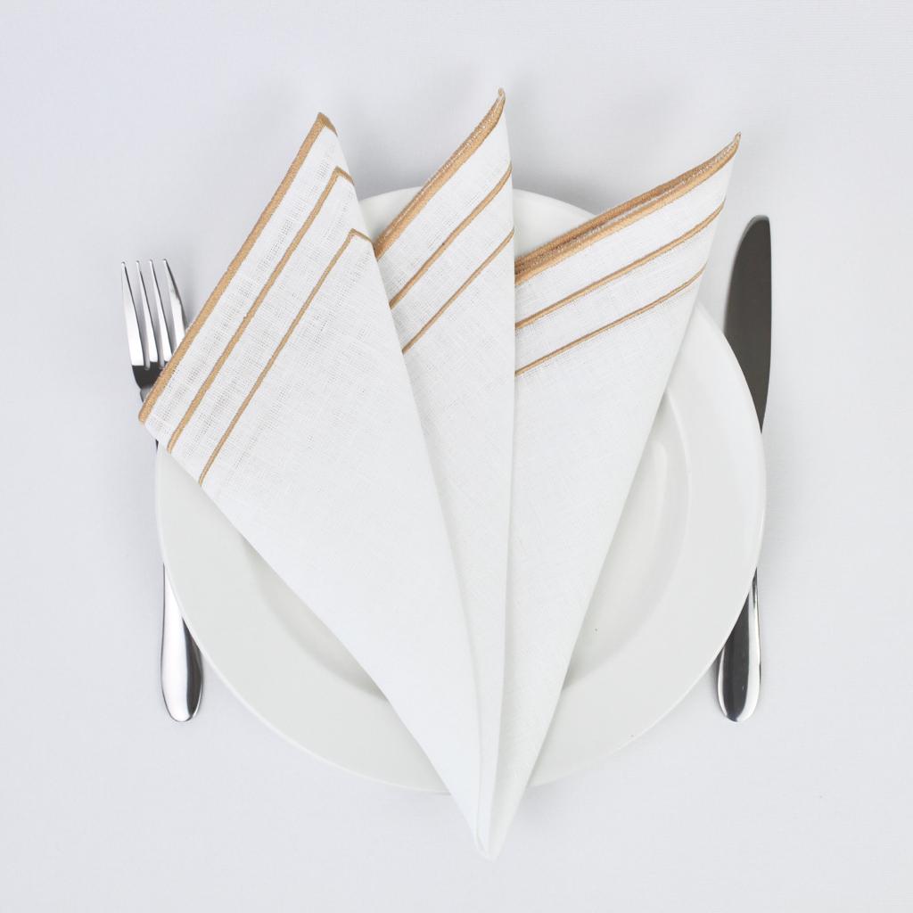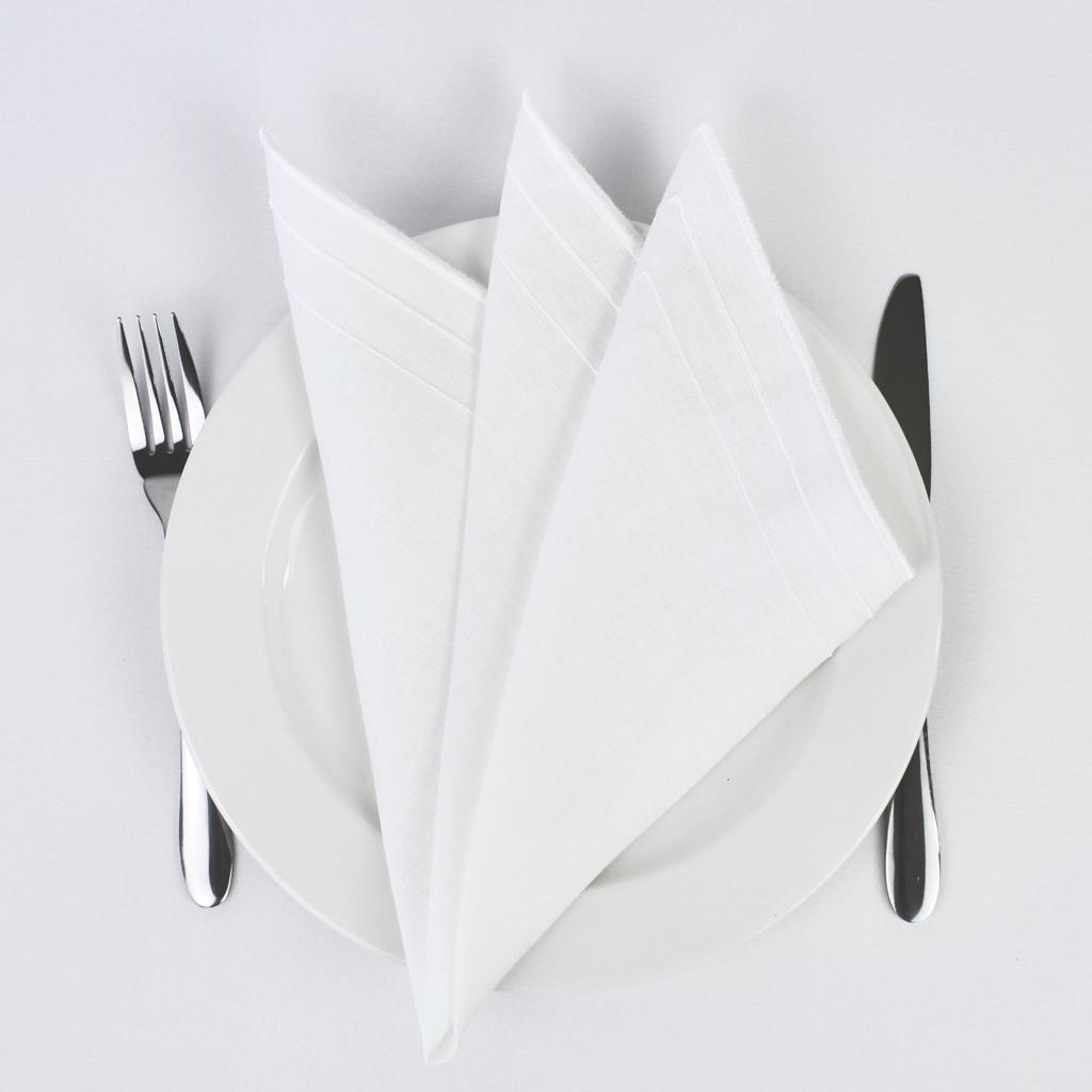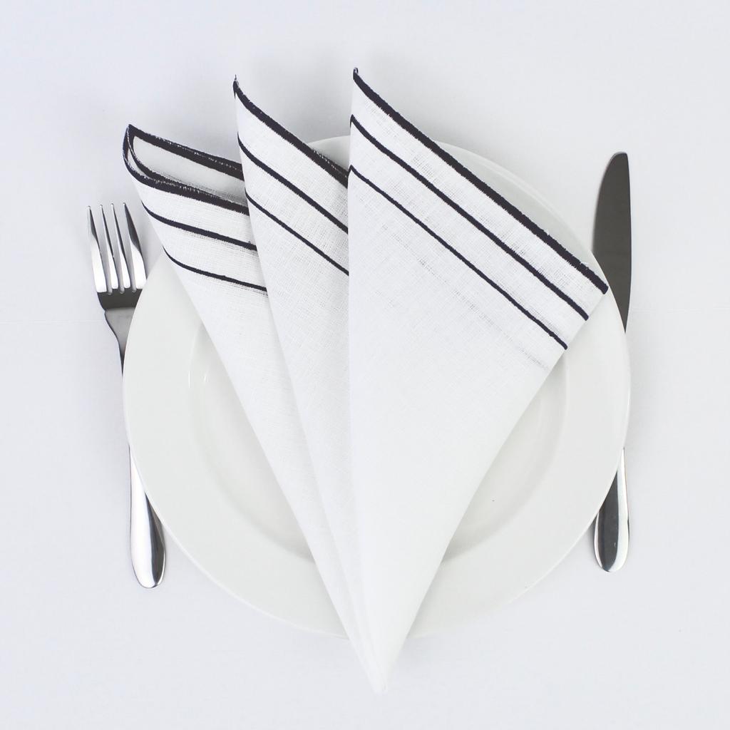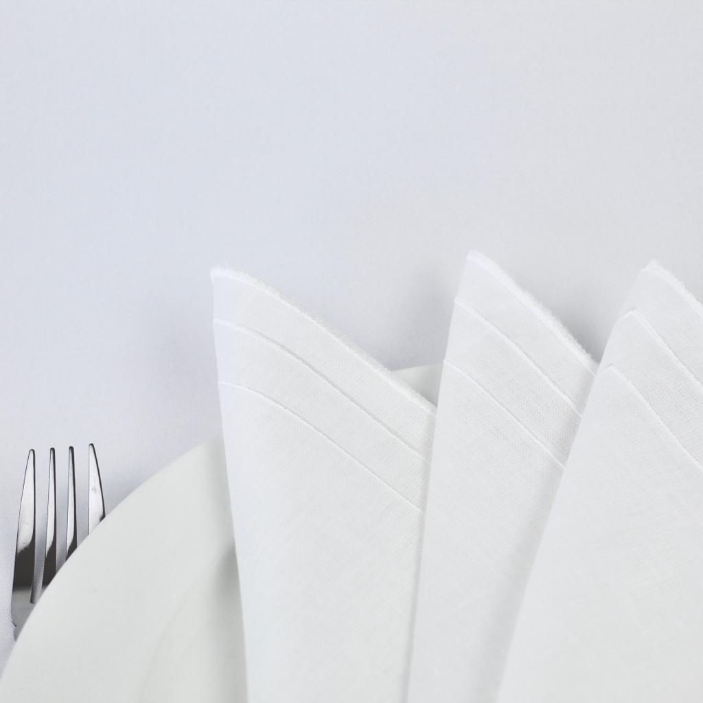 Guardanapo em linho branco com detalhe de 3 rolinhos, disponivel em várias cores.