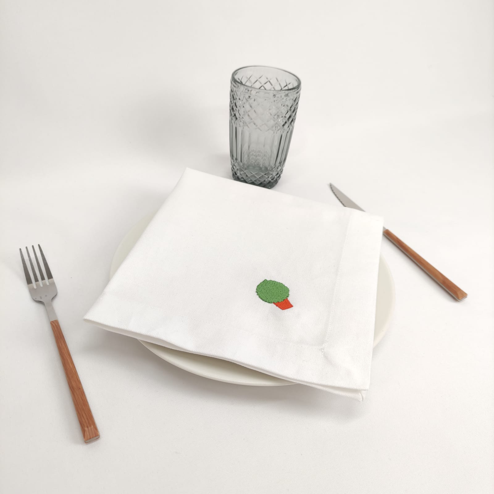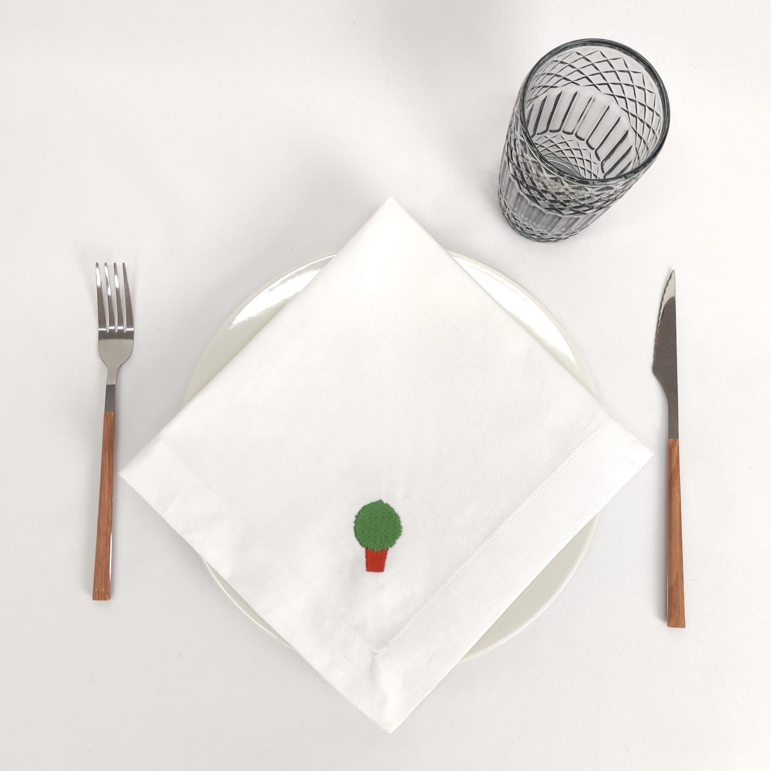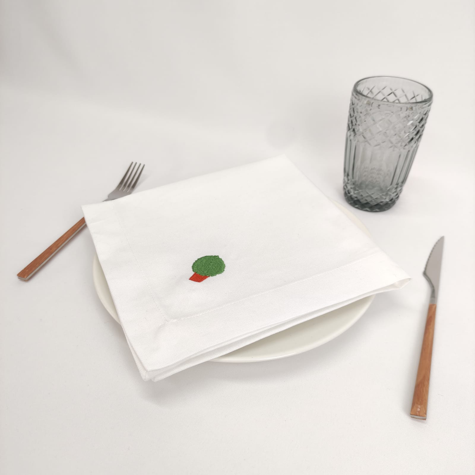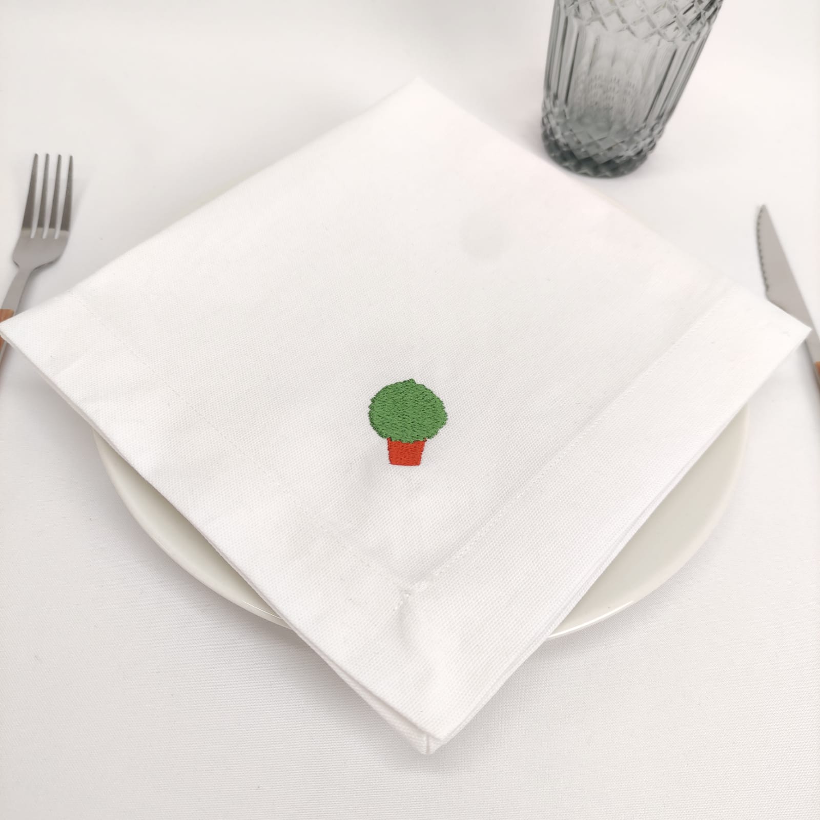 Guardanapo em algodão branco com bordado de manjerico disponivel em vários tipos de acabamento, bainha de 2cm, inglesa, ponto aberto e rolinho.