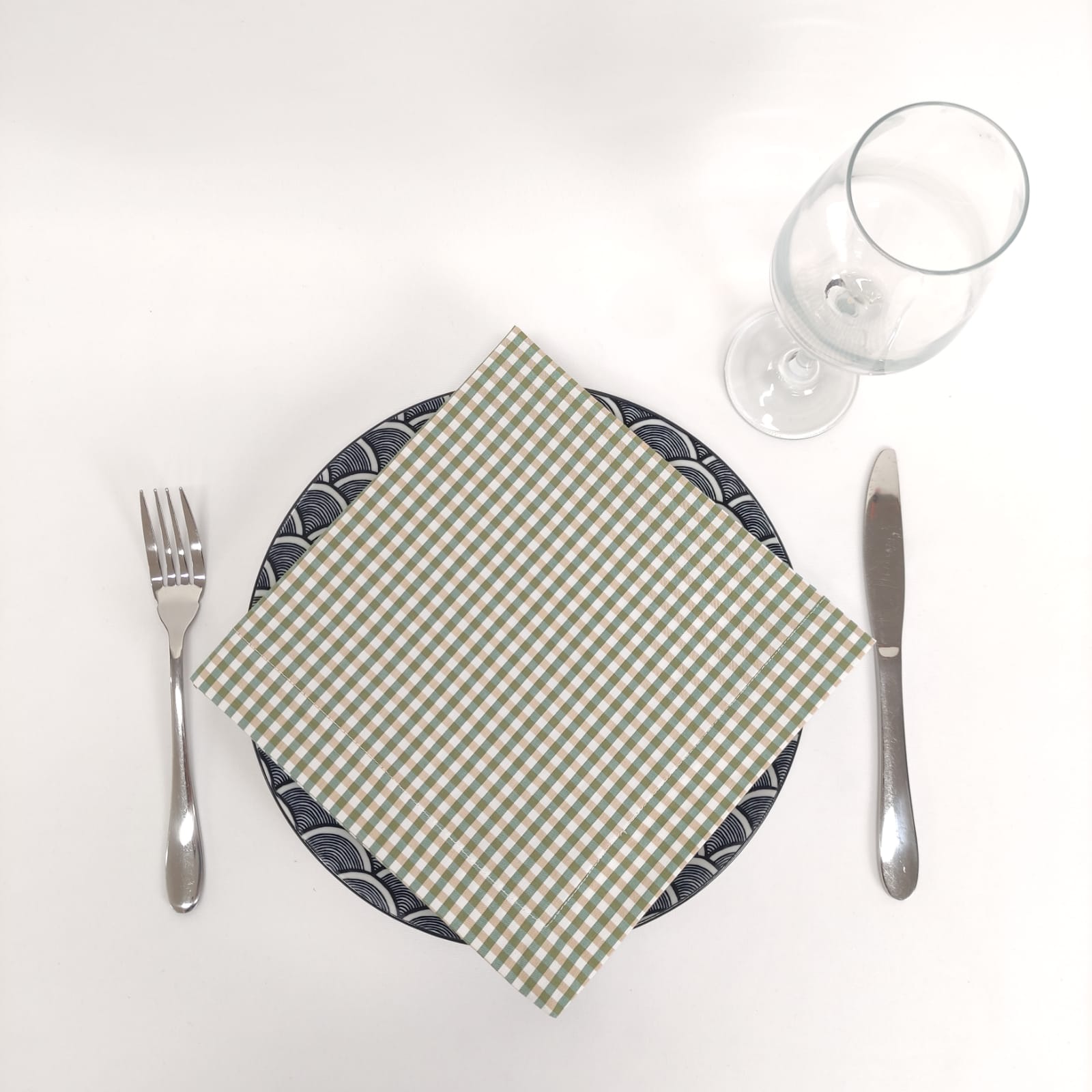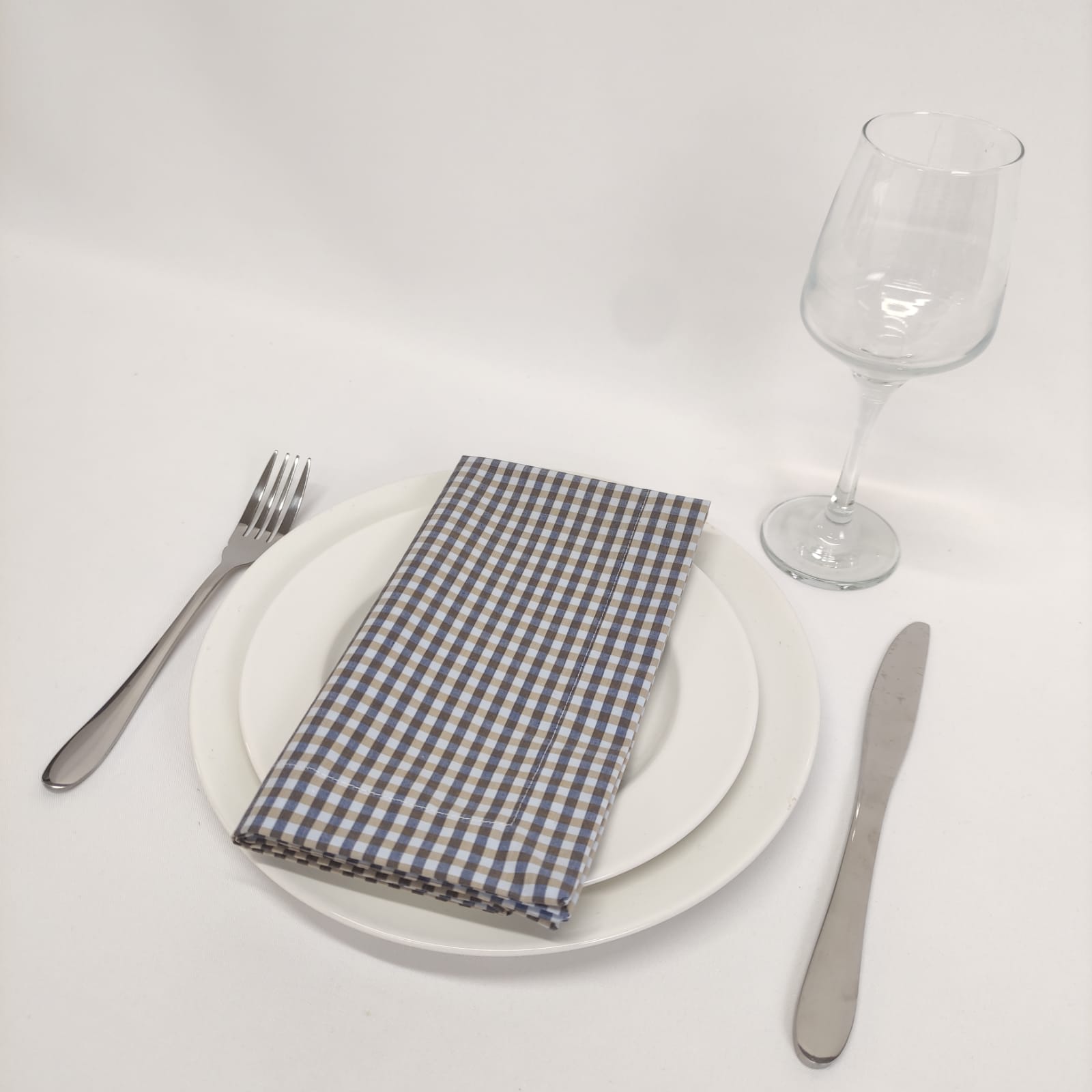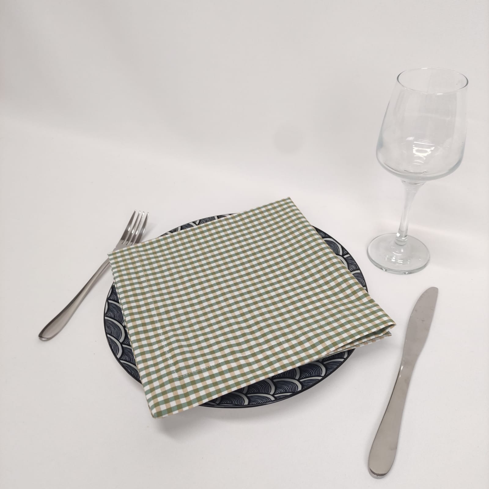 Guardanapo em algodão, com padrão de quadradinhos, ideal para adiconar um toque moderno à sua mesa. Disponível em três tons, verde, cinza e castanho.