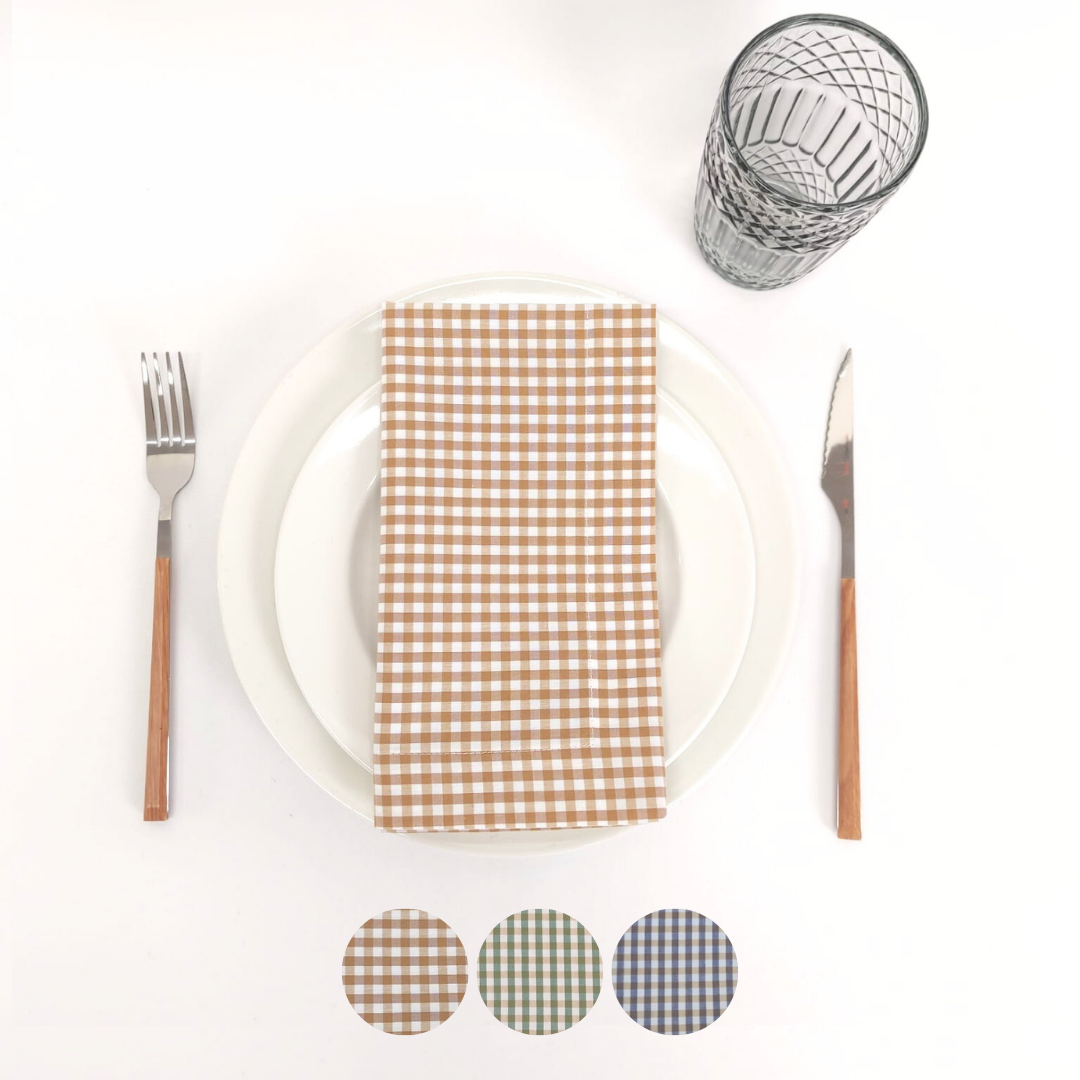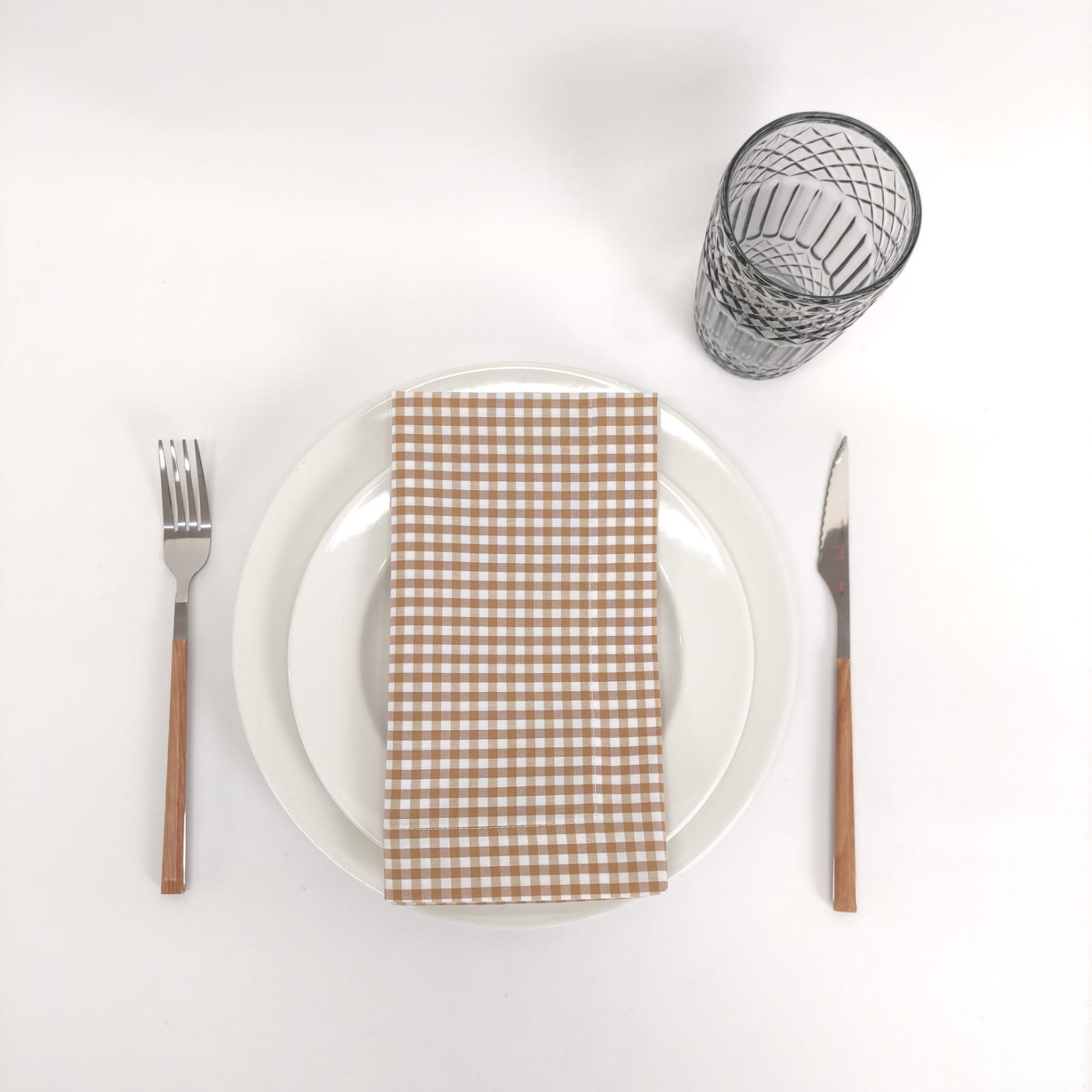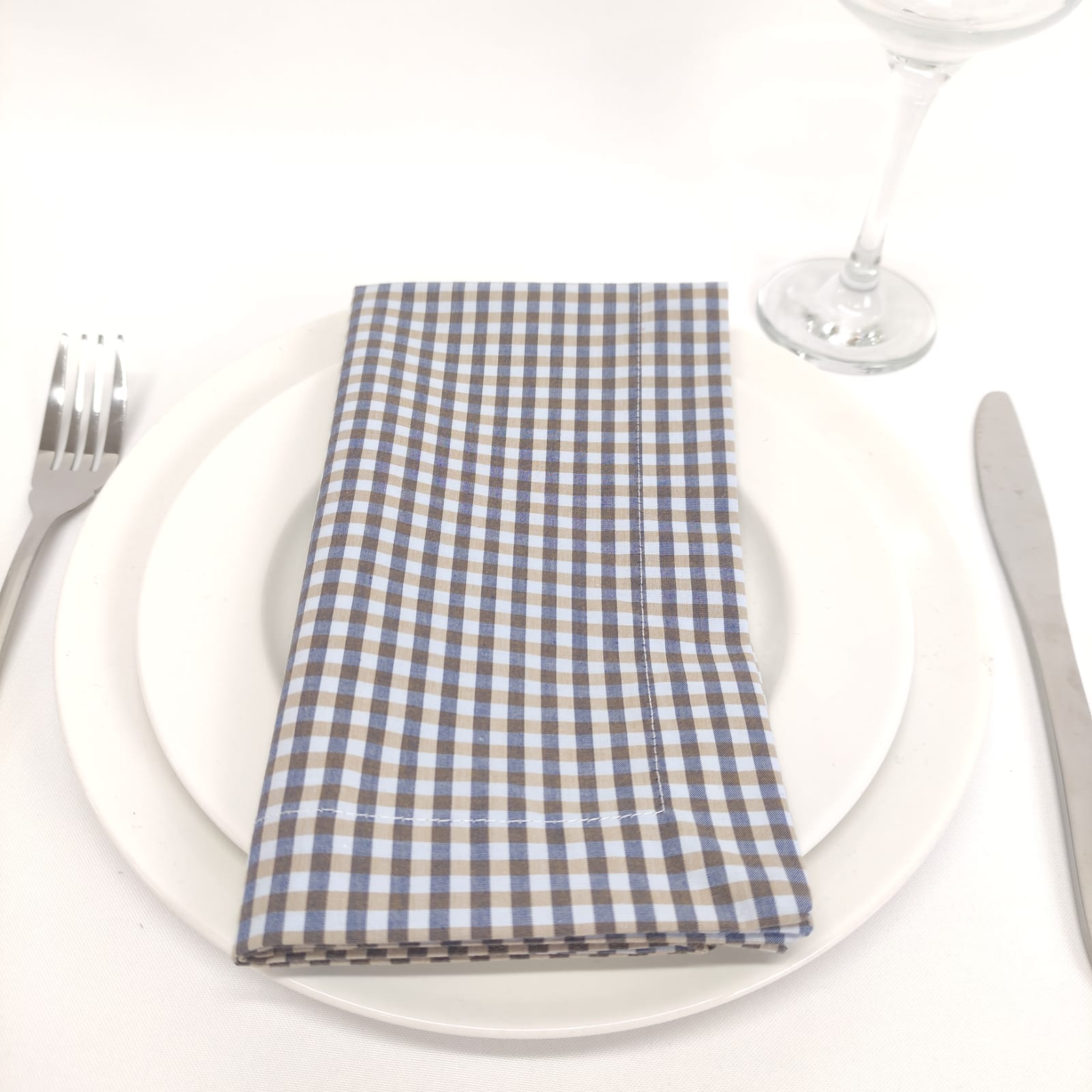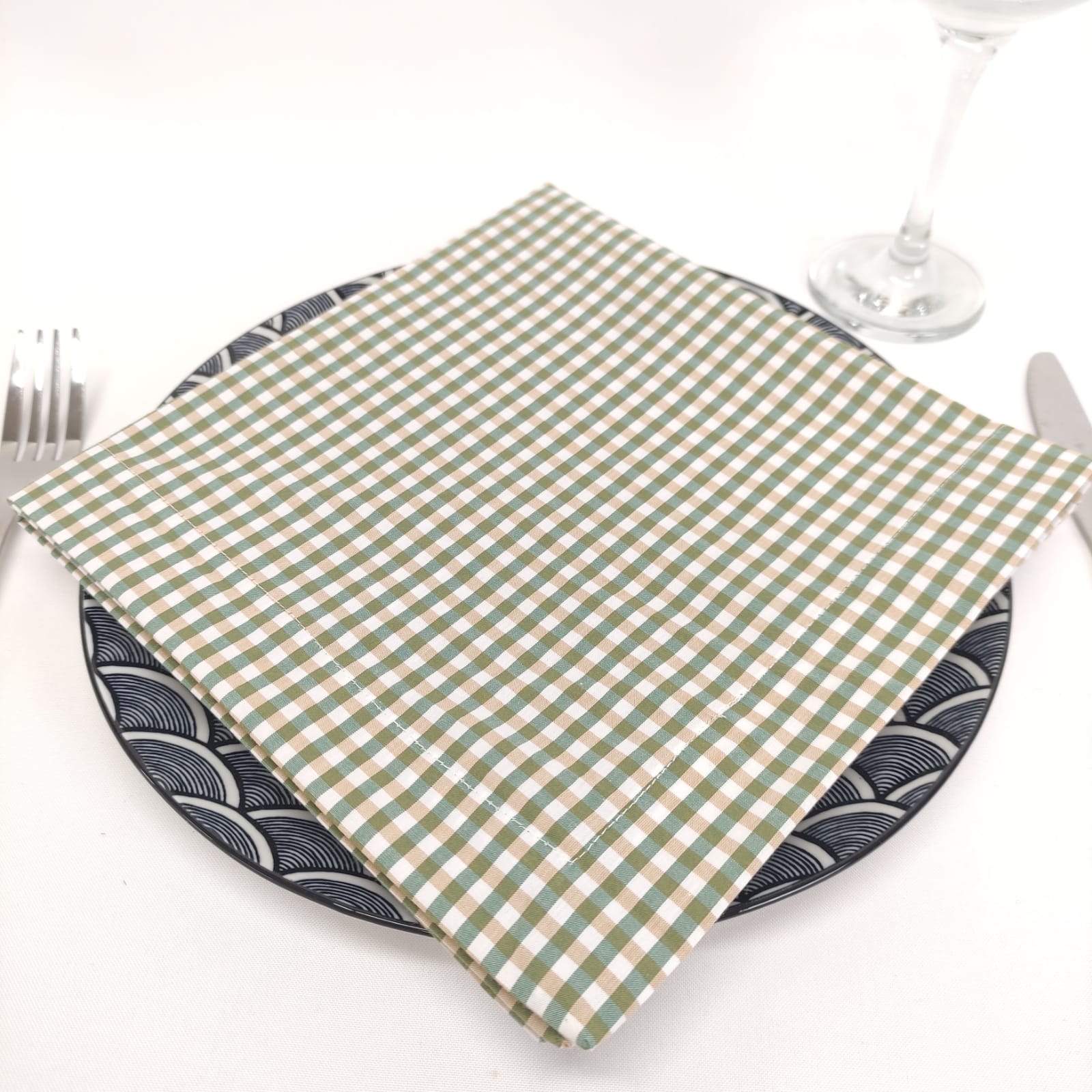 Guardanapo em algodão, com padrão de quadradinhos, ideal para adiconar um toque moderno à sua mesa. Disponível em três tons, verde, cinza e castanho.