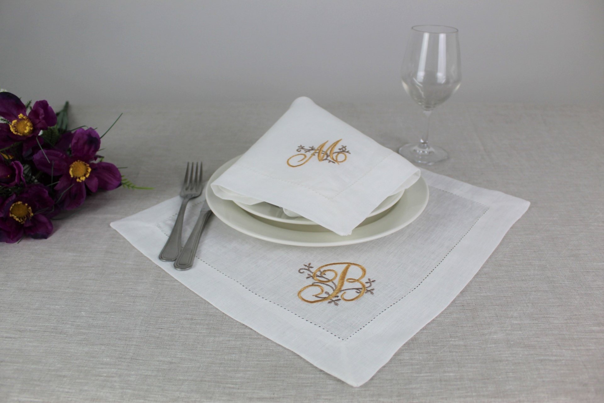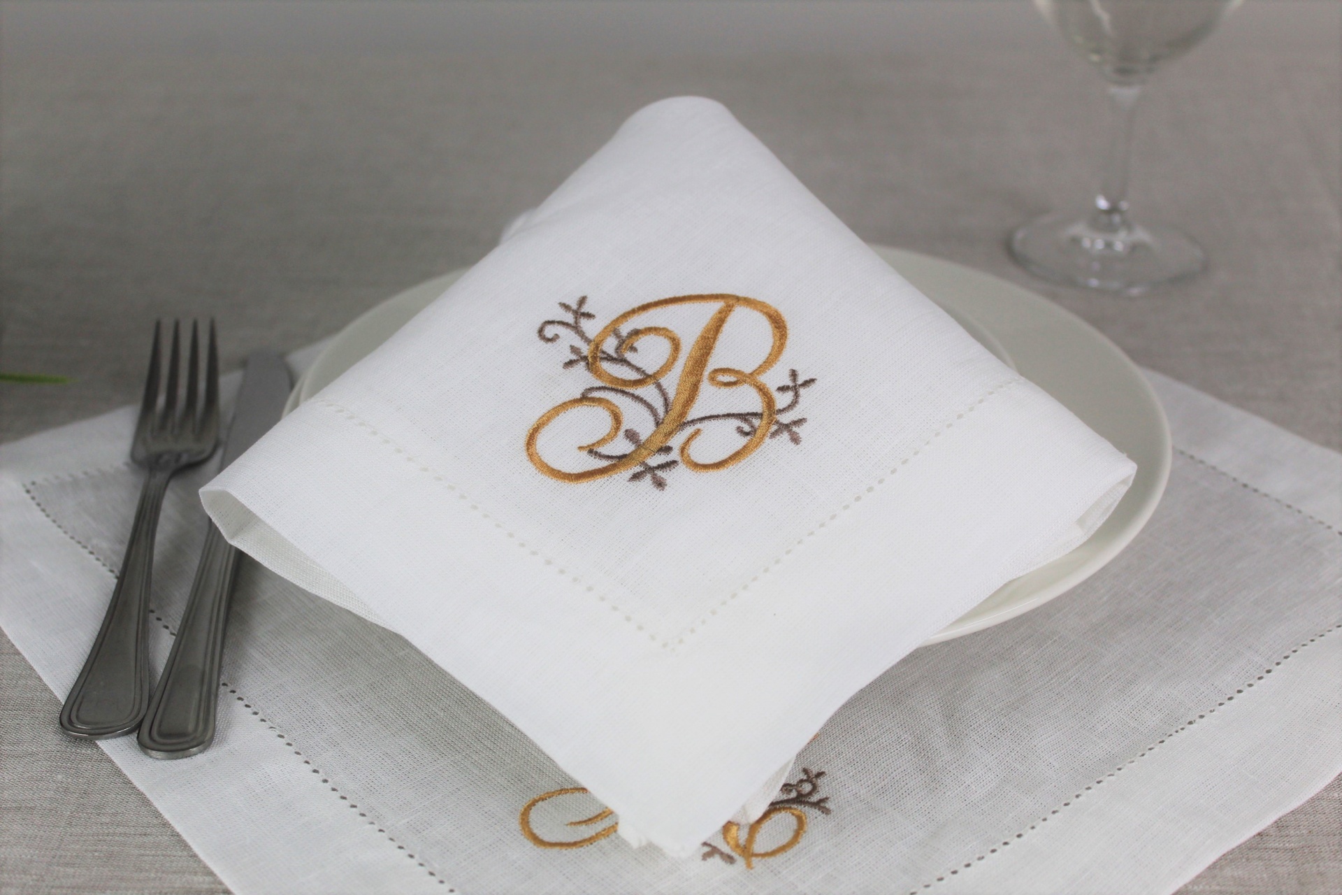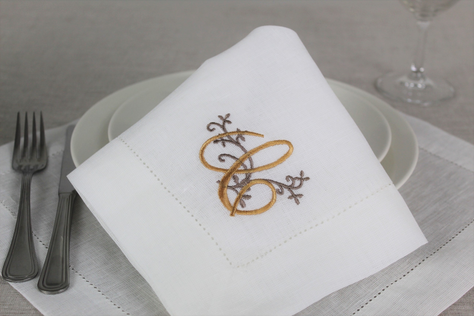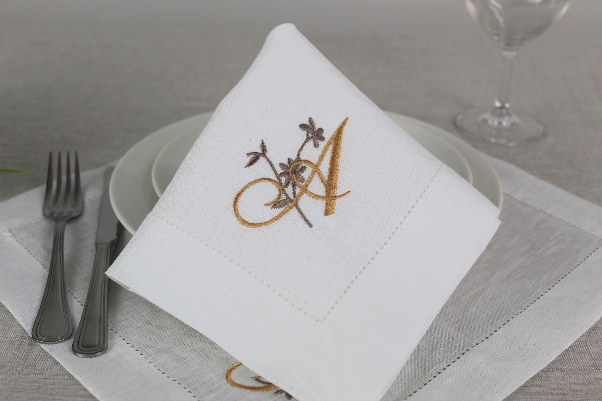 Guardanapo Bordado Letra Linho COL