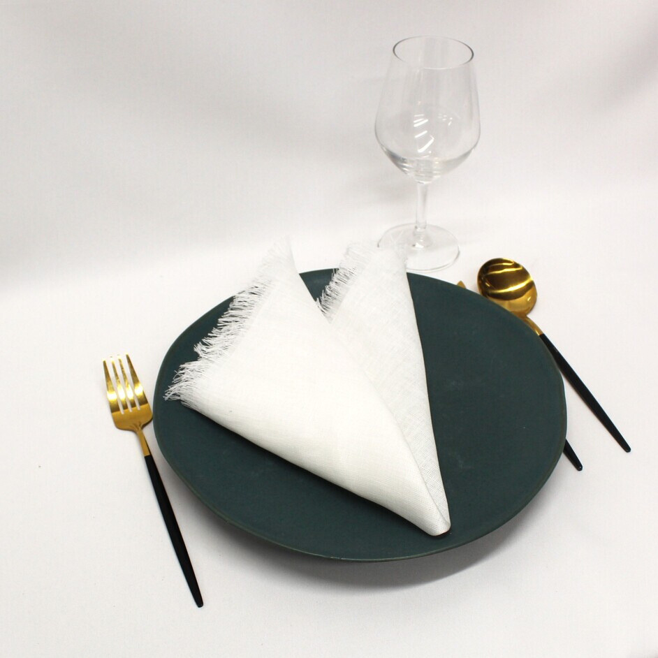 Guardanapo desfiado de linho branco