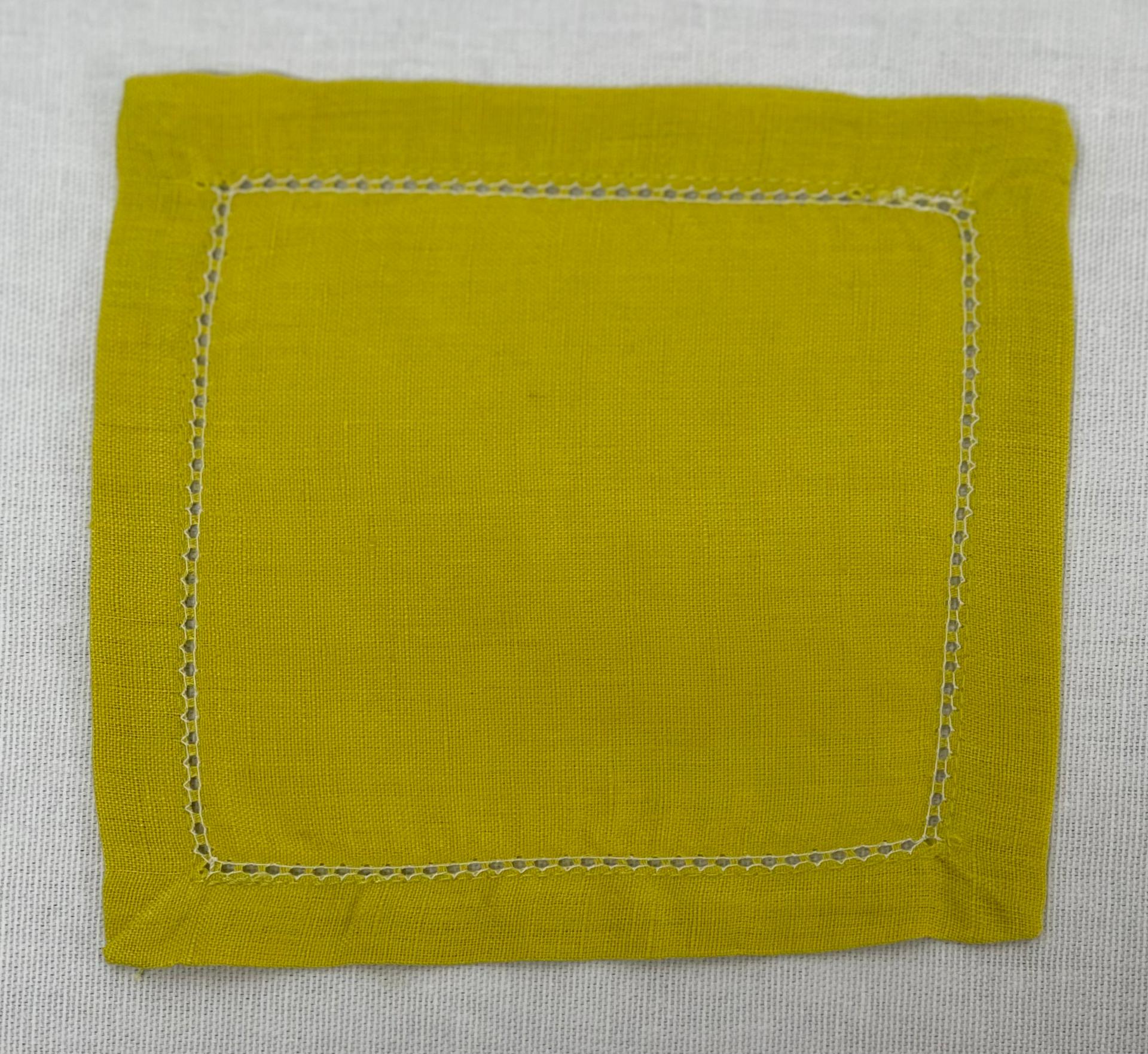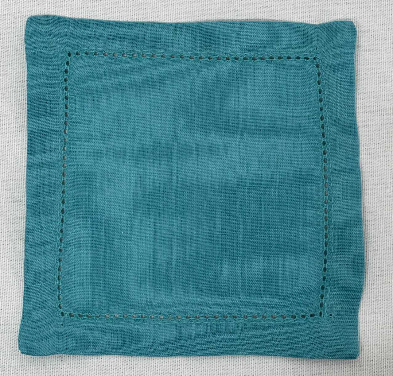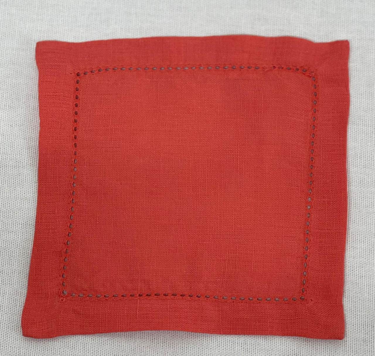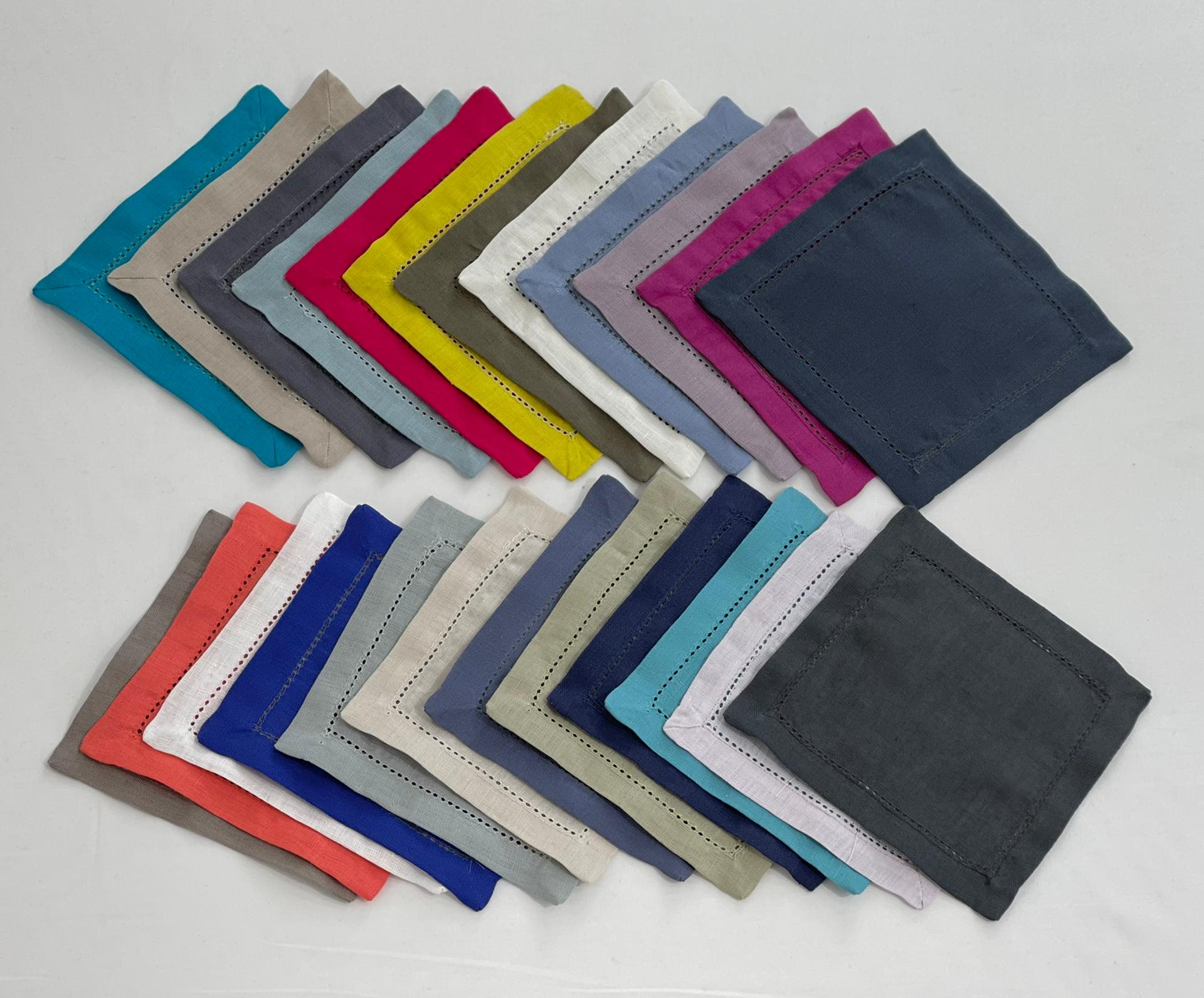 Guardanapo em linho com acabamento de ponto aberto em diversas cores.