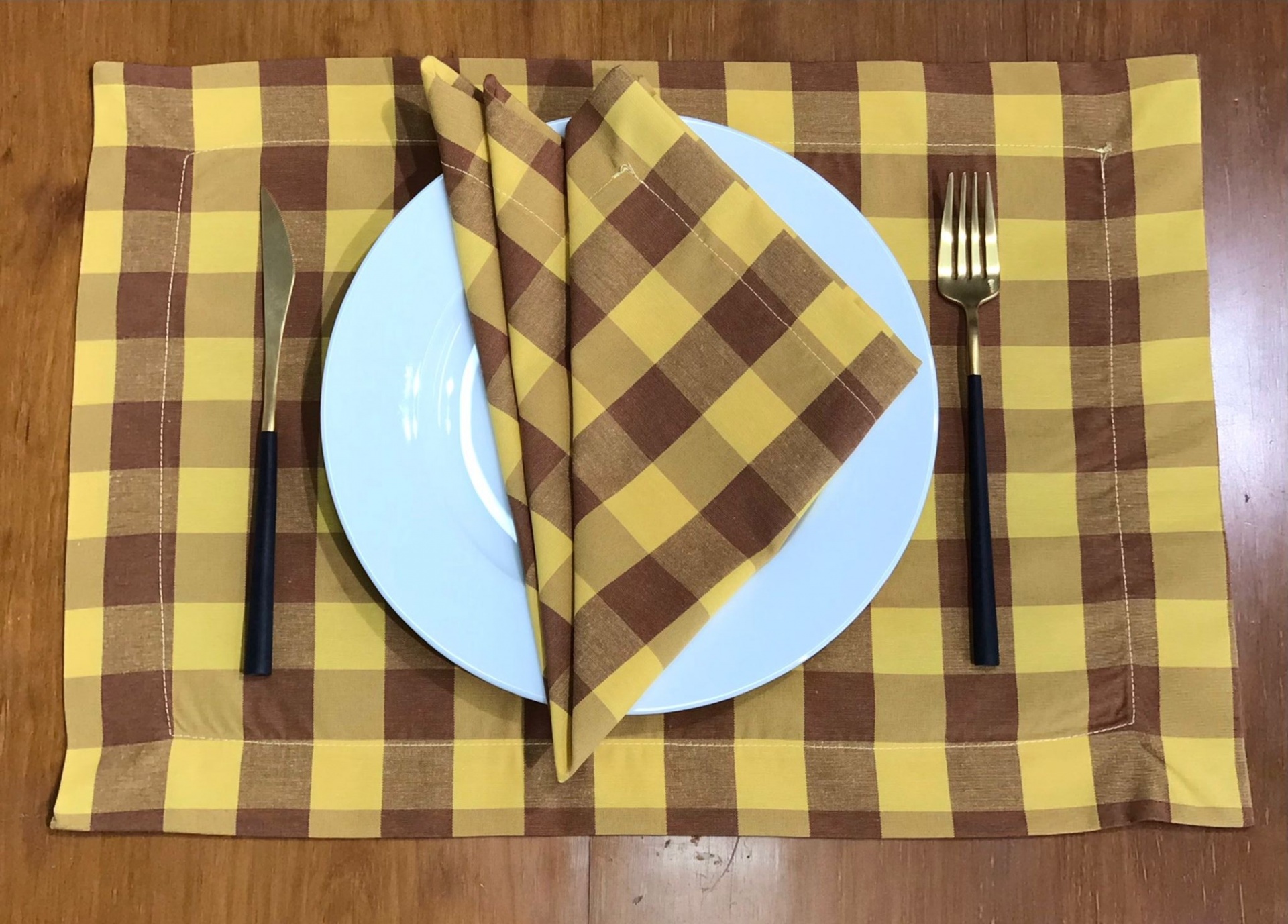 Guardanapo / Individual - Quadrados grandes Amarelo e Castanho