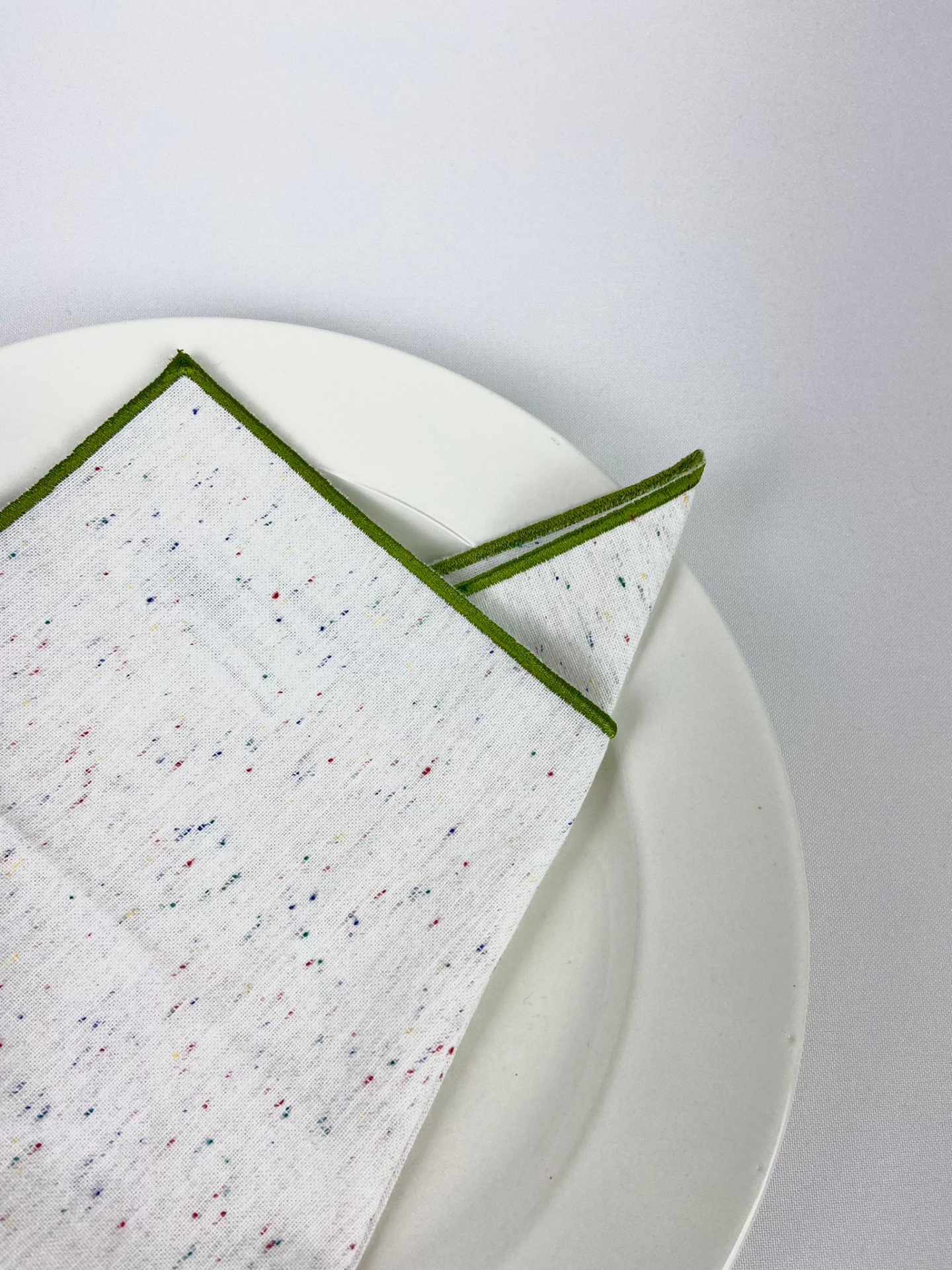 Guardanapo de merenda Linho colorido, com acabamento de rolinho verde.