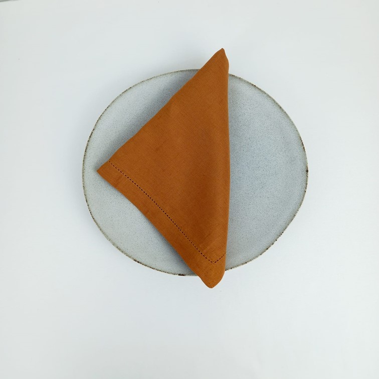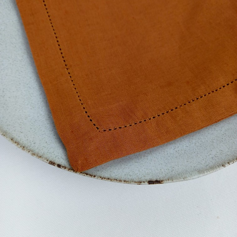Guardanapo em linho Ponto Aberto cor marrom.