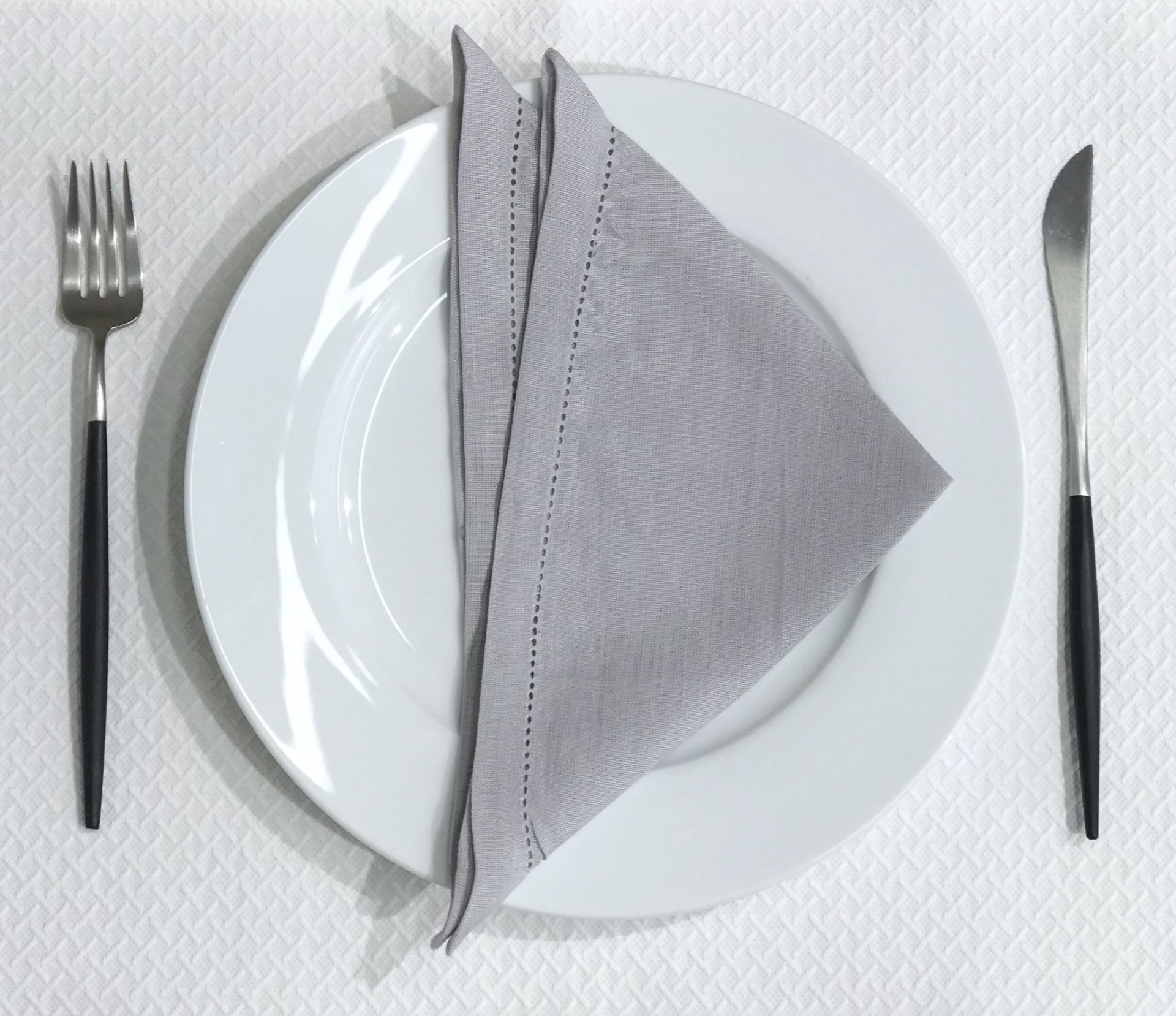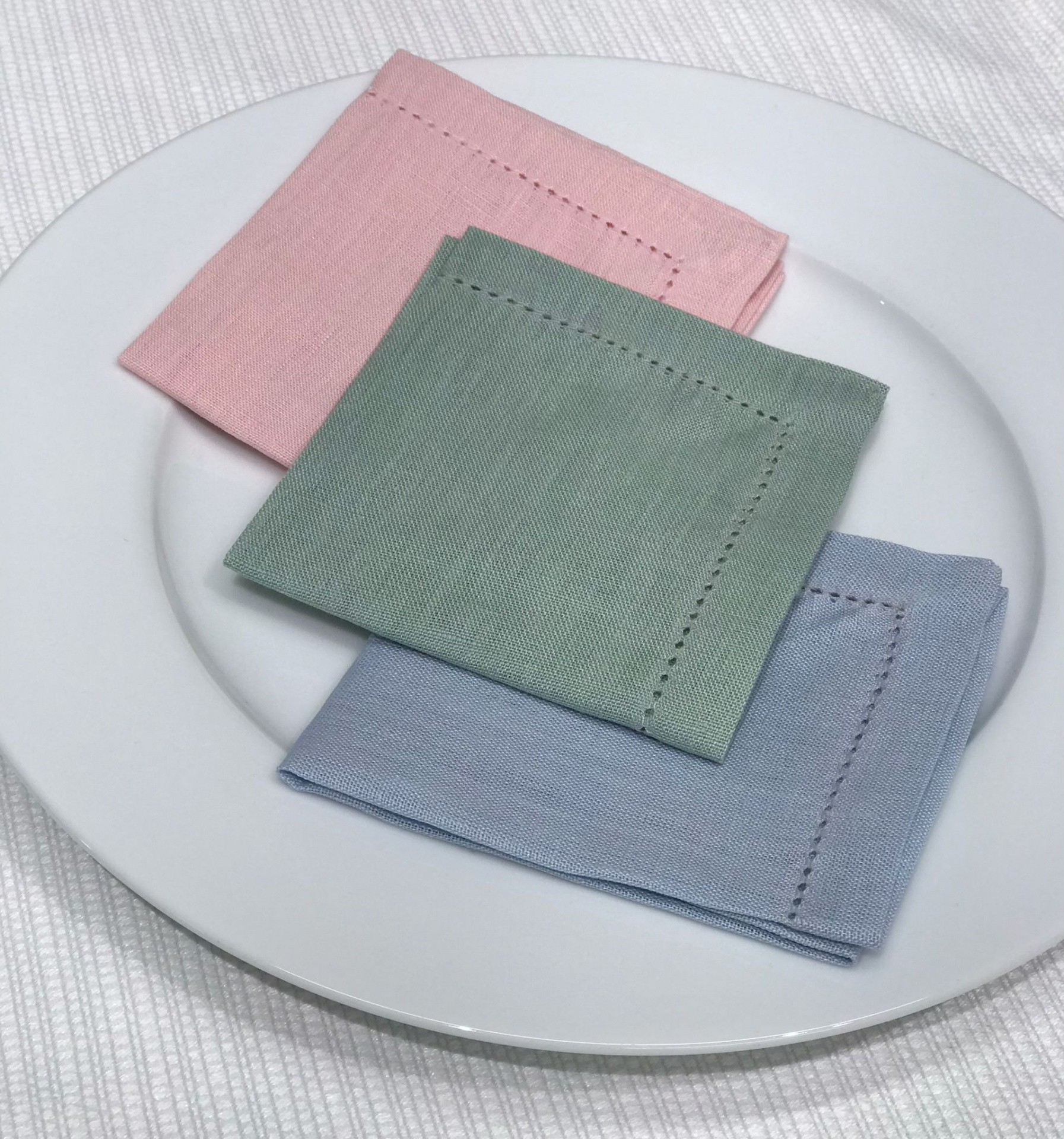 Guardanapo em linho com detalhe de ponto aberto, tamanho de merenda. Disponivel em diversas cores.