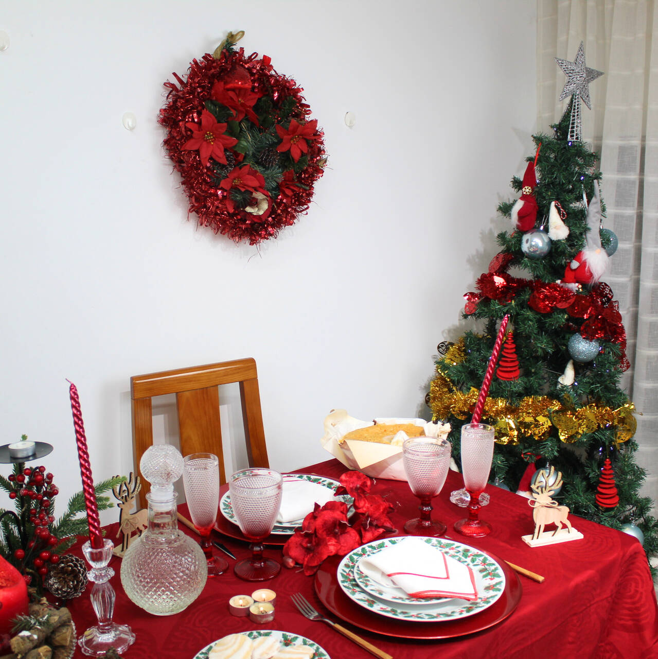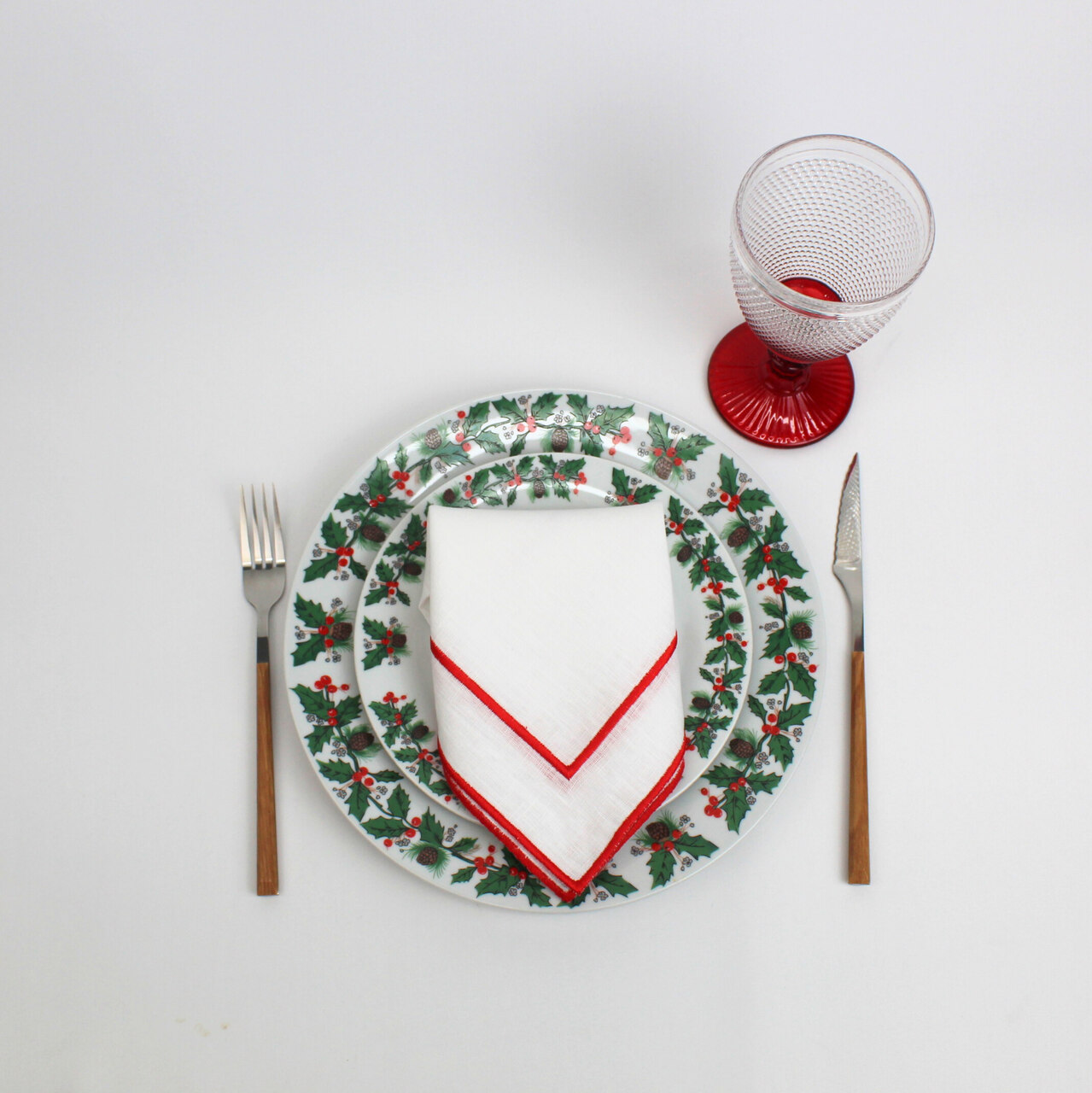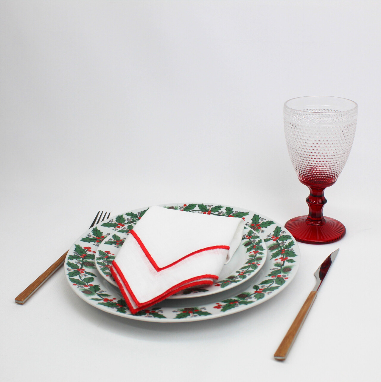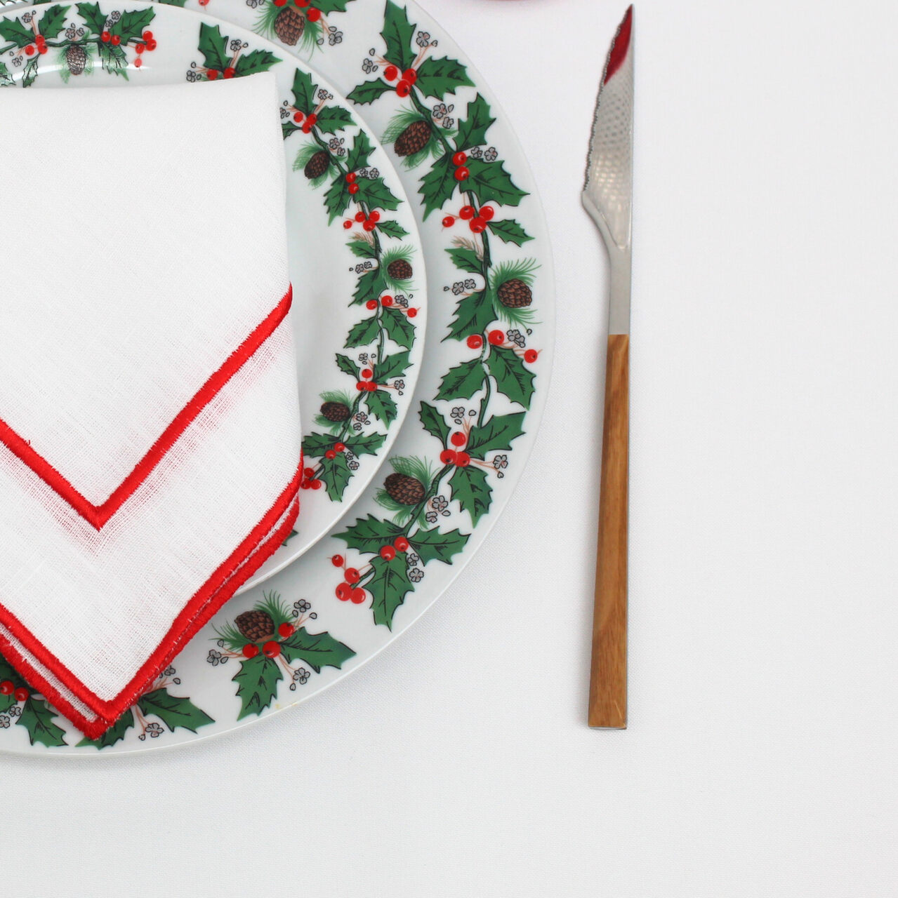 Guardanapo natalício perfeito para a sua mesa de "Noite de Natal".  Guardanapo em linho branco com aplicação de dois rolinhos.