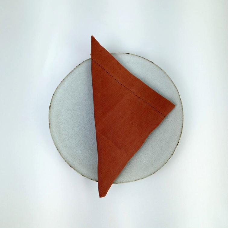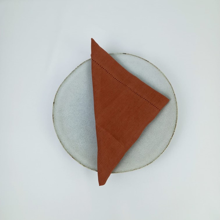 Guardanapo Ponto Aberto em linho liso castanho.
