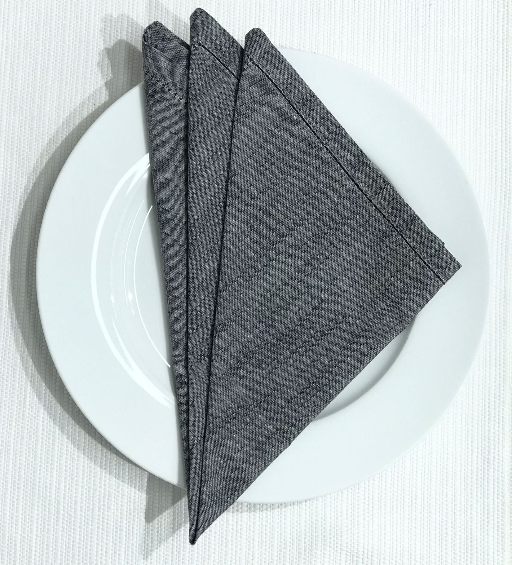 Guardanapo Linho Of Ponto Aberto Cinza Escuro
