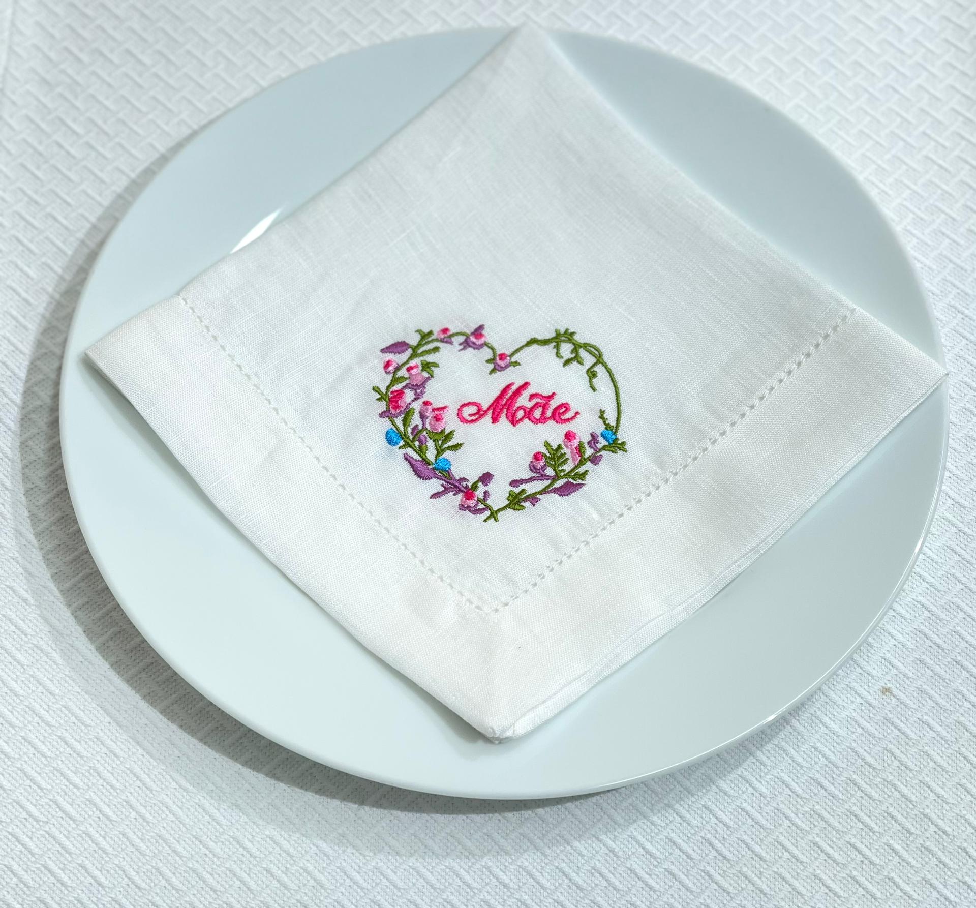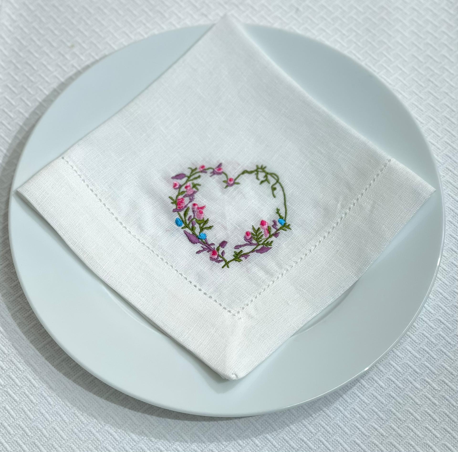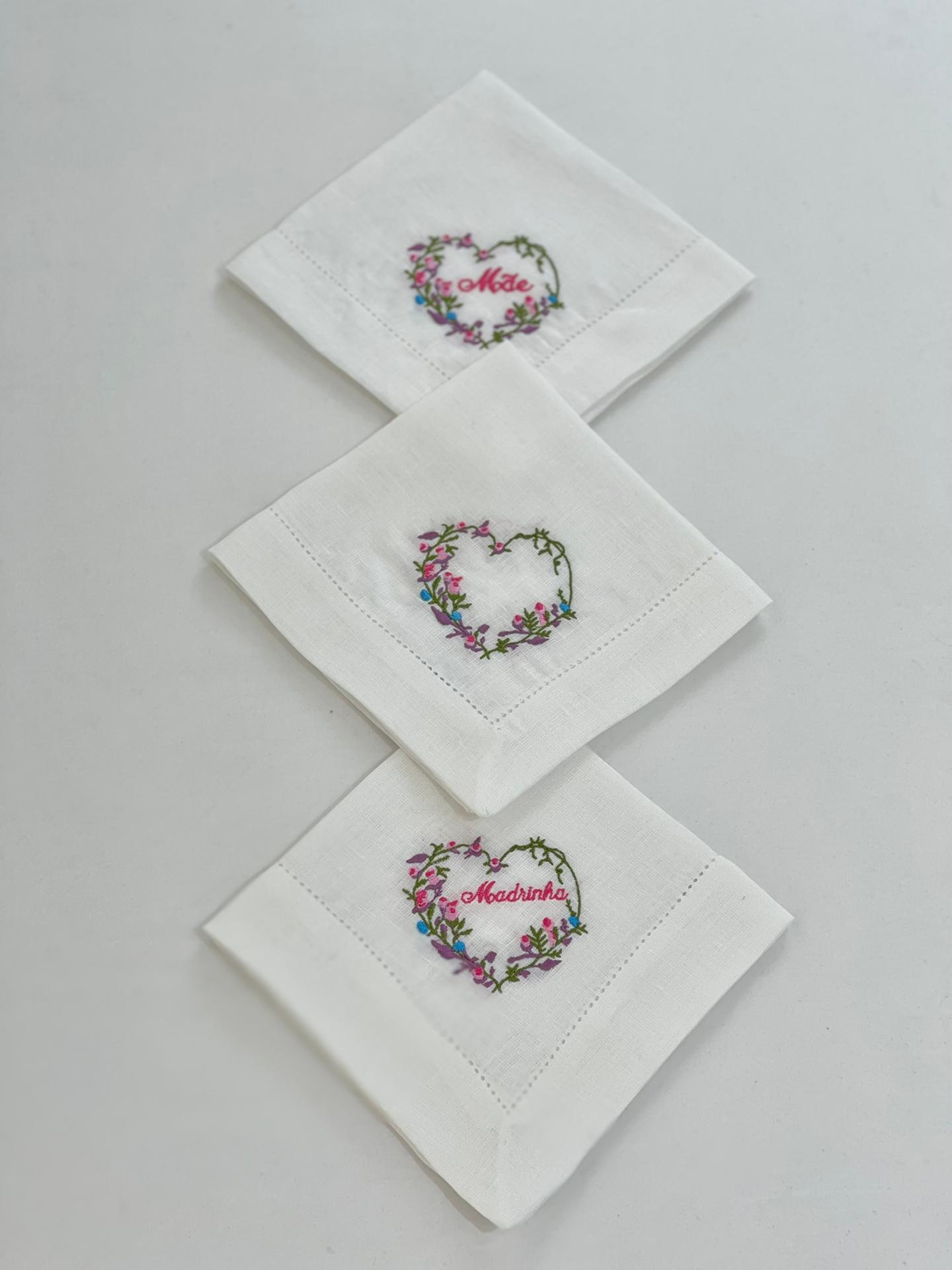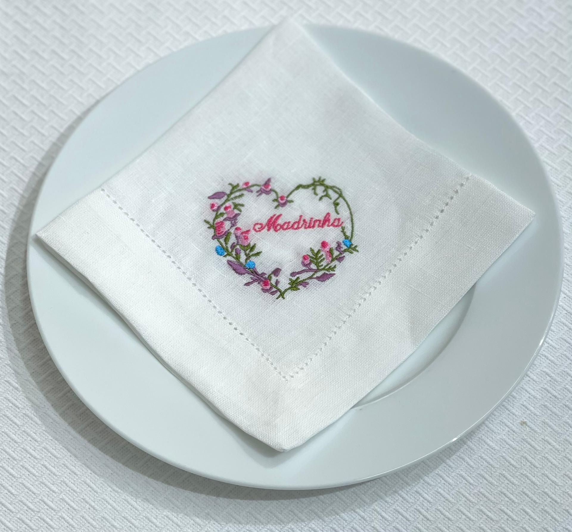 Guardanapos em linho com Ponto Aberto e Bordado.