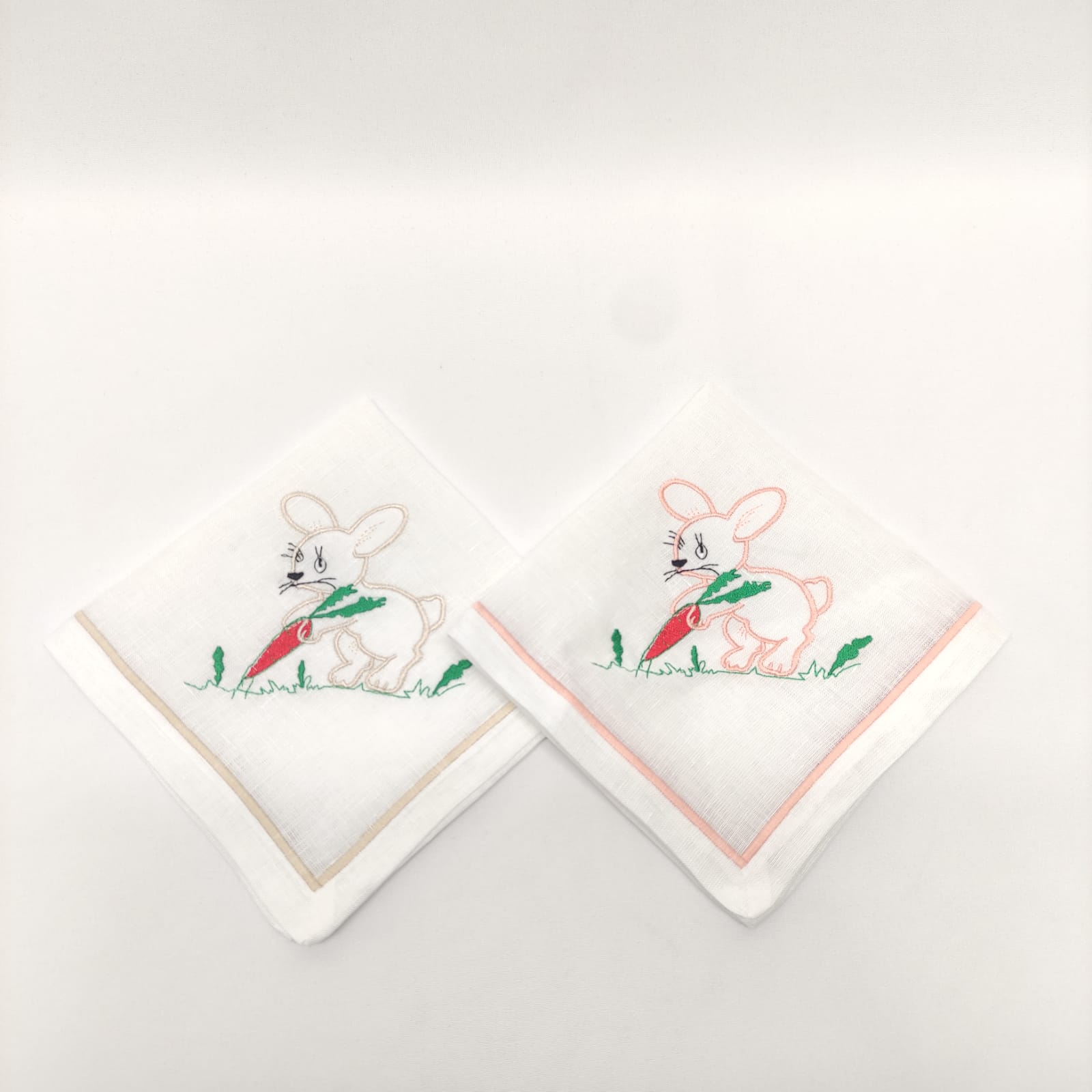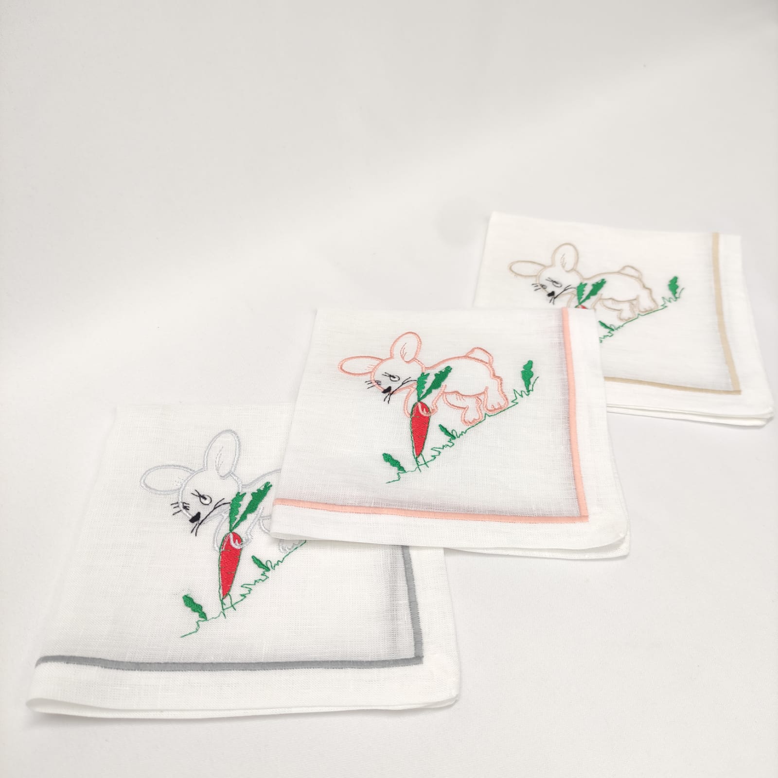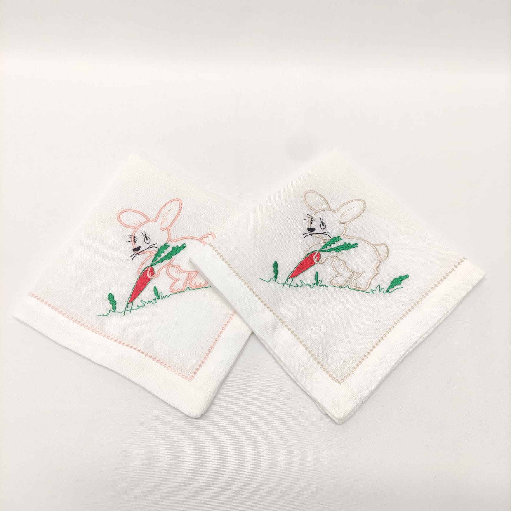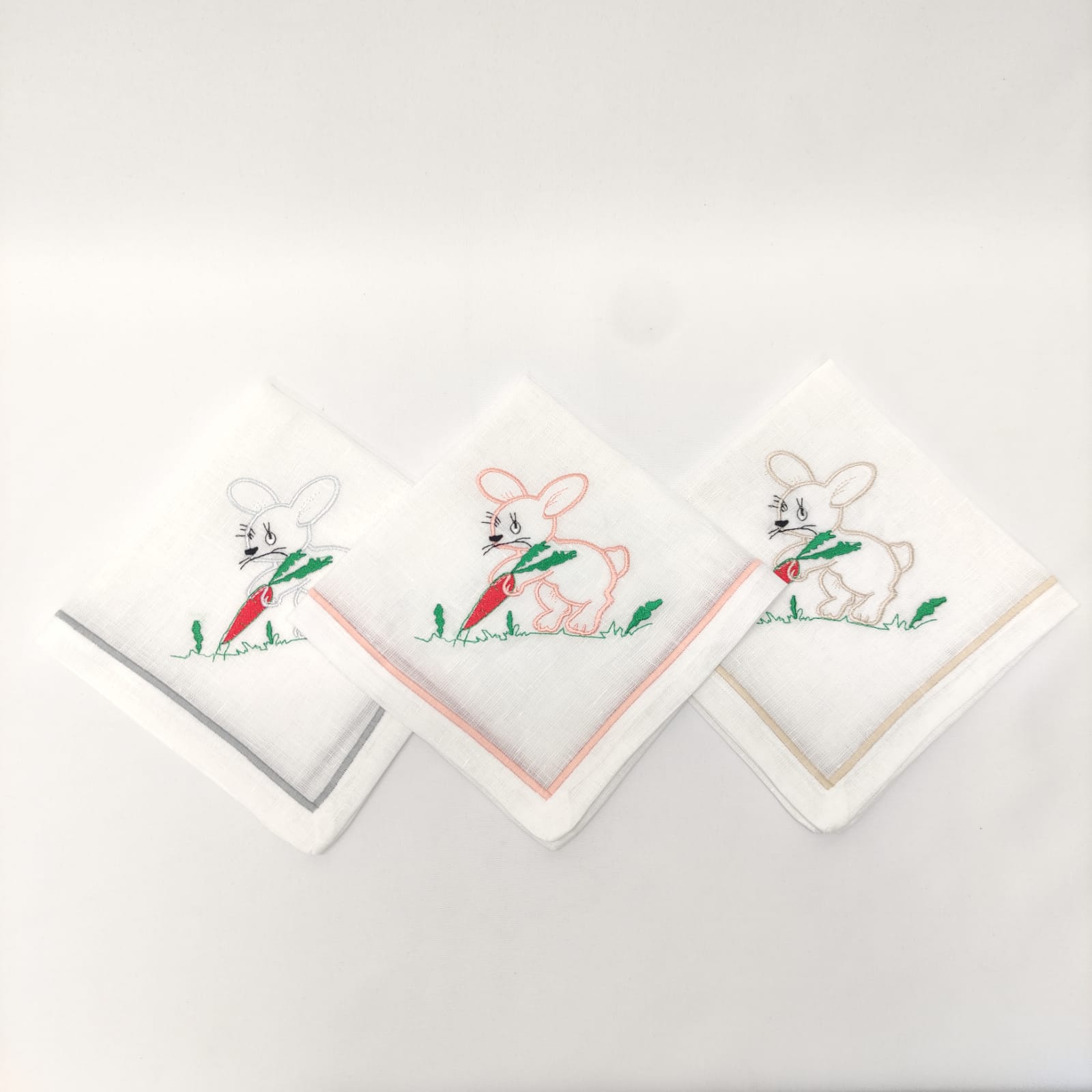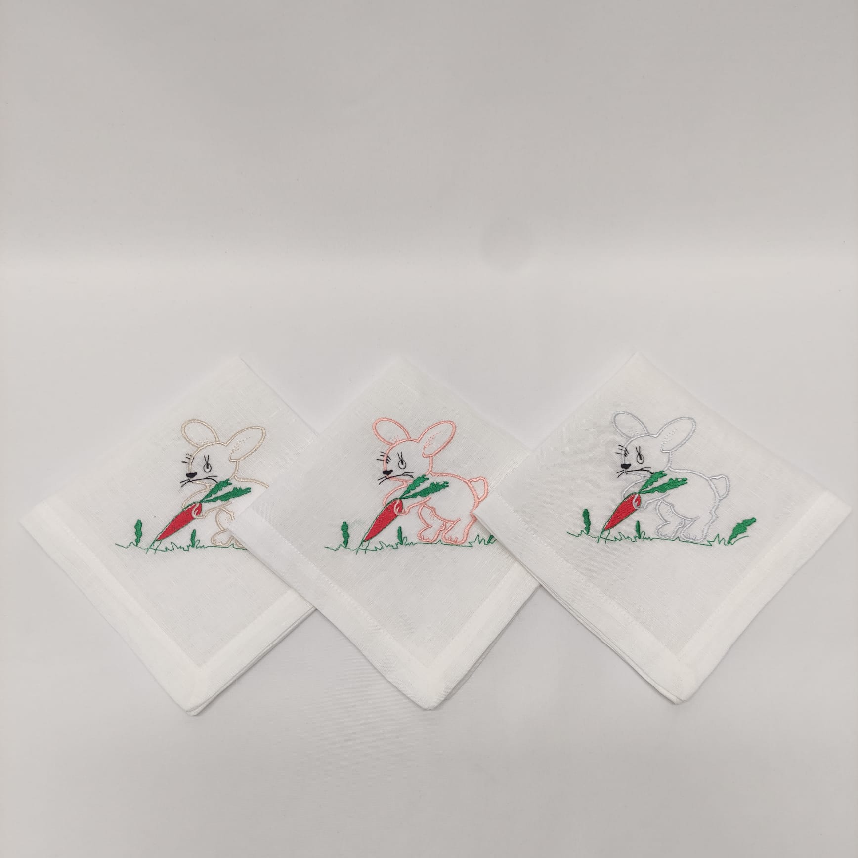 Guardanapo em linho branco com um coelho bordado. Uma excelente opção para a Páscoa.