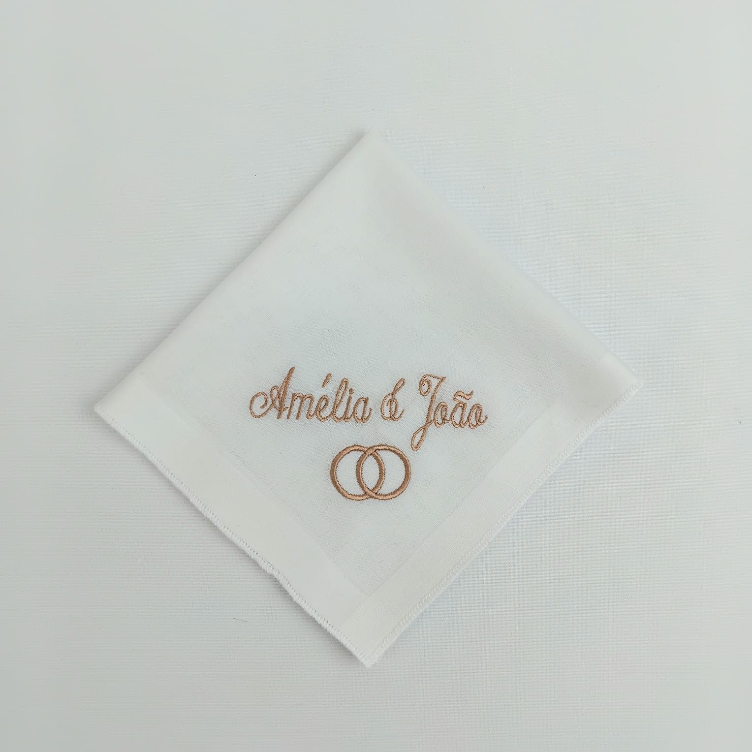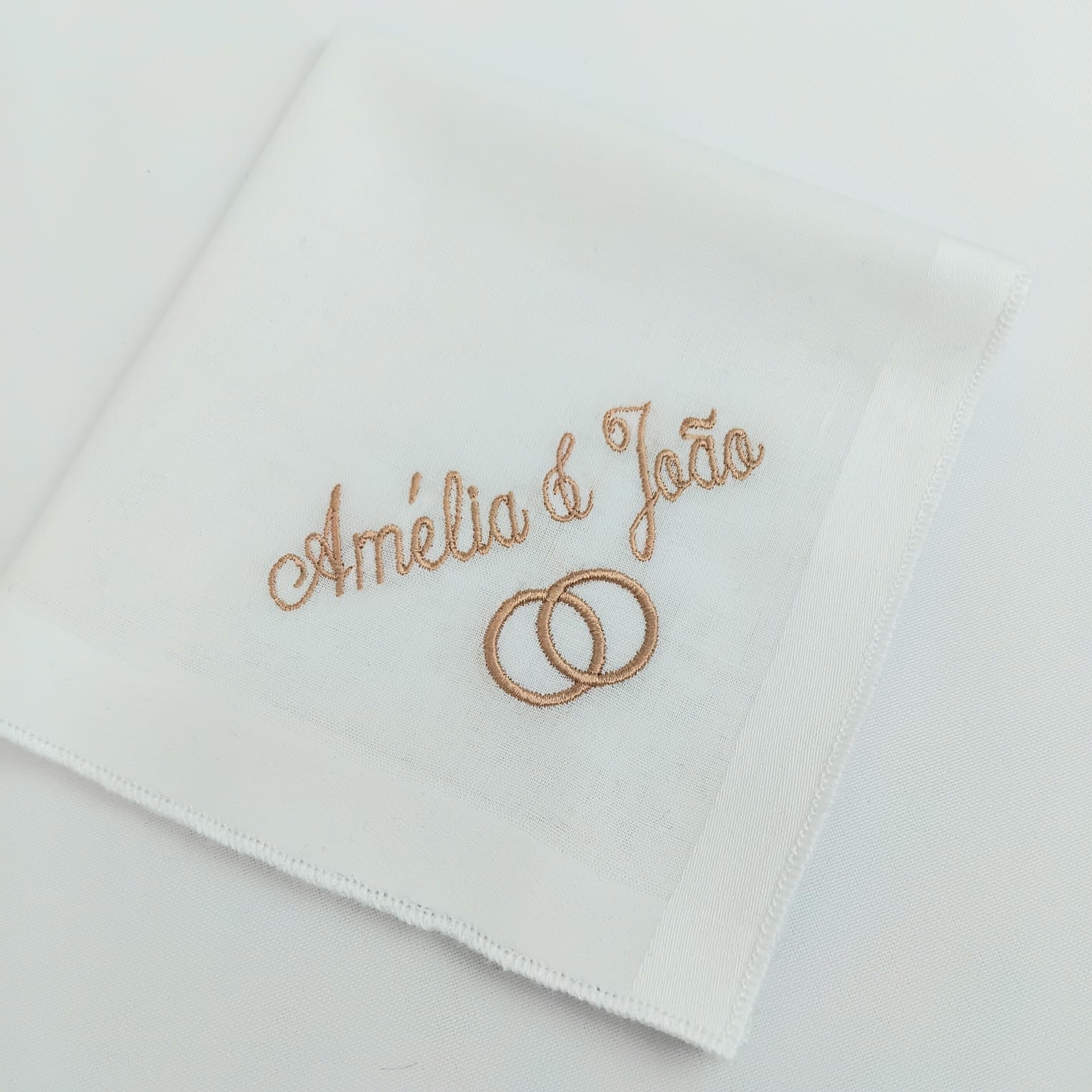 Guardanapo em algodão branco com acabamento em bainha inglesa, disponivel para bordar os nomes que quiser.