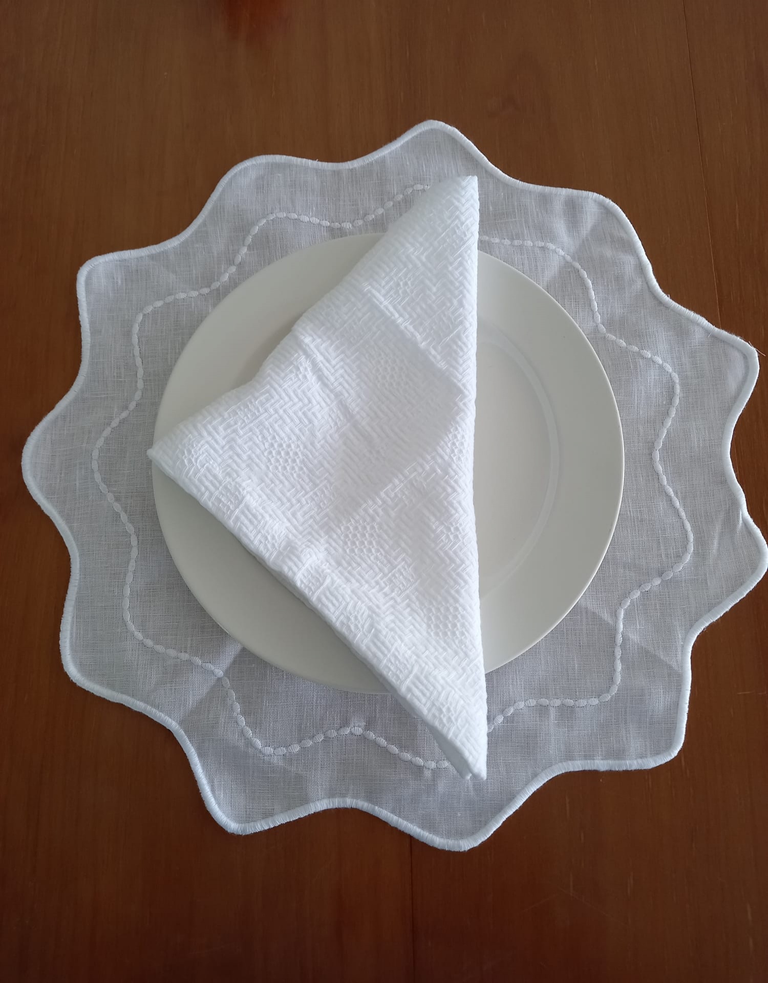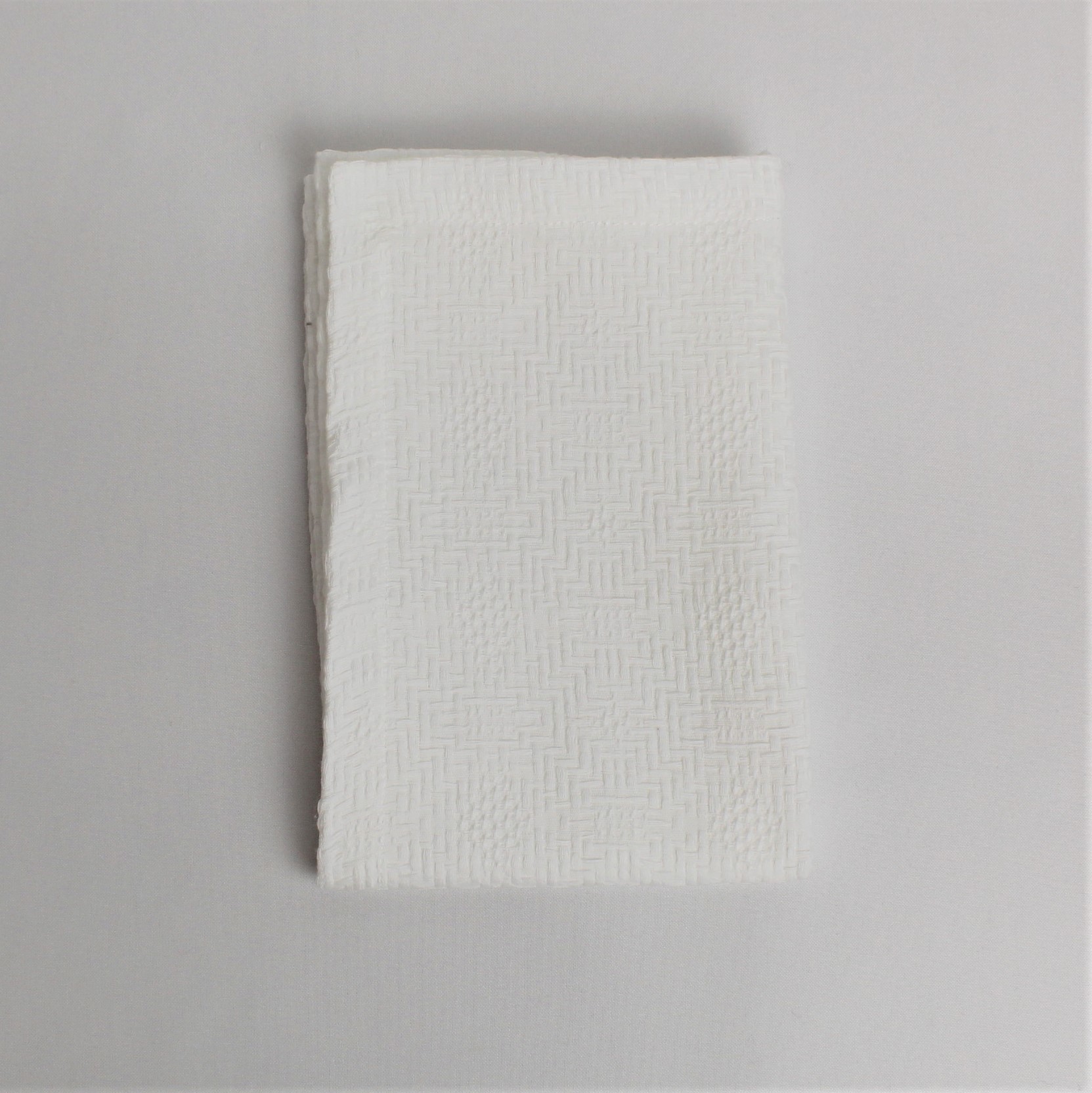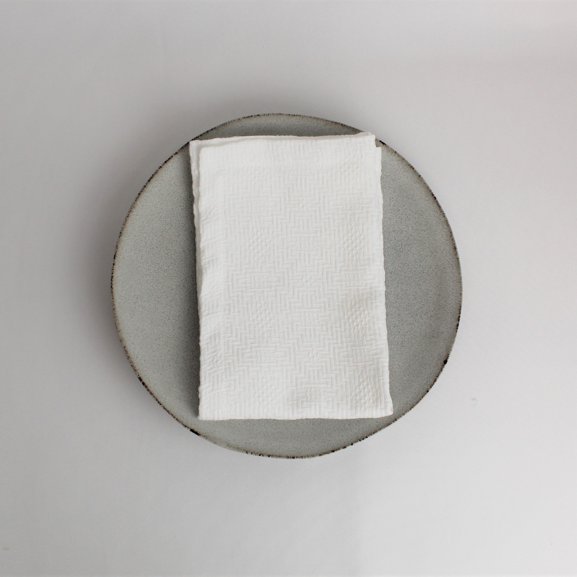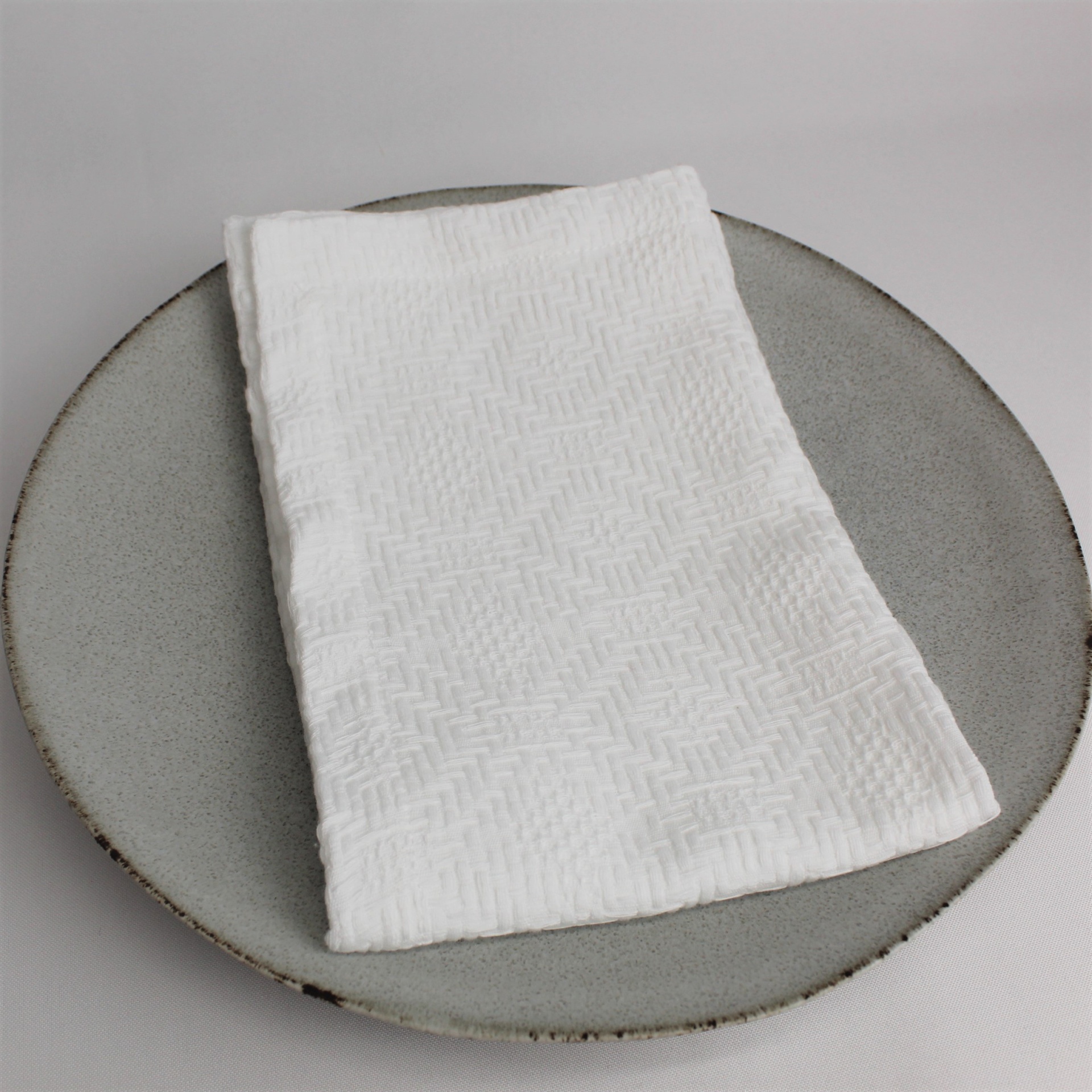 Guardanapo algodão com textura em branco. Bainha de 2 cm. Tecido macio.
