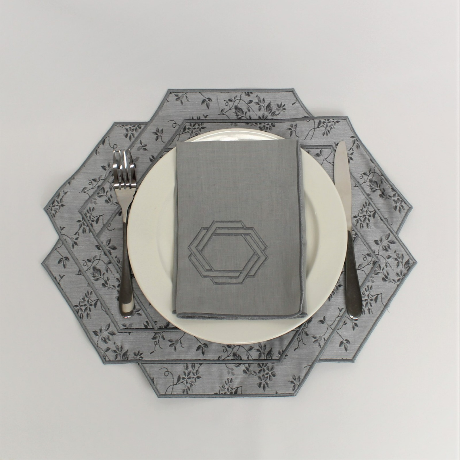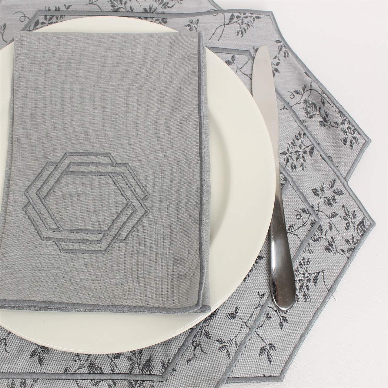 Individual duplo em algodão com estampado florido. Detalhe da bainha em rolinho a condizer.