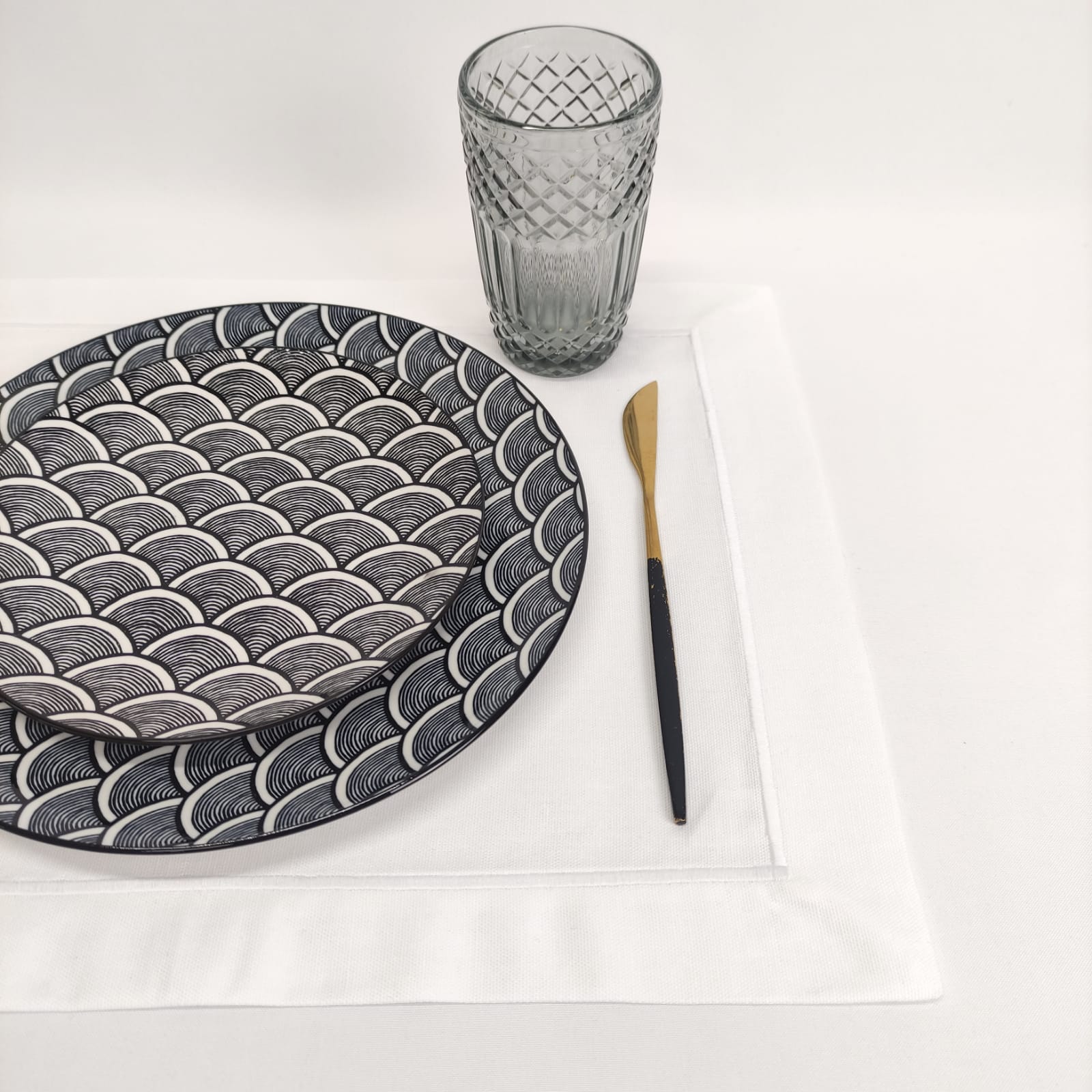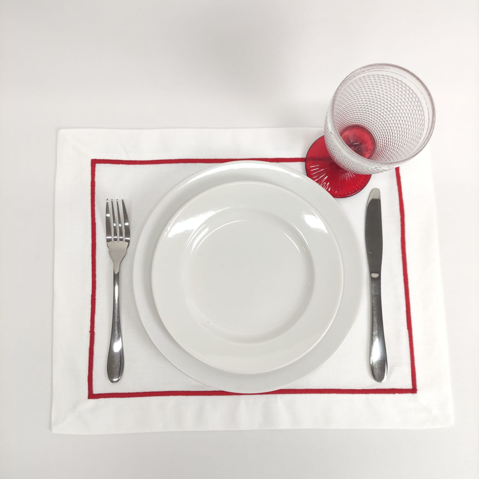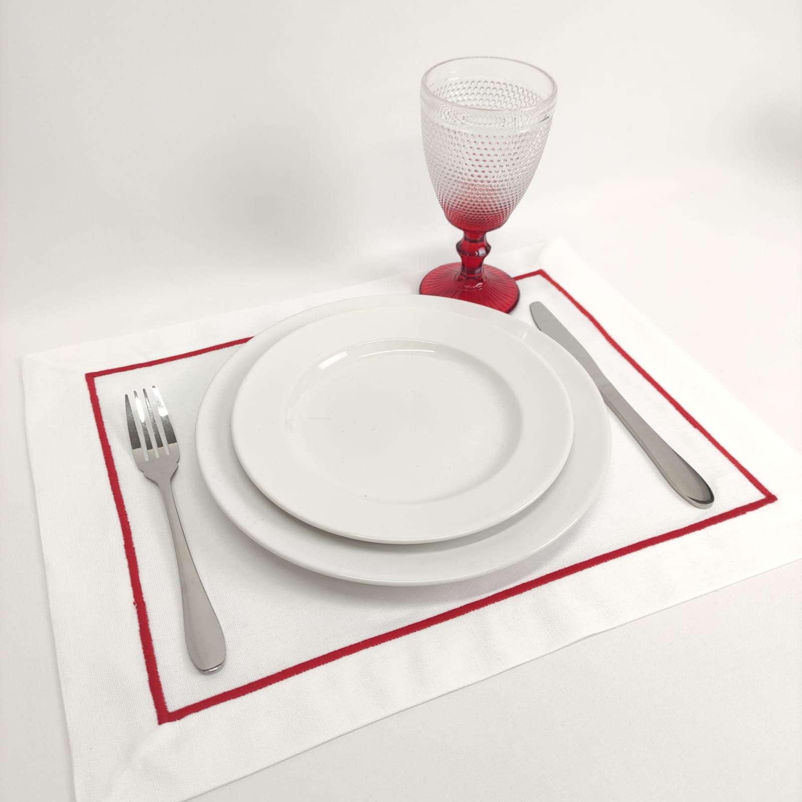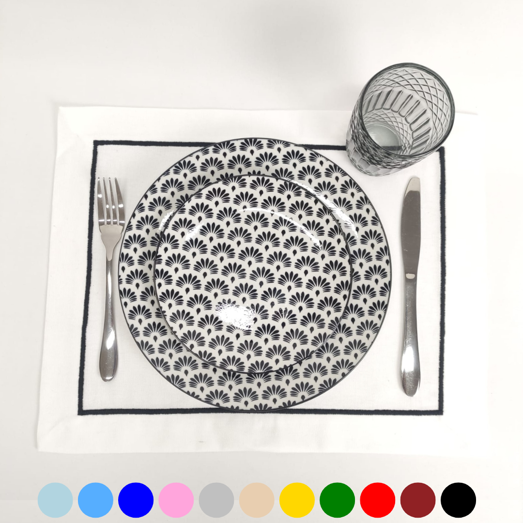 Individual de mesa Simple, em algodão, com acabamento de rolinho interno disponível em várias cores.