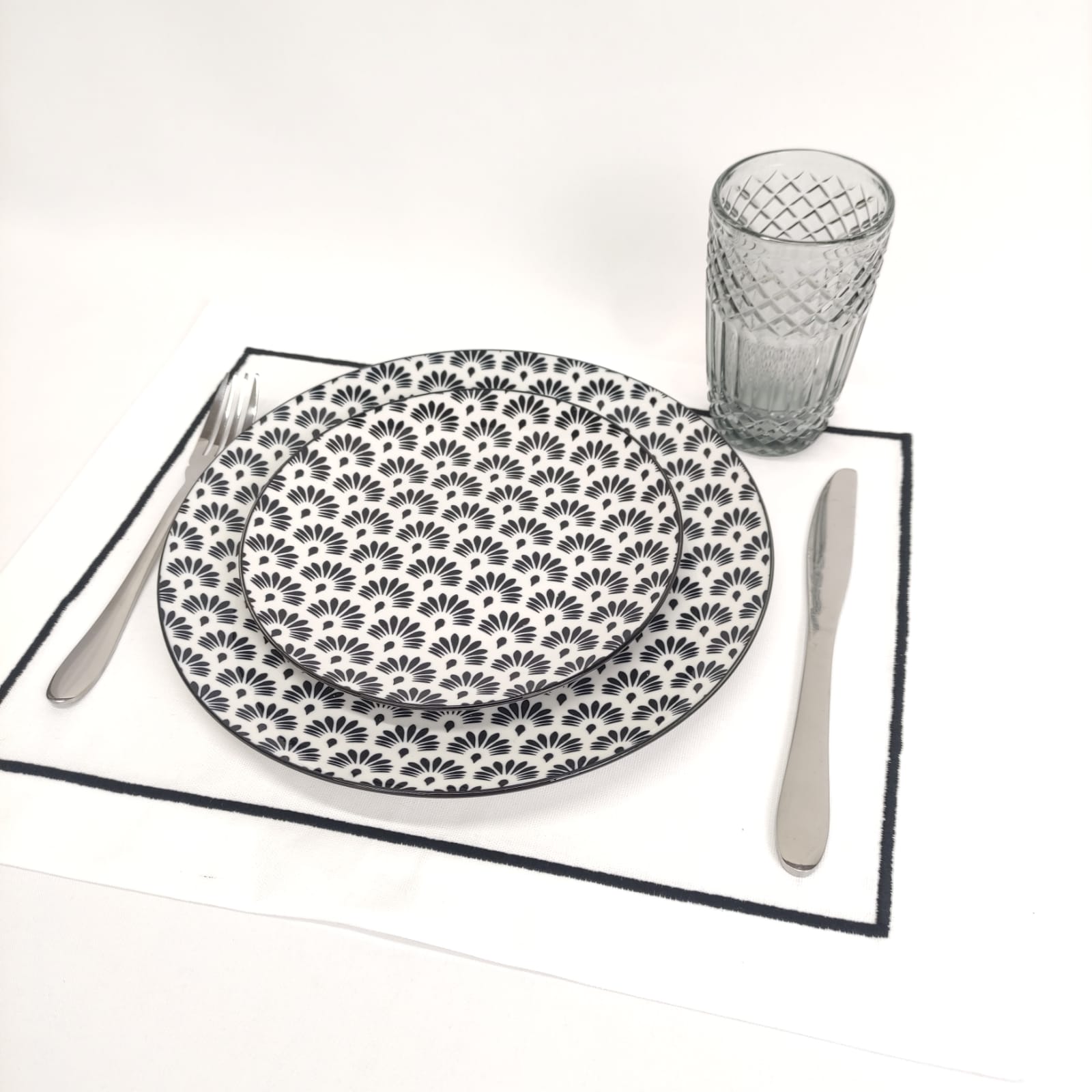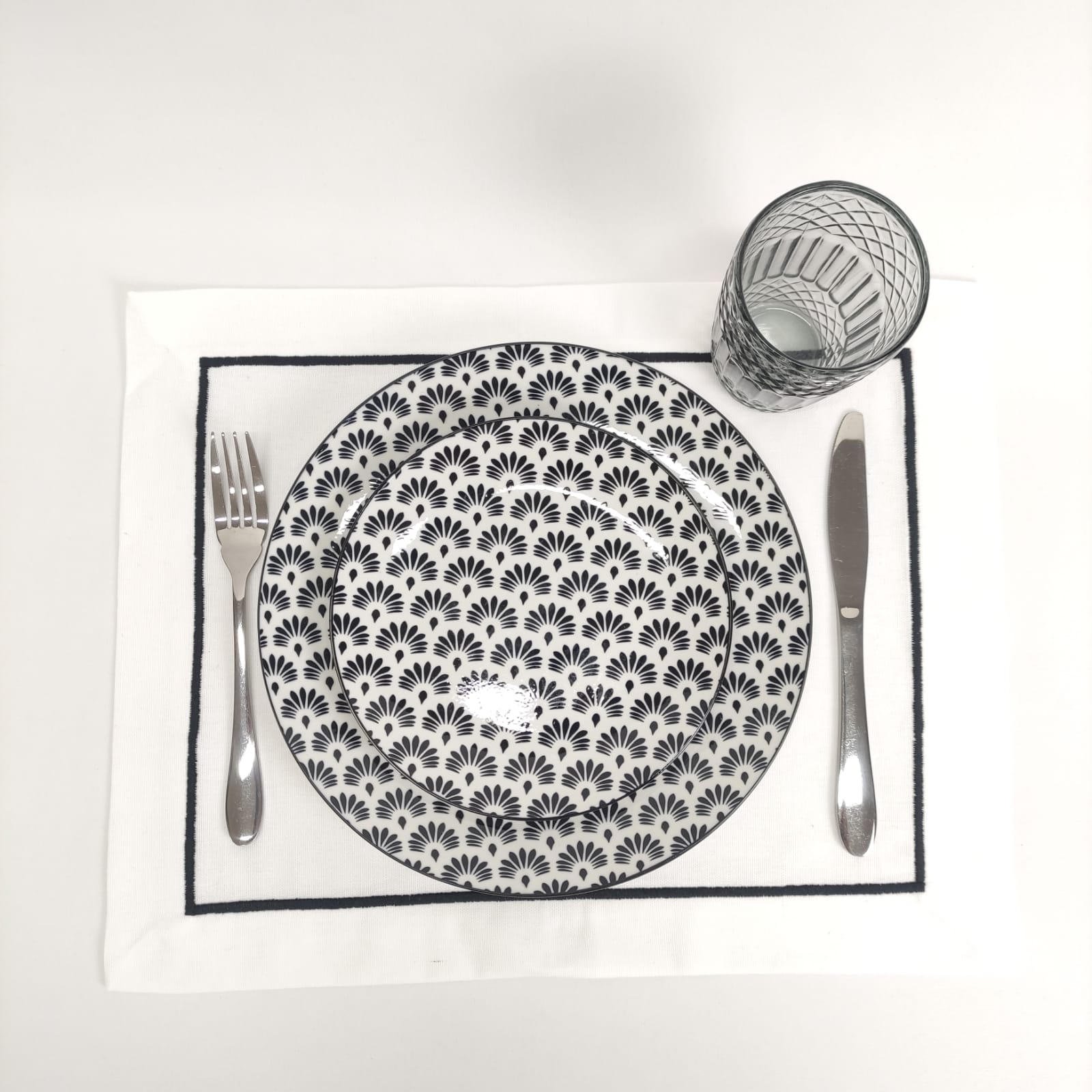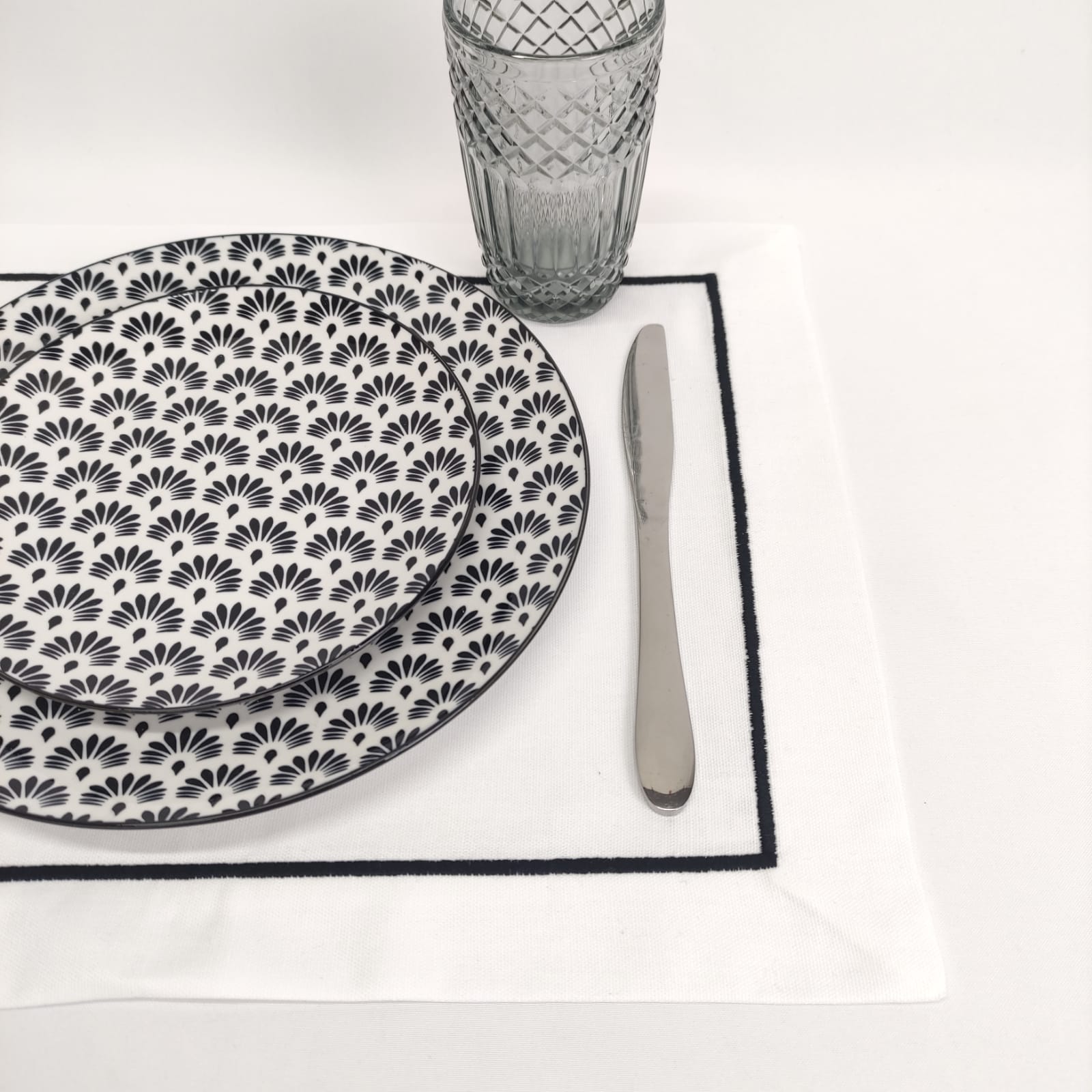 Individual de mesa Simple, em algodão, com acabamento de rolinho interno disponível em várias cores.