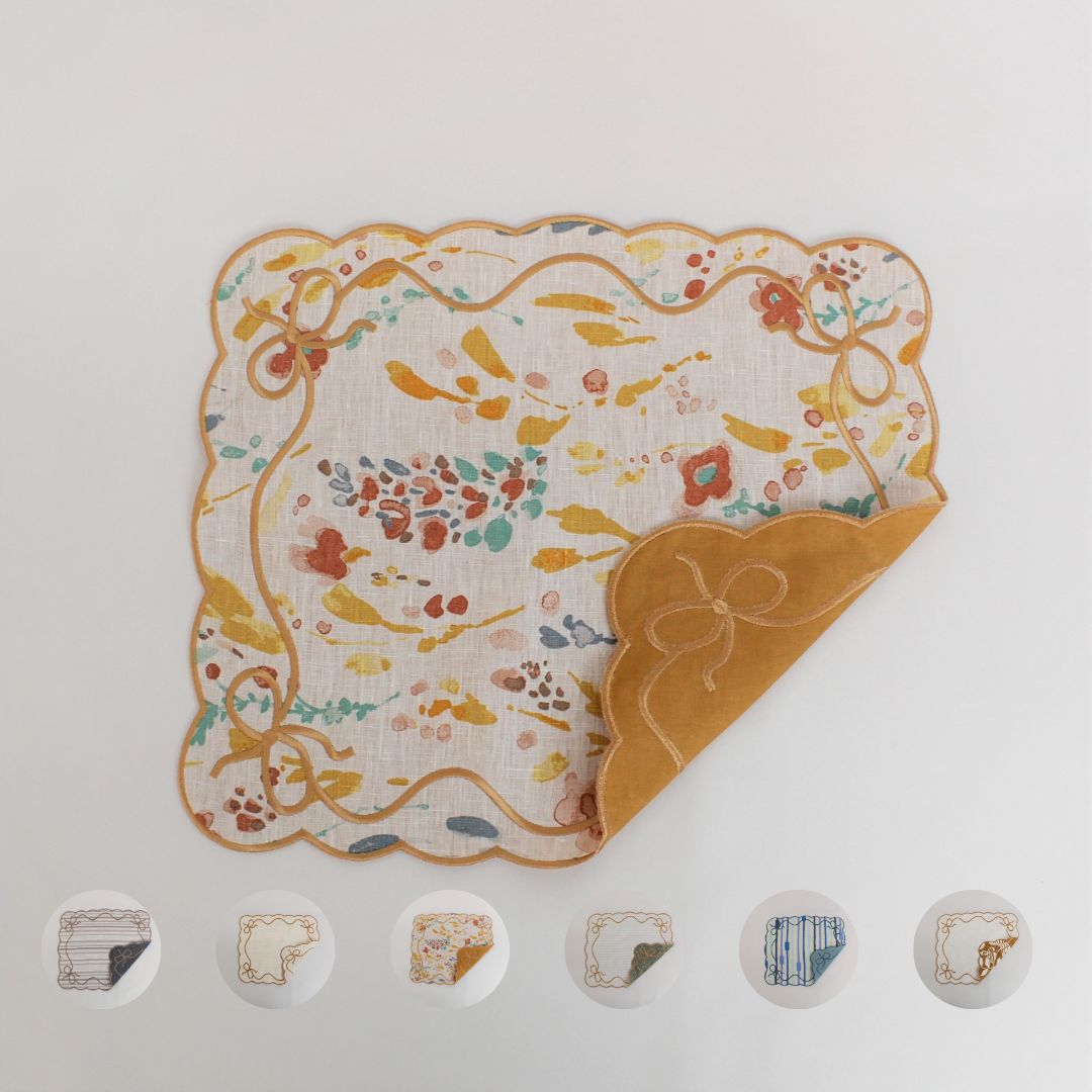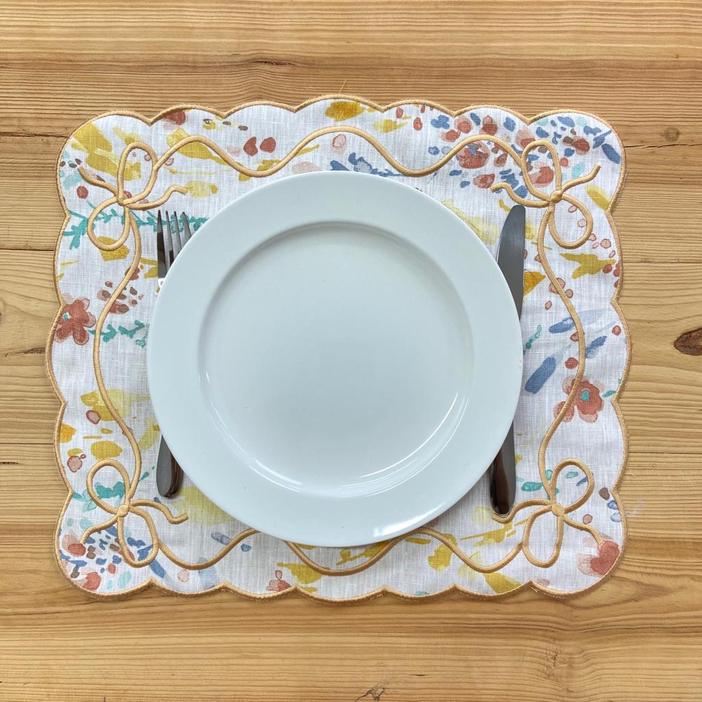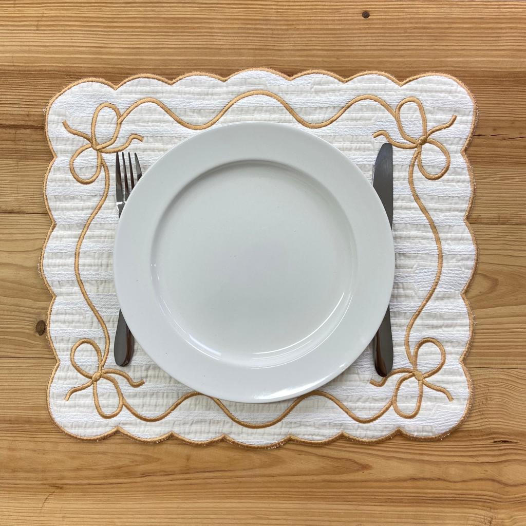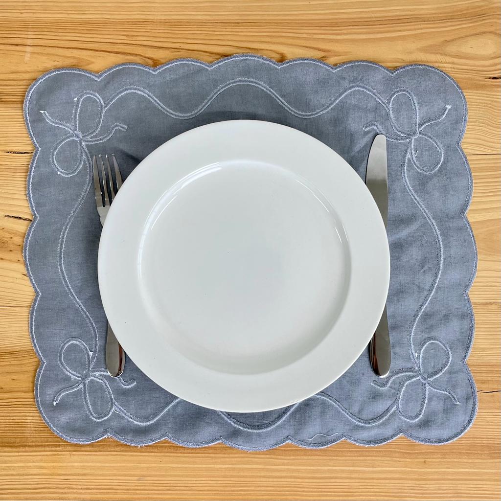Individual reversível em linho e tecido de colcha. Modelo caracterizado pela sua versetilidade, elegânia e requinte.