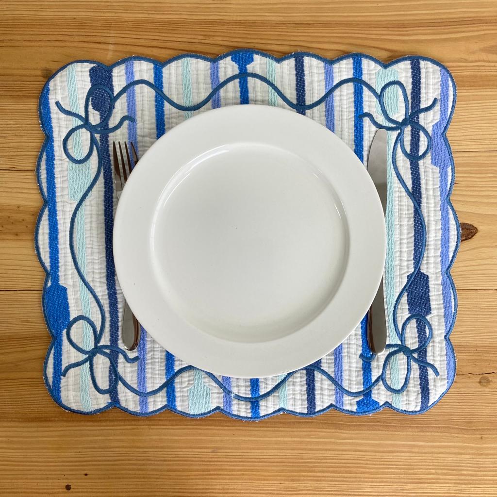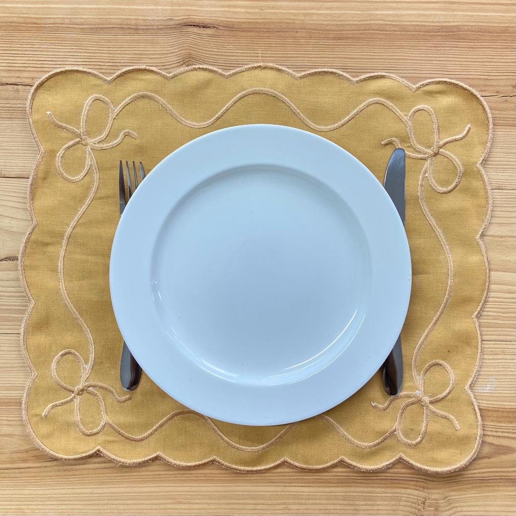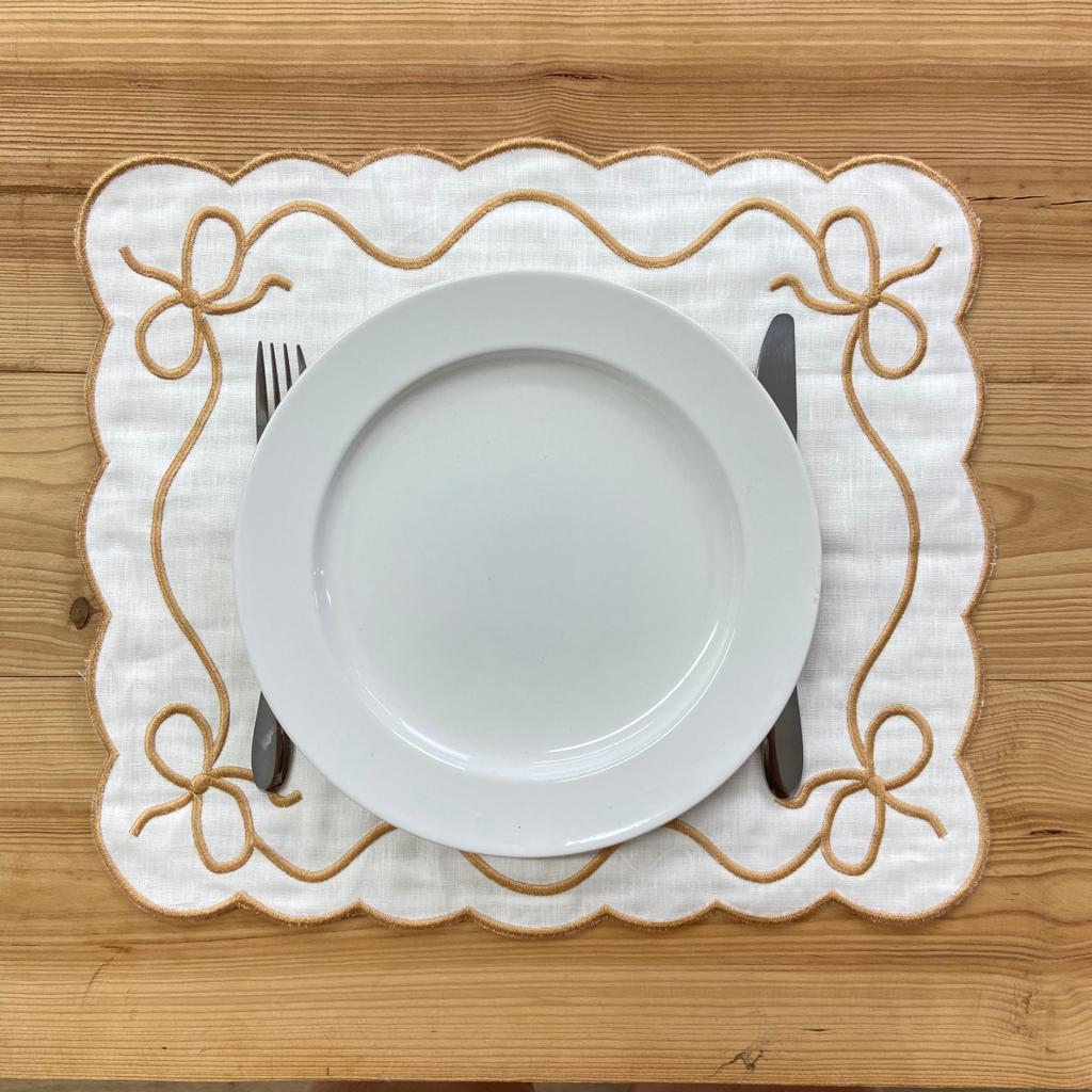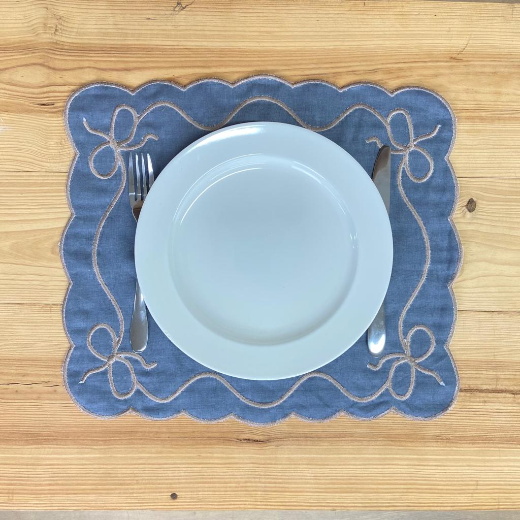 Individual reversível em linho e tecido de colcha. Modelo caracterizado pela sua versetilidade, elegânia e requinte.