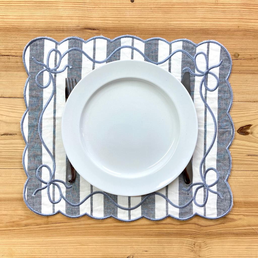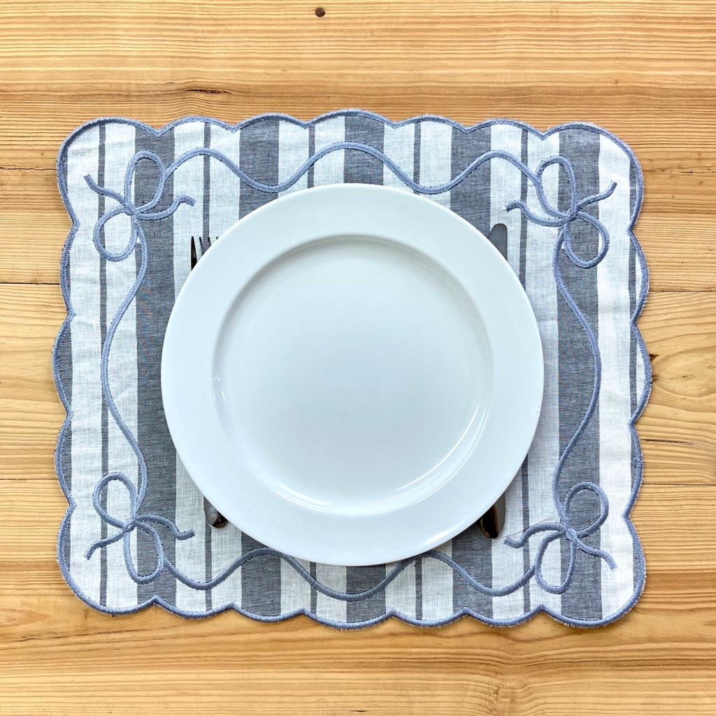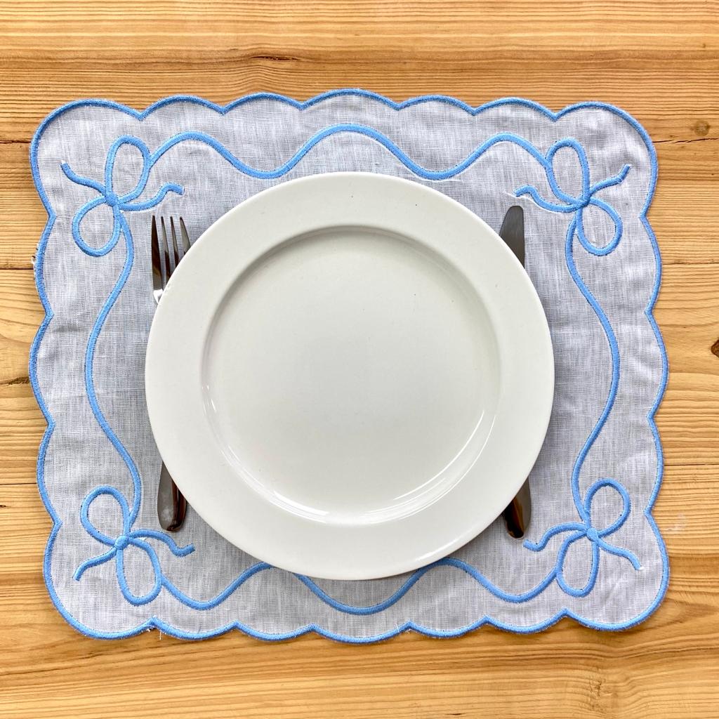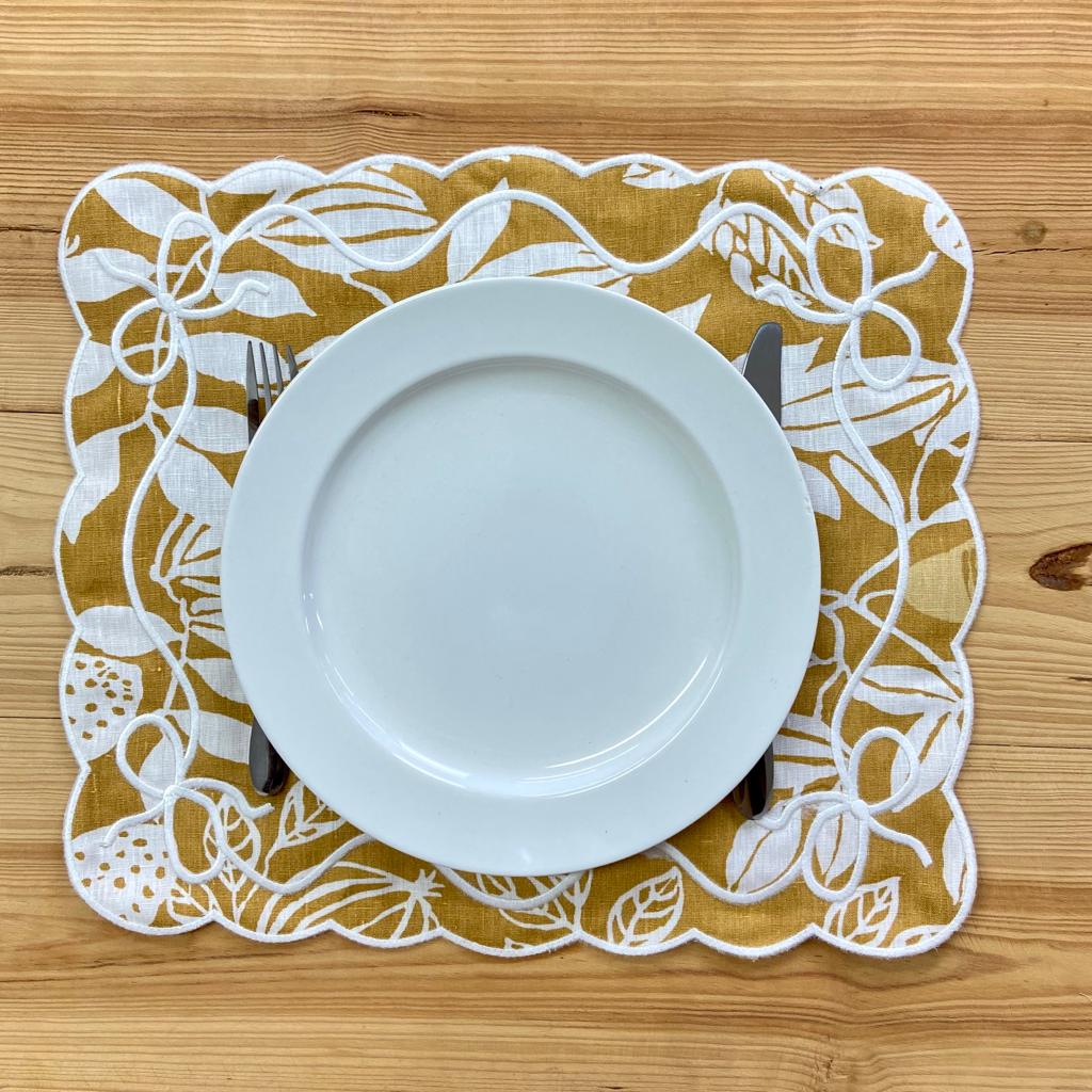 Individual reversível em linho e veludo. Modelo caracterizado pela sua versetilidade, elegânia e requinte.