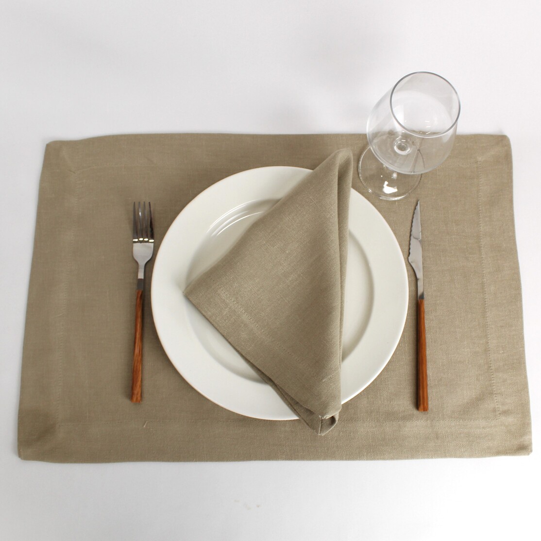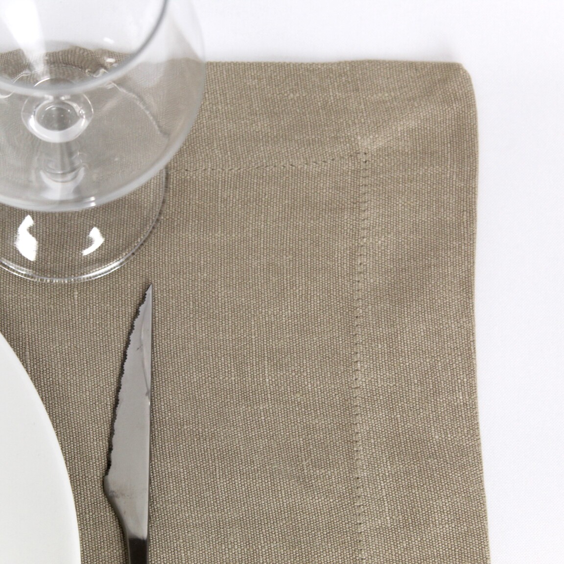 Individual de mesa em linho estopa com acabamento em bainha inglesa.