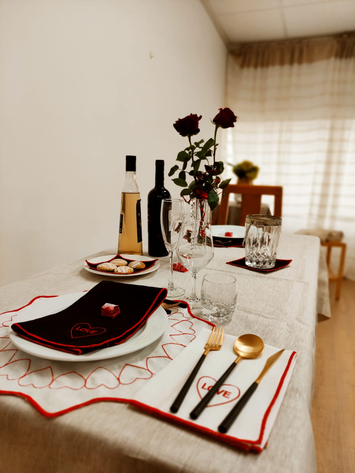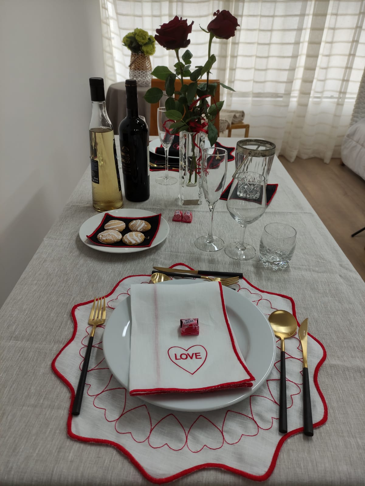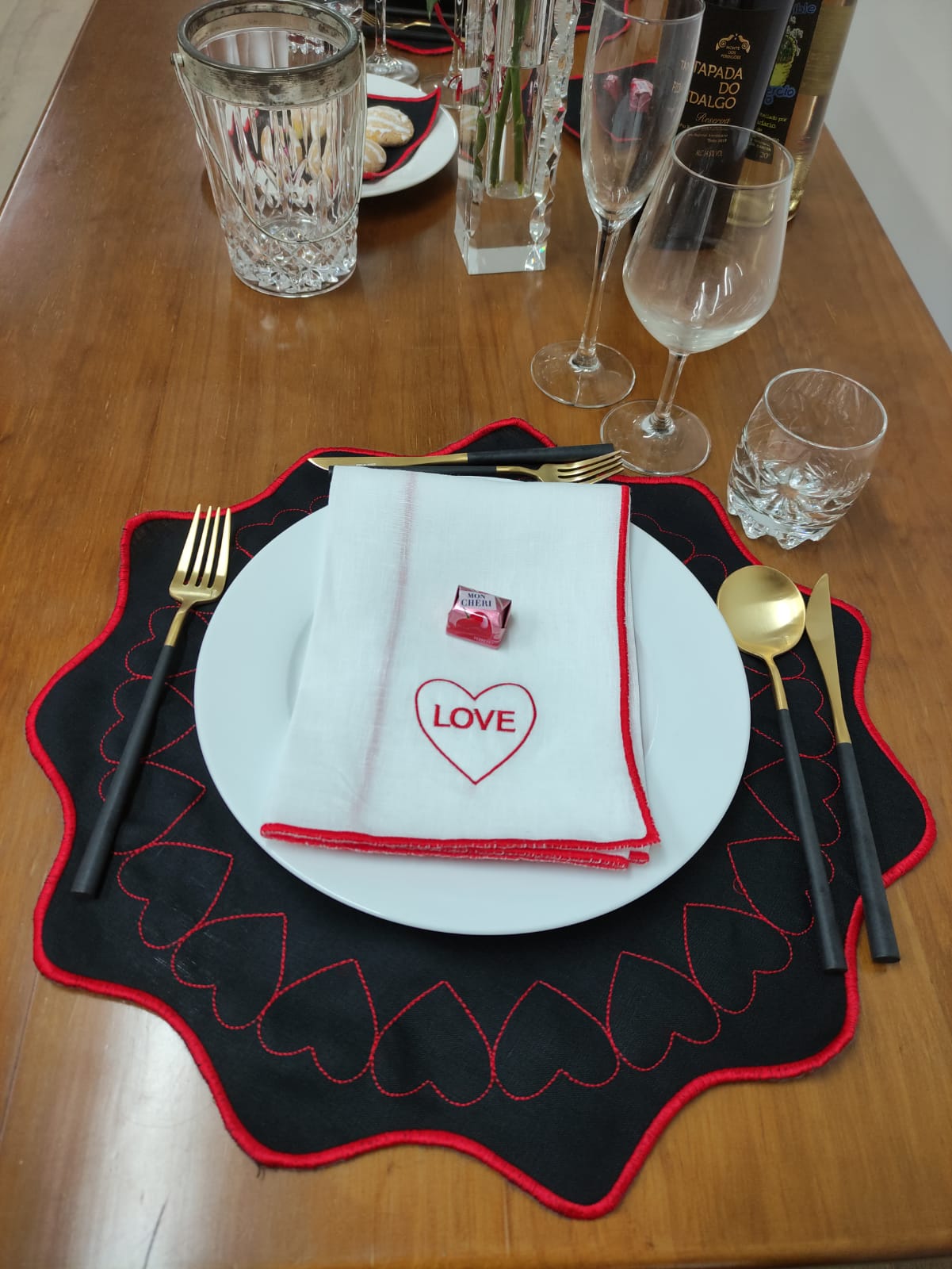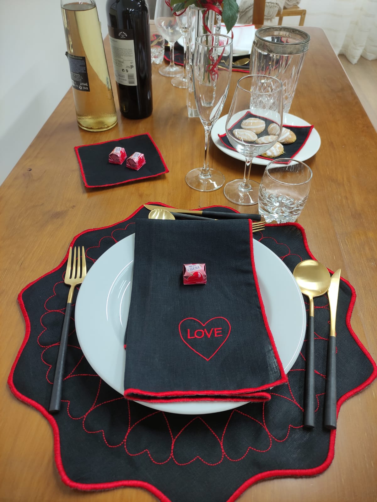 Coleção em linho, guardanapo e individual de mesa dedicada ao Amor.