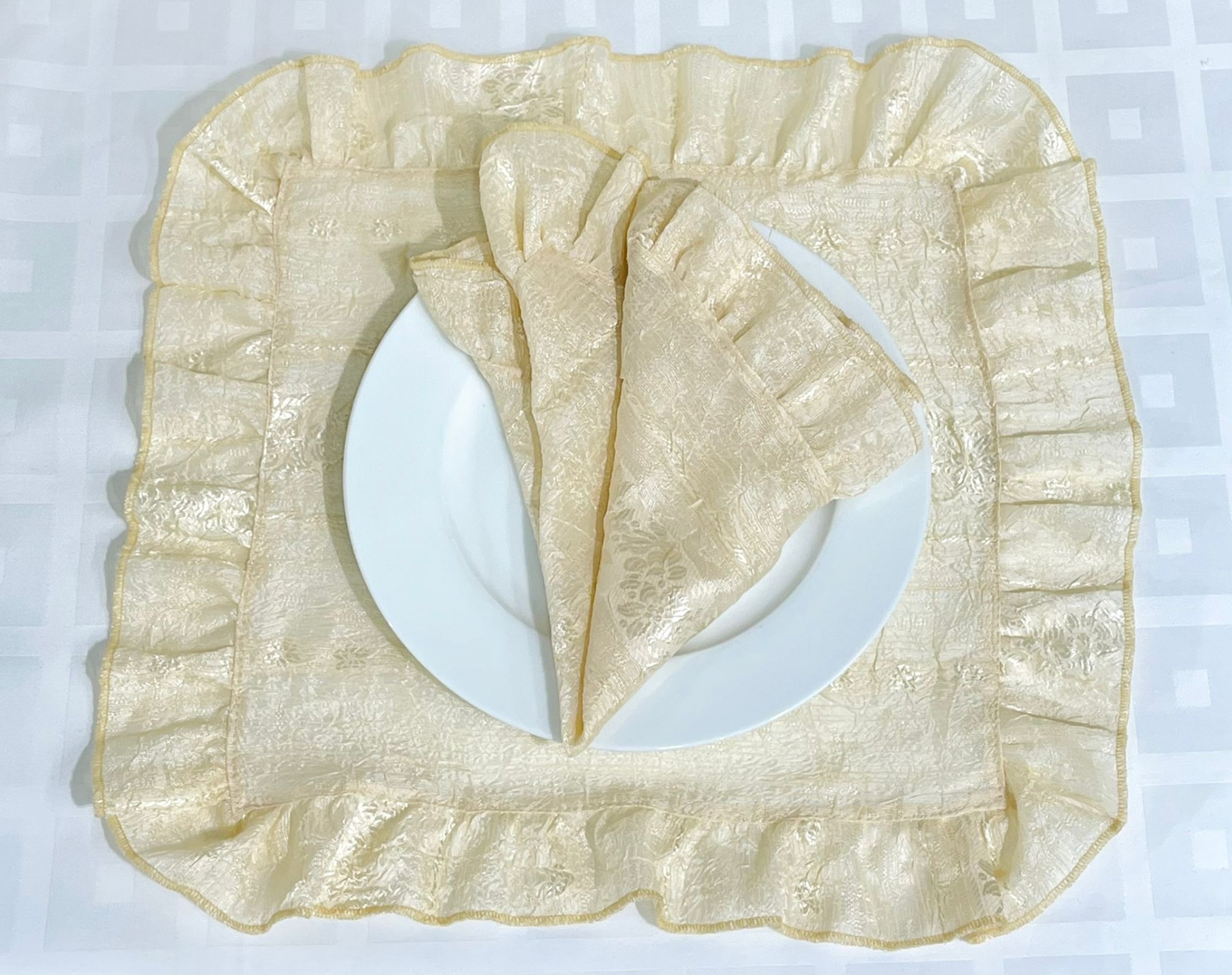 Individual de mesa e guardanapo em Organza na cor Dourada.