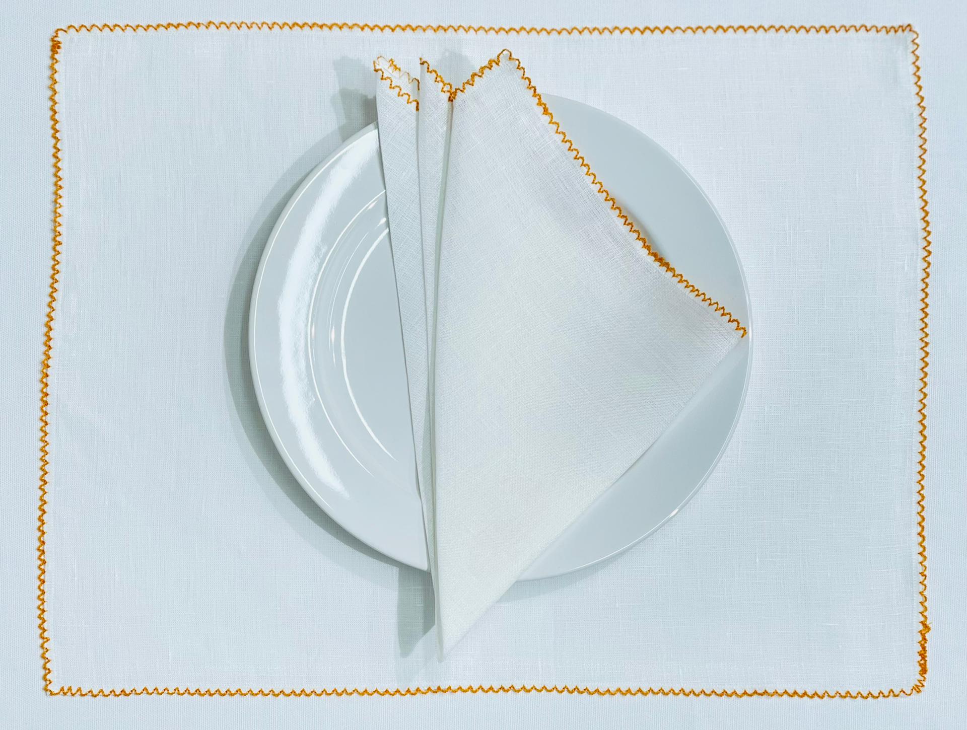Individual e Guardanapo Ponto Beijinho Linho JOL