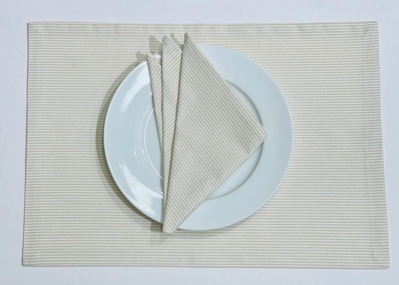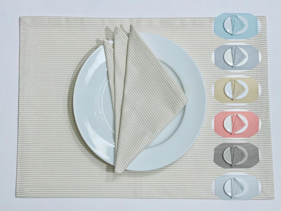 Individual e guardanapo em algodão básico com riscas.
