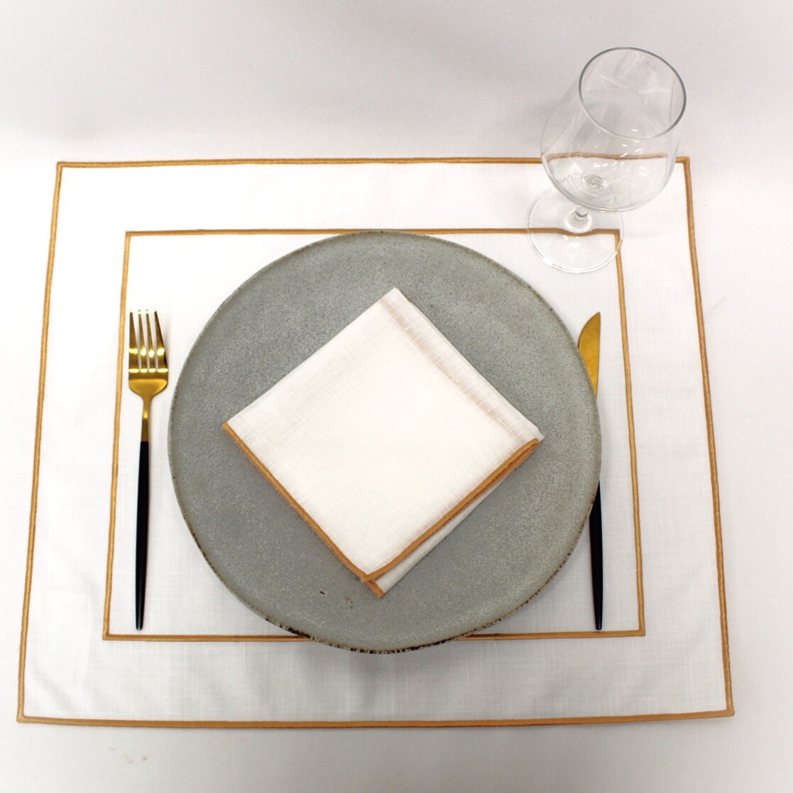 Individual e Guardanapo, em 50% Algodão 50% Linho, com aplicação de 2 rolinhos.