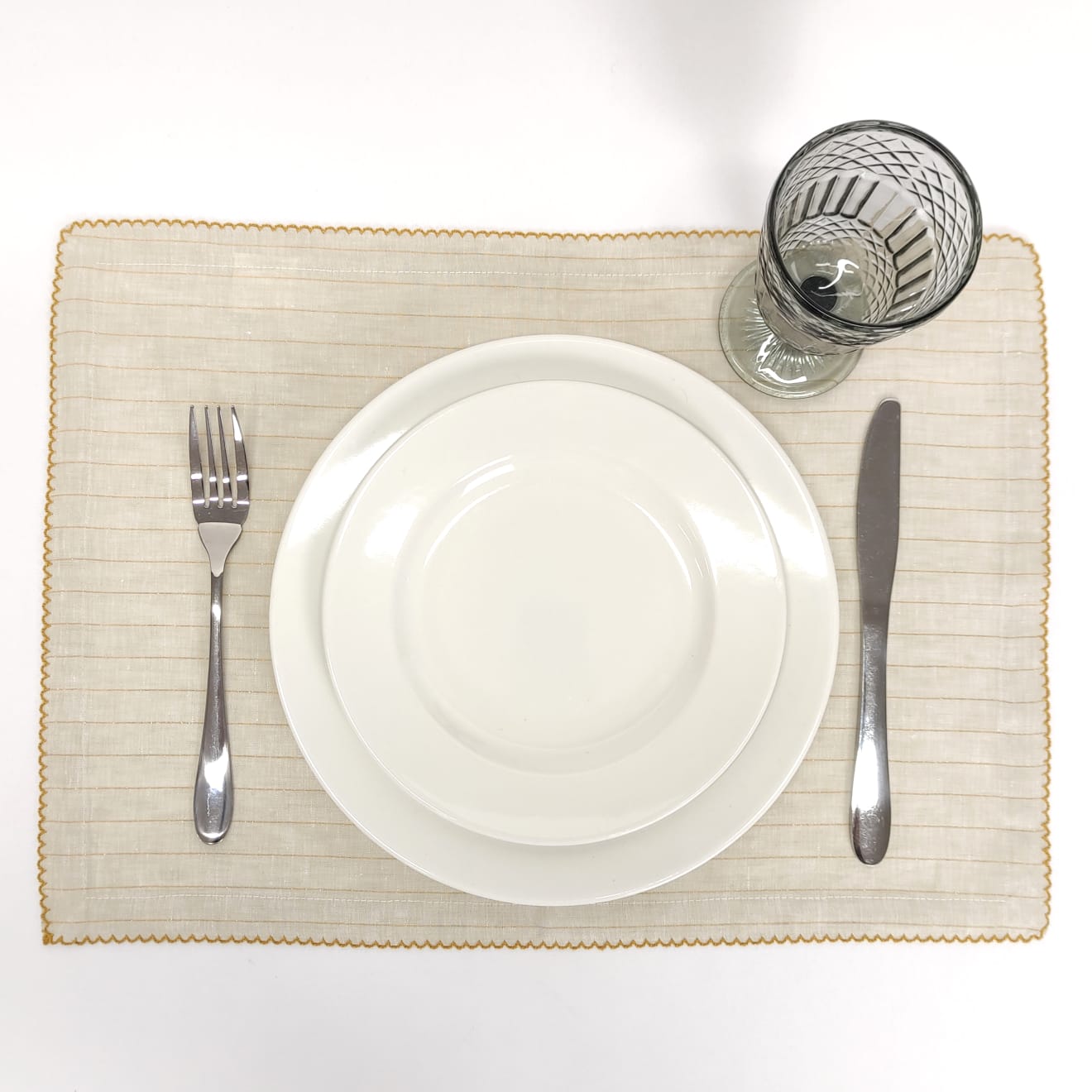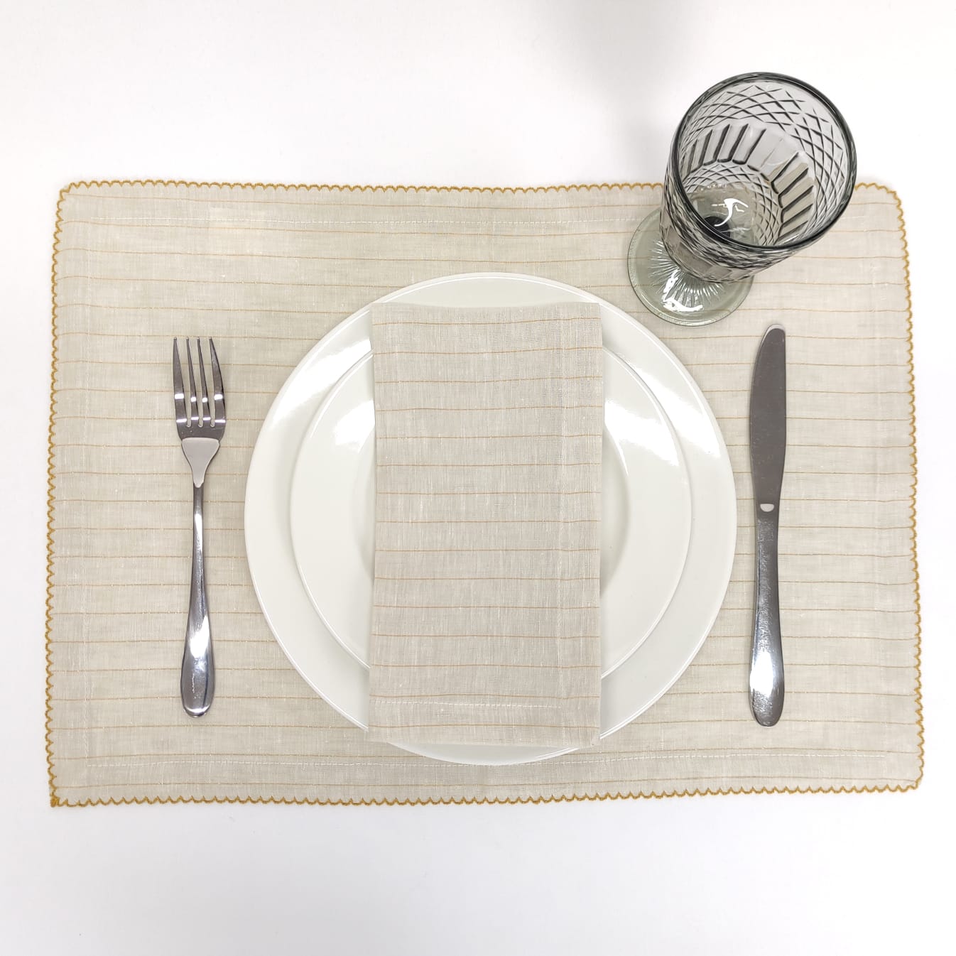 Individual de mesa, guardanapo e caminho de mesa em linho.