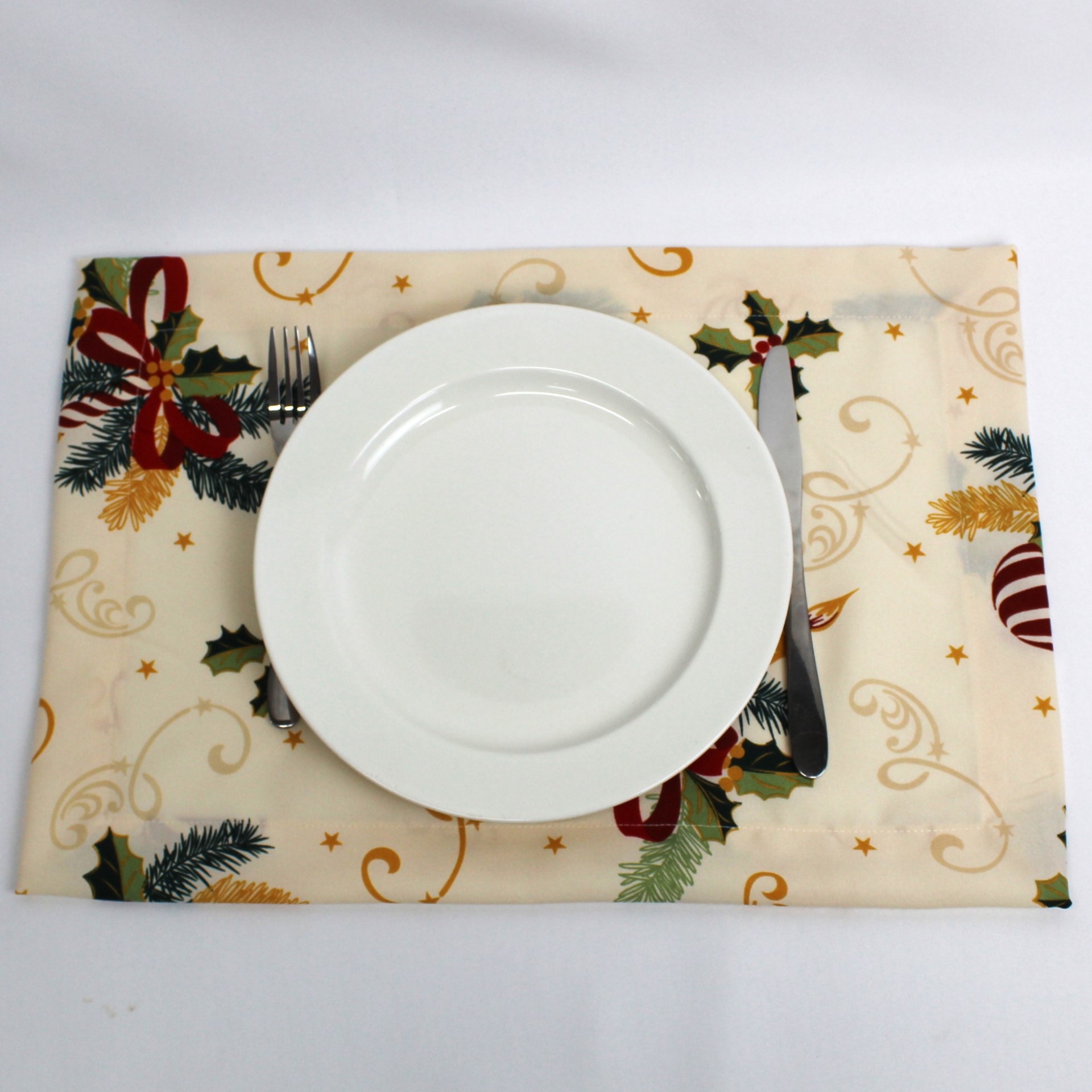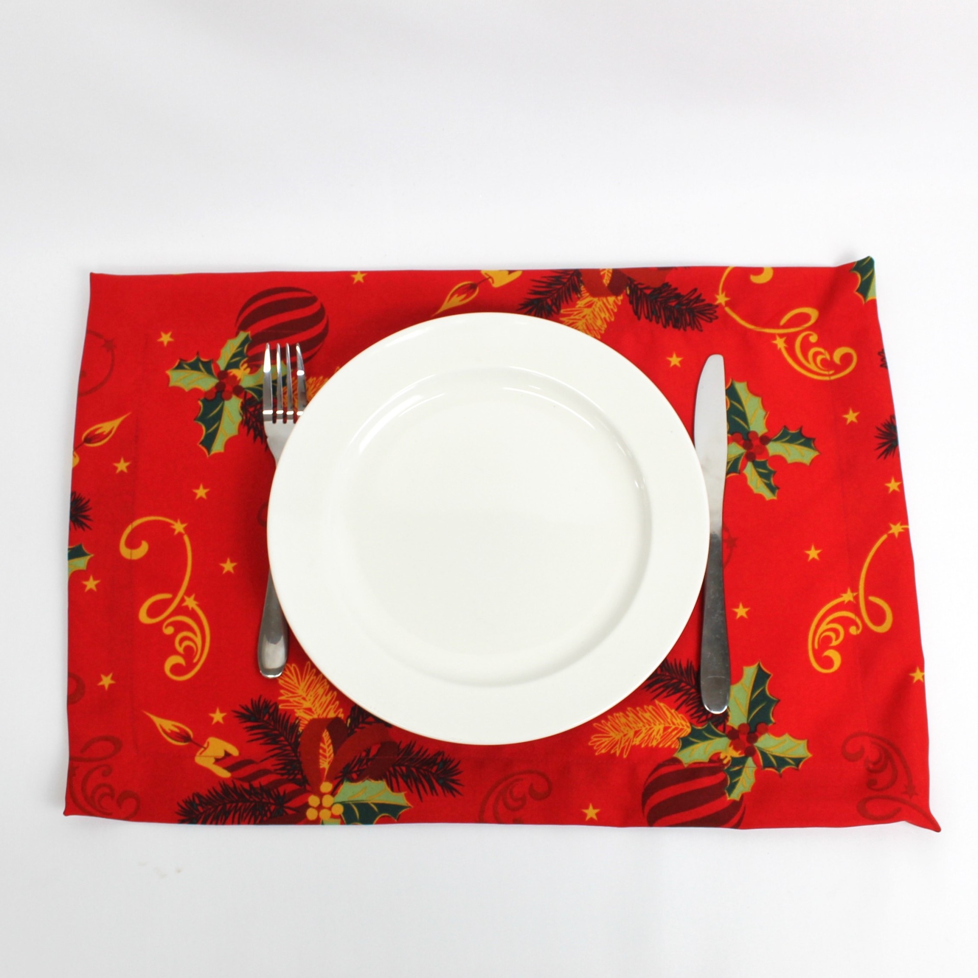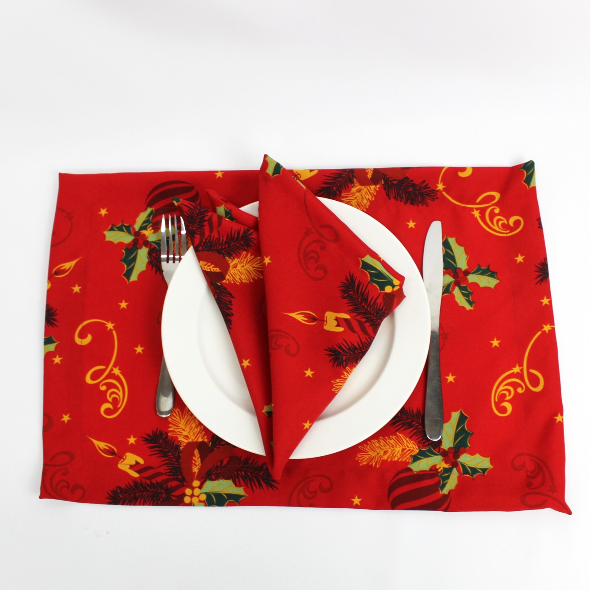 Coleção Natalicia, disponivel em individual, guardanapo e caminho de mesa. Tecido estampado com acabamento de bainha inglesa.