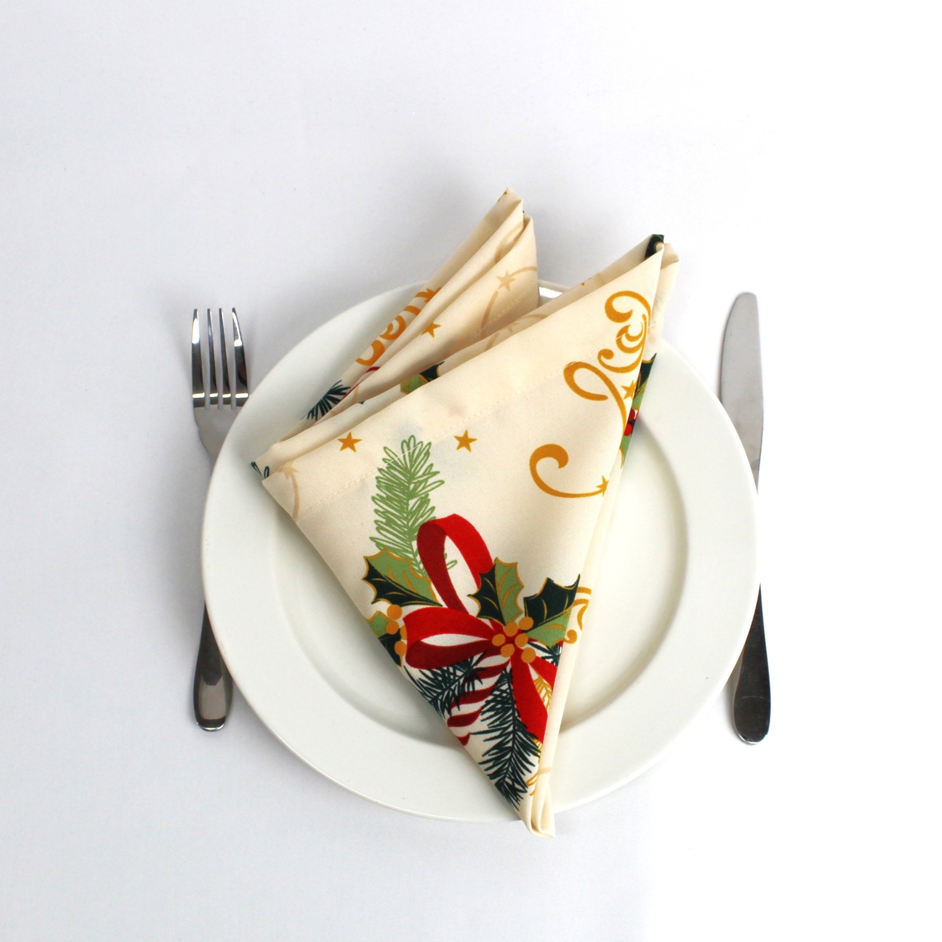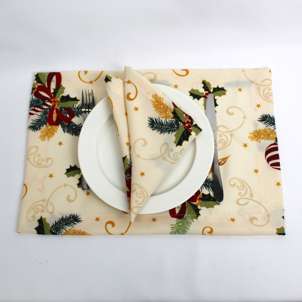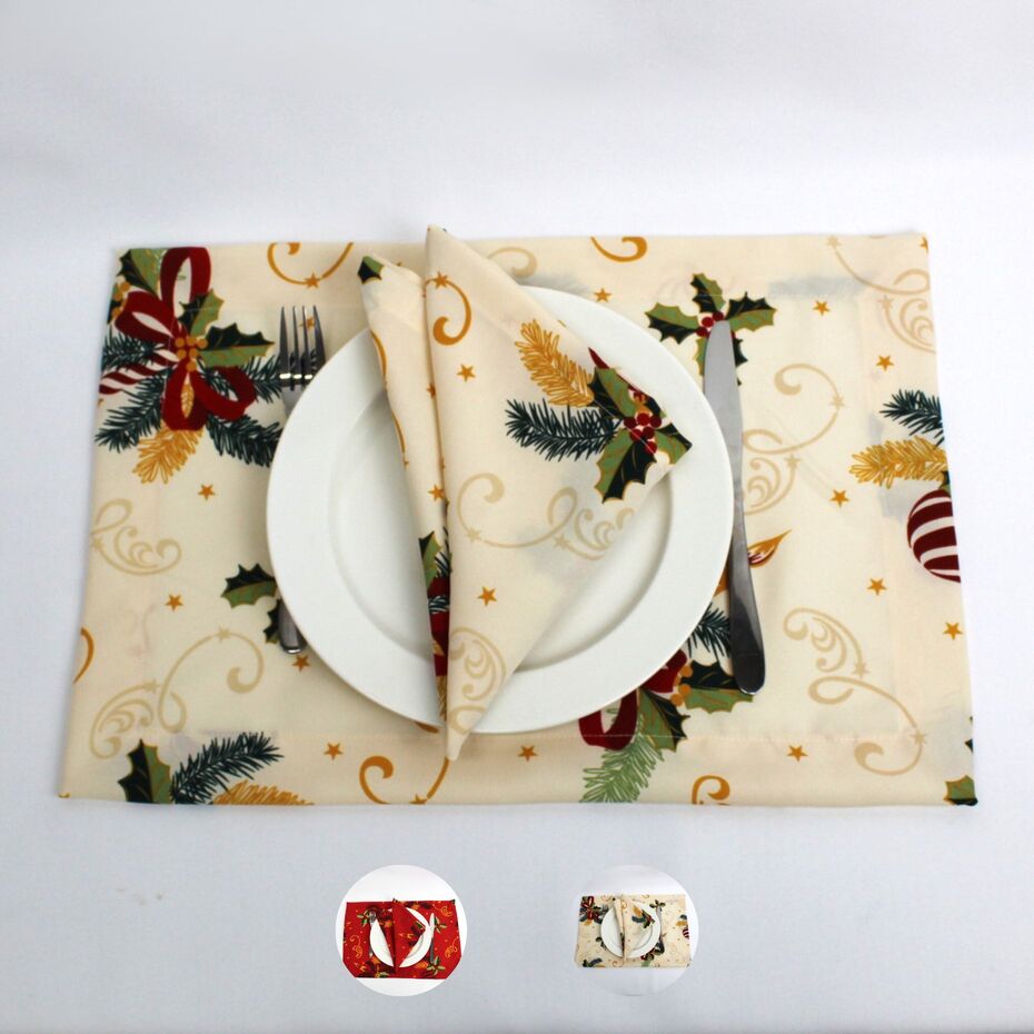 Coleção Natalicia, disponivel em individual, guardanapo e caminho de mesa. Tecido estampado com acabamento de bainha inglesa.