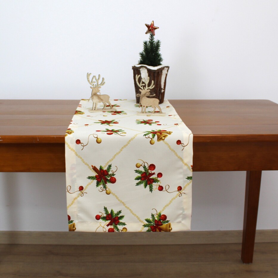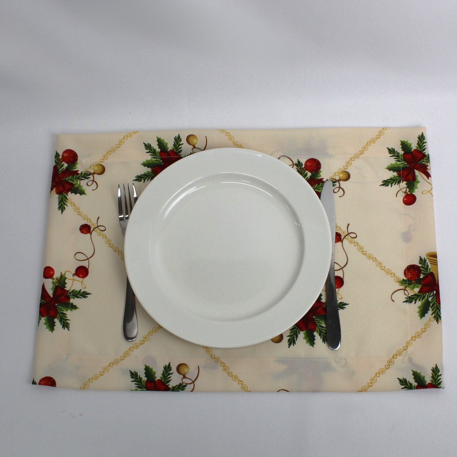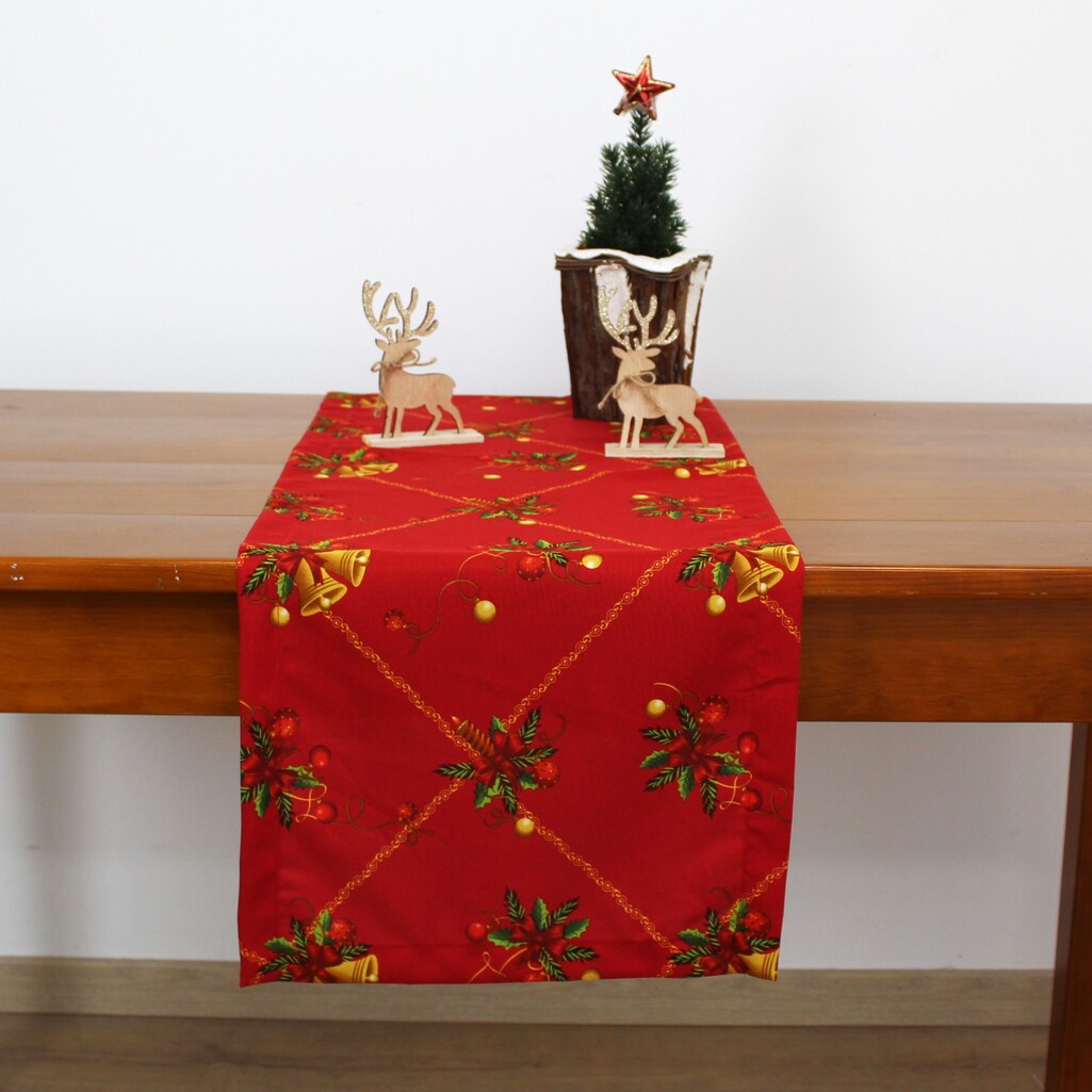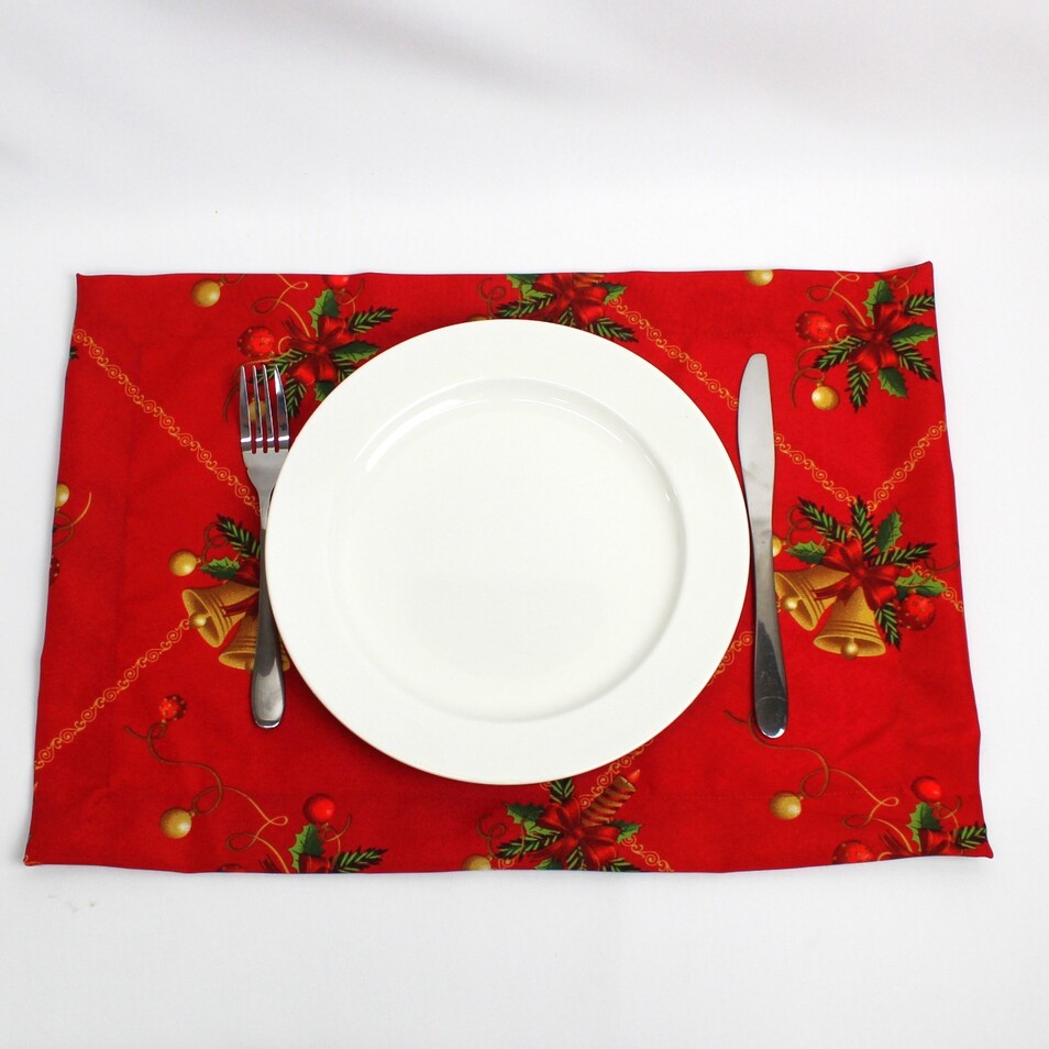 Coleção Natalicia, disponivel em individual, guardanapo e caminho de mesa. Tecido estampado de sinos de natal com acabamento de bainha inglesa.
