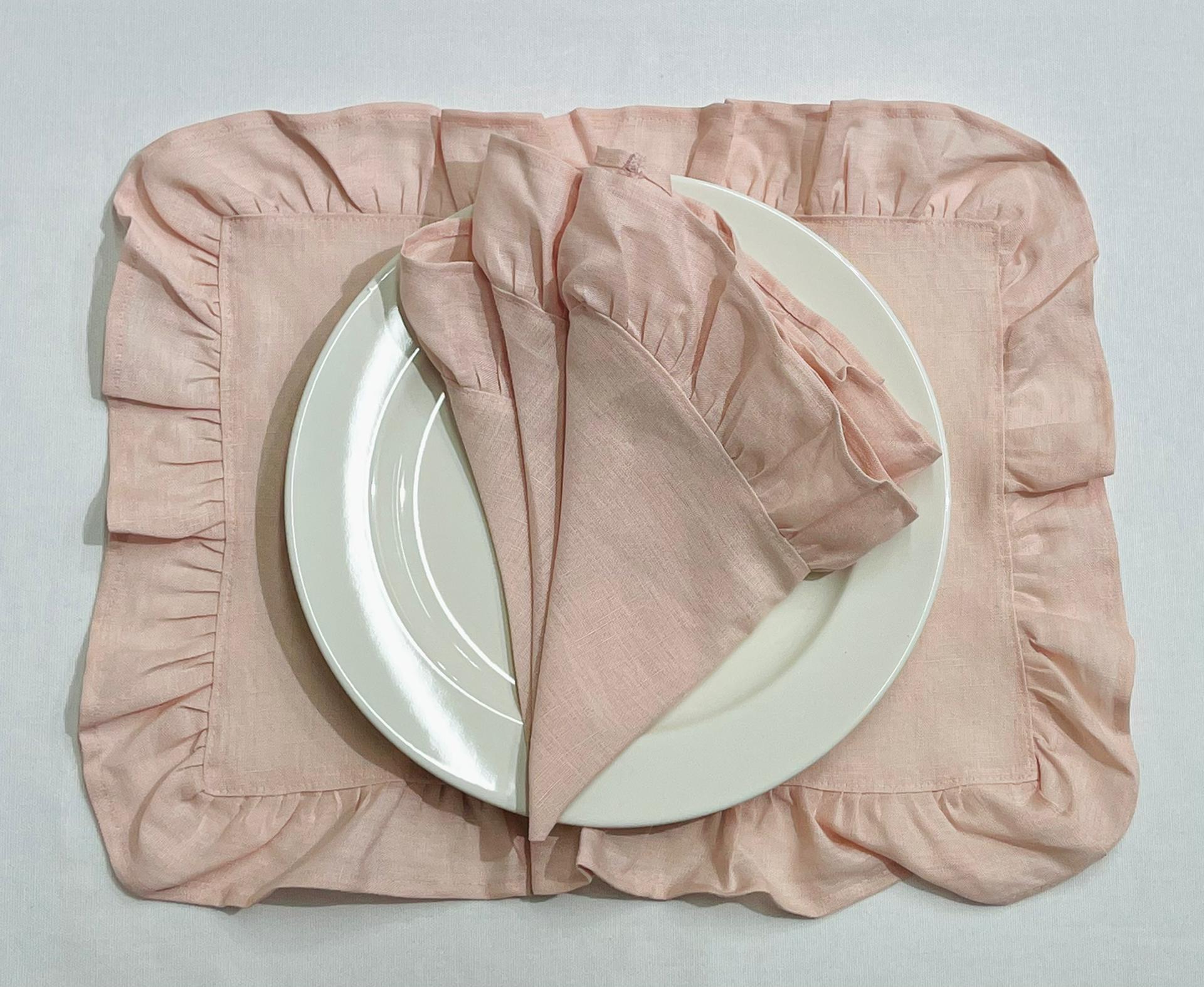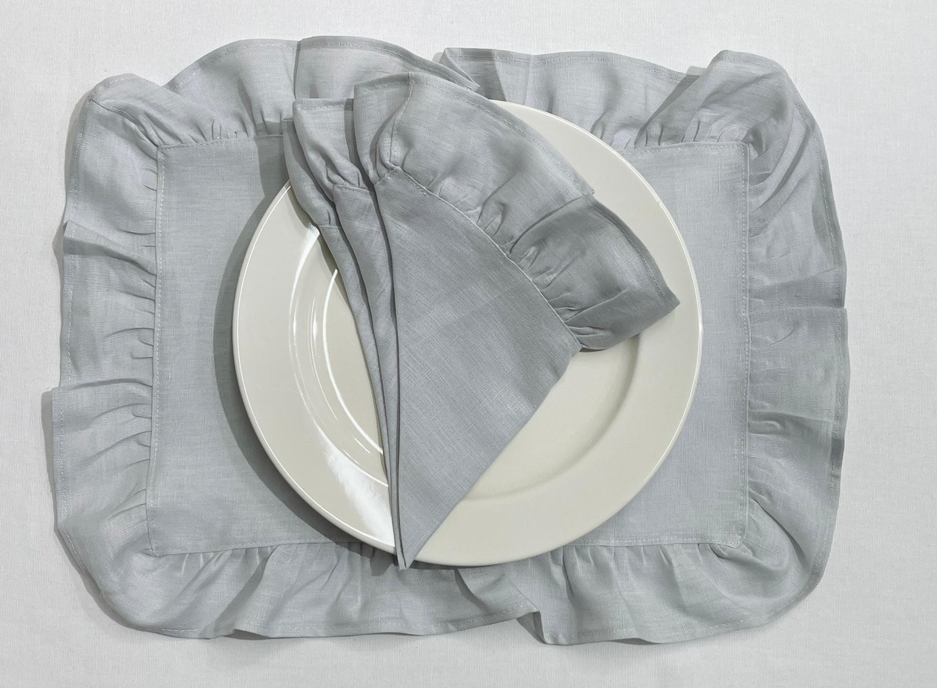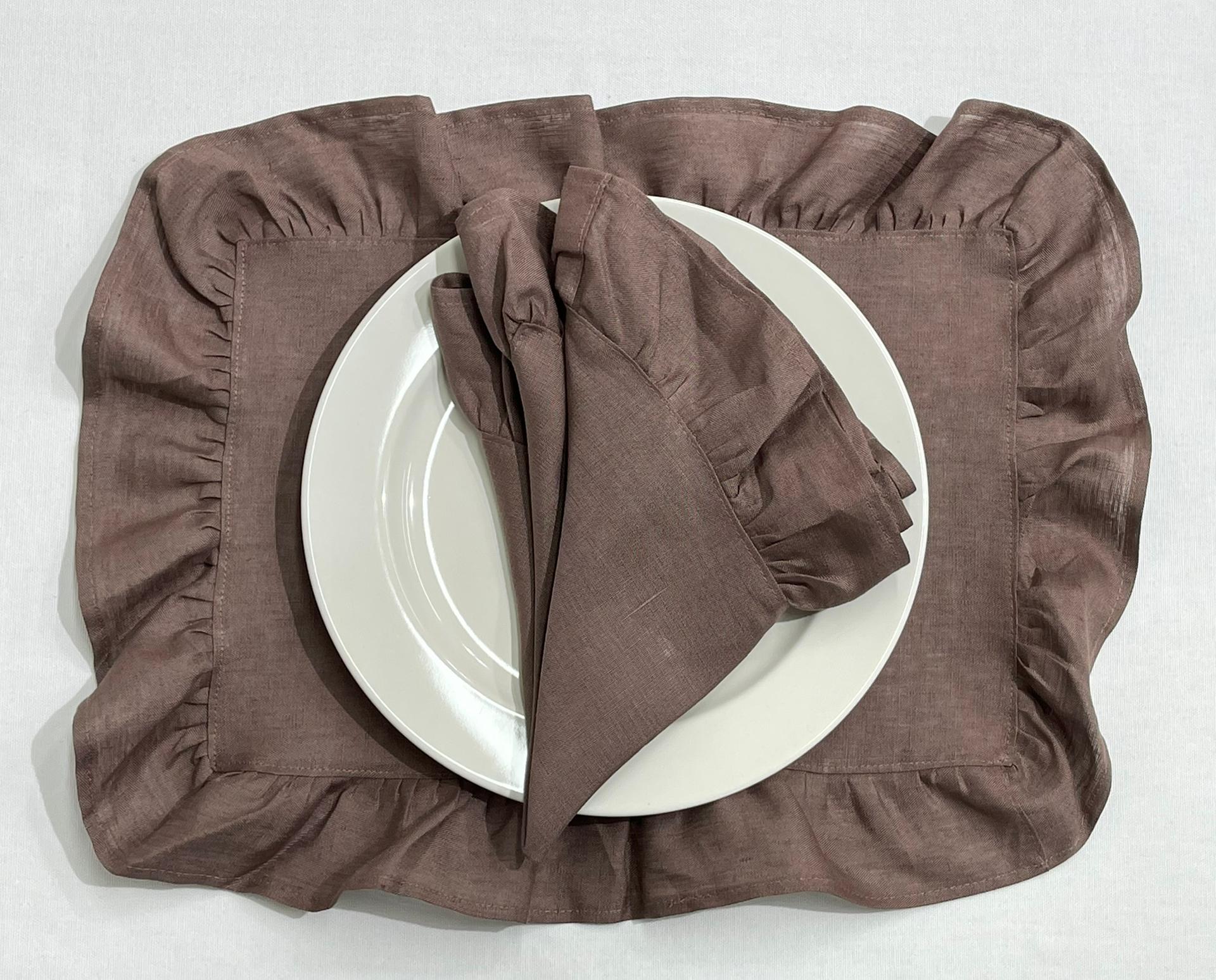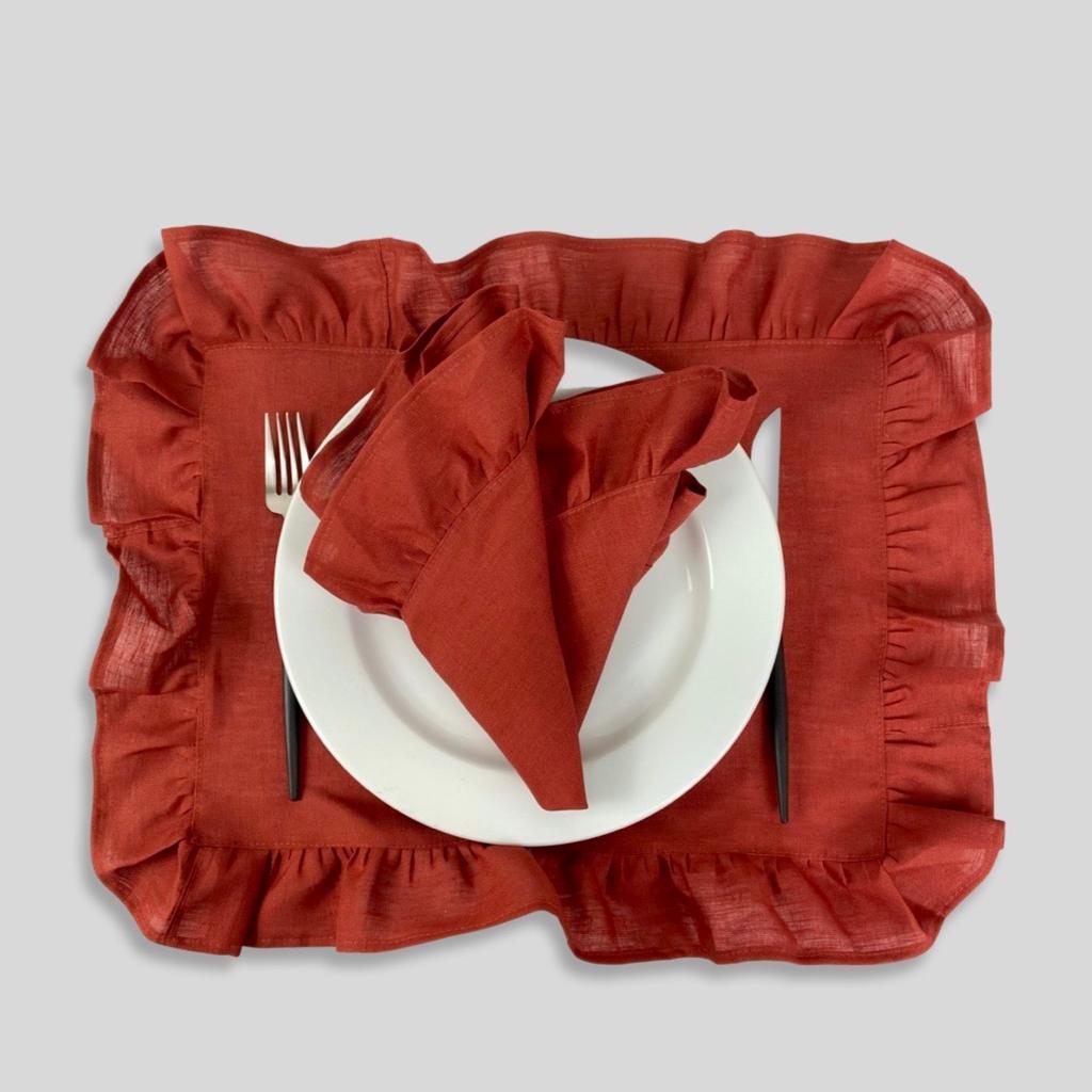 Individual de mesa , guardanapo e caminho de mesa em linho com aplicação de folho. Modelo elegante.