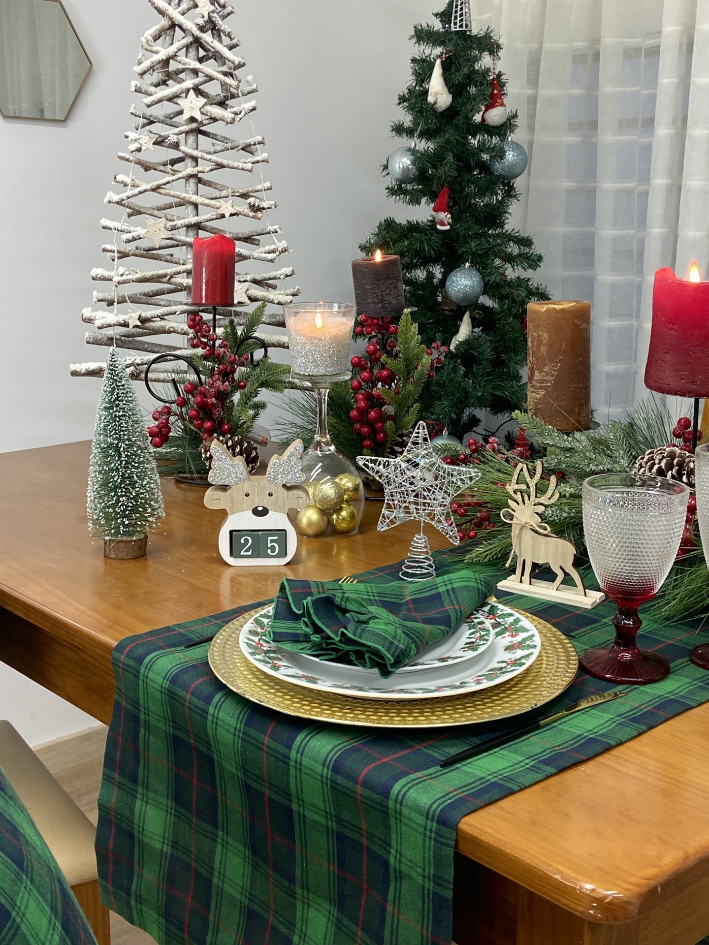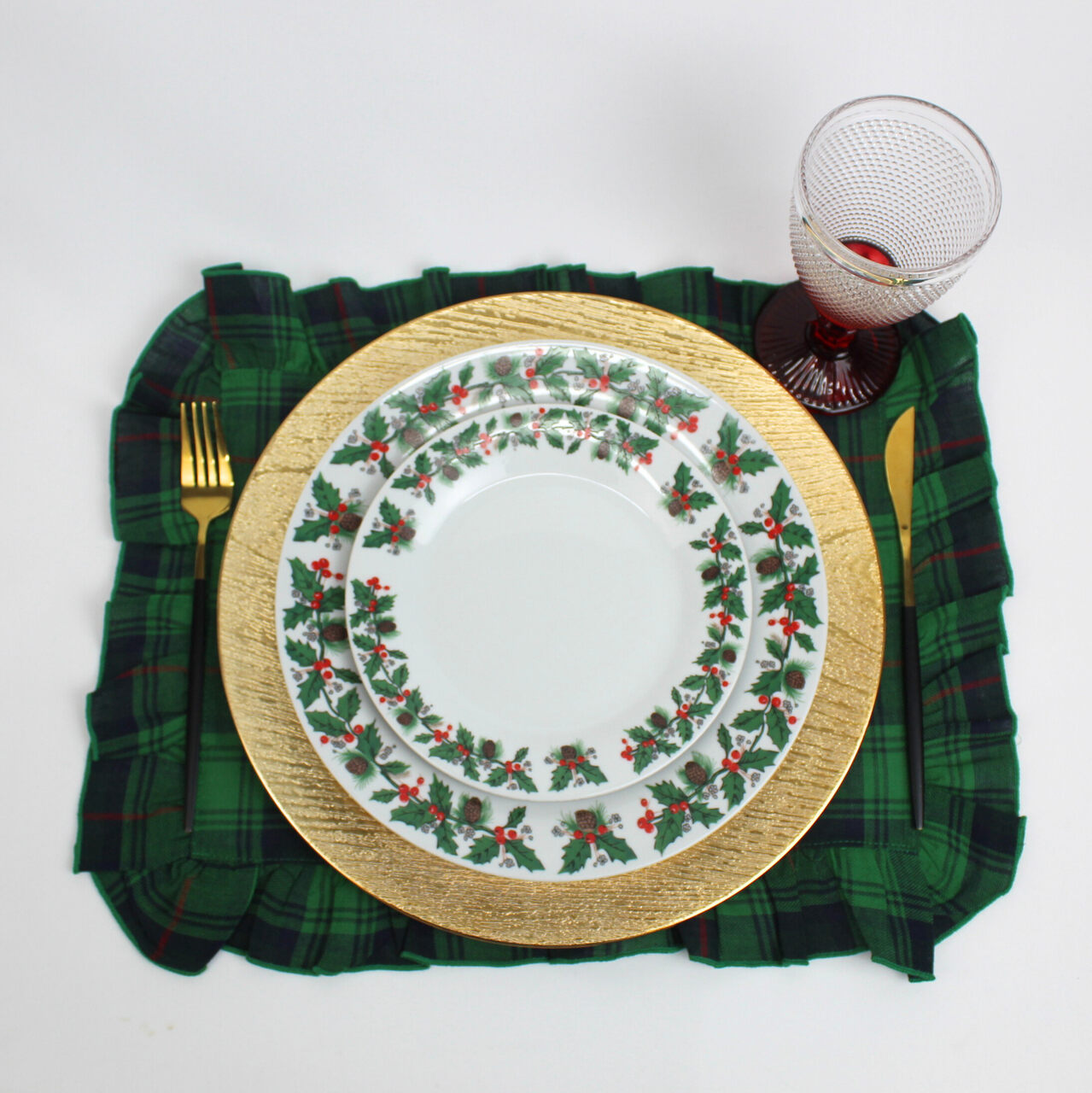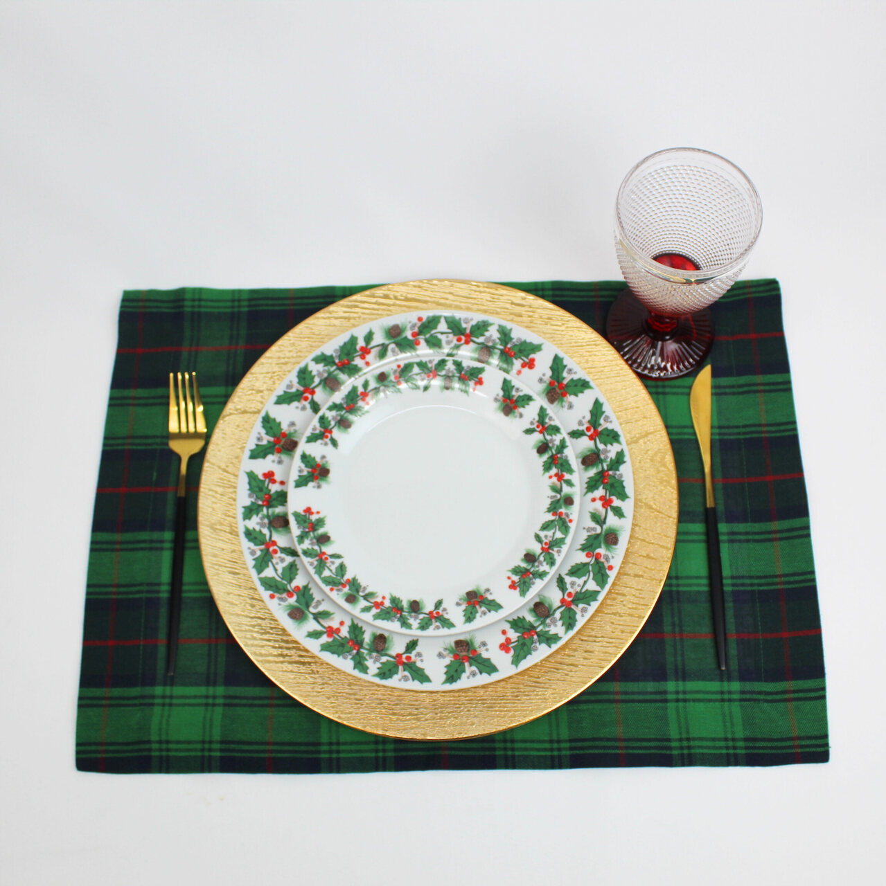 Coleção Natalicia, disponivel em individual, guardanapo e caminho de mesa. Tecido com quadrados nas seguintes cores: azul, vermelho e verde. Acabamento em bainha inglesa.