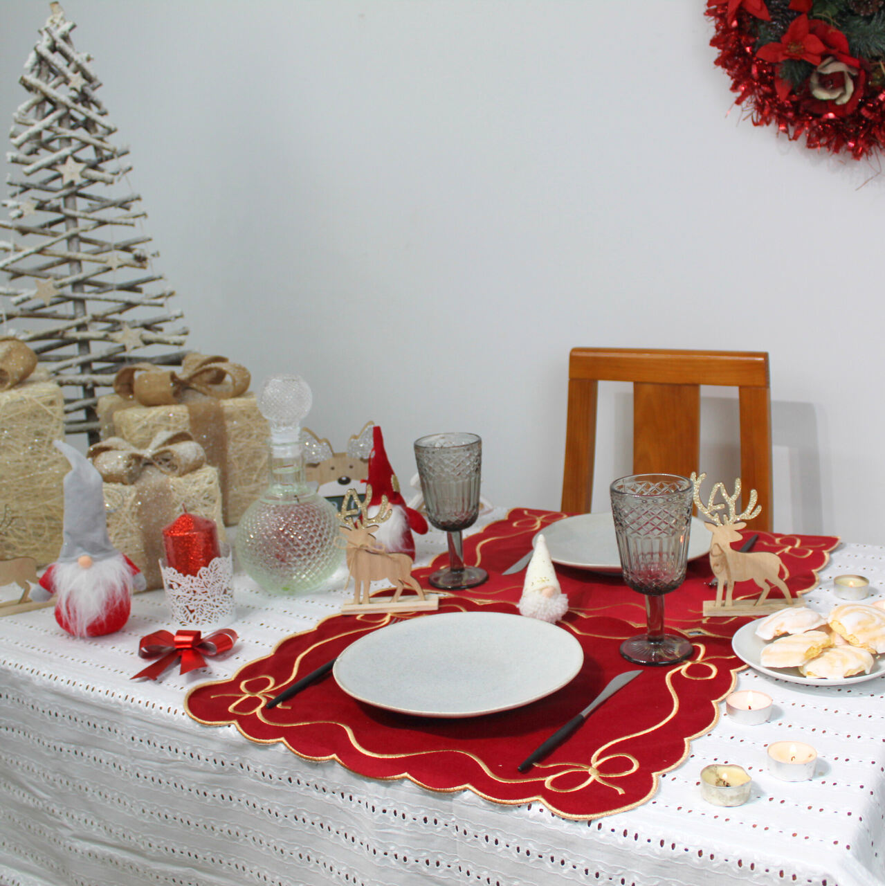 Clássico e Elegante é assim o Individual Sonhos de Natal. Modelo em veludo com detalhes em dourado.