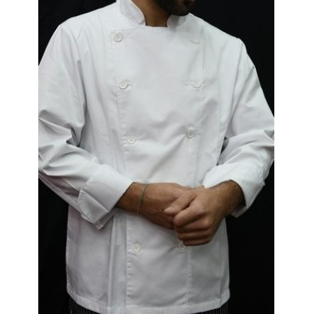 Jaleca branca ou preta, de manga comprida. Ideal para hotelaria.