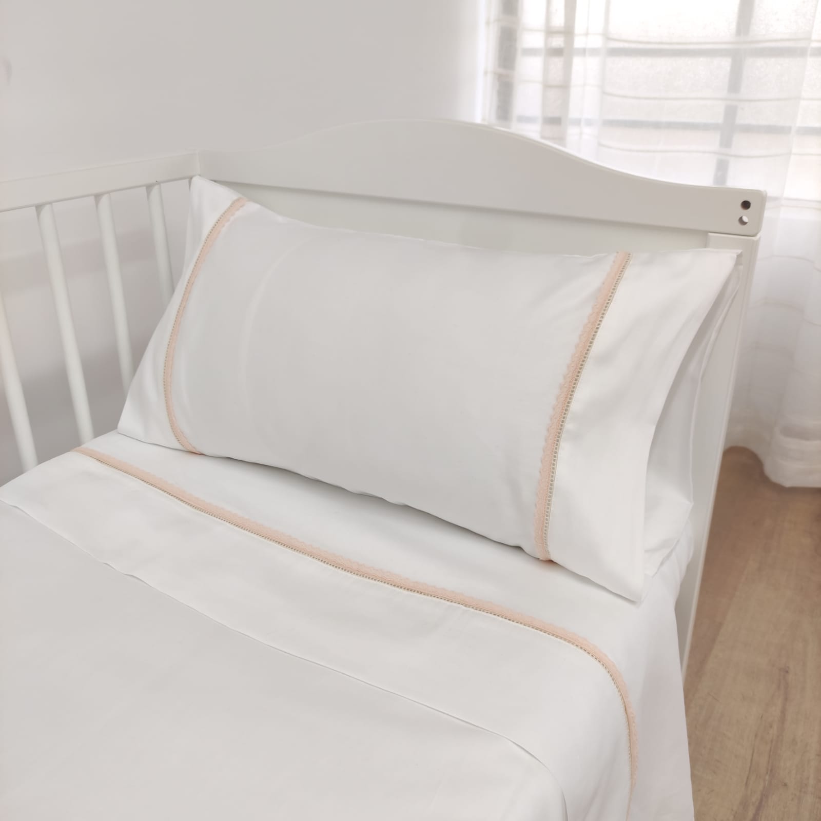• Maxi Cuna (70x140cm) - 1 lençol de cima (110x190cm) + 1 lençol de baixo (70x140cm) + 1 fronha de almofada (35x70cm)
