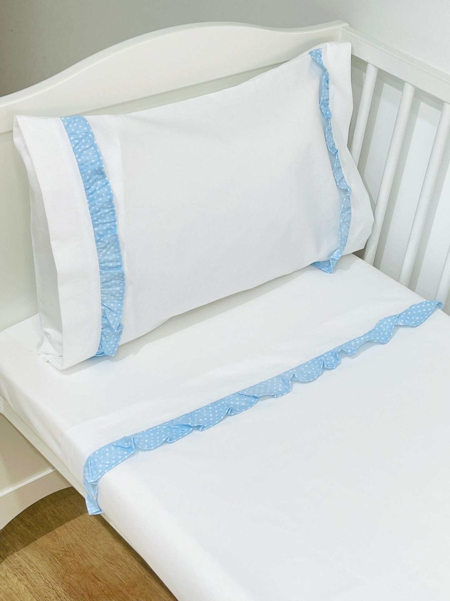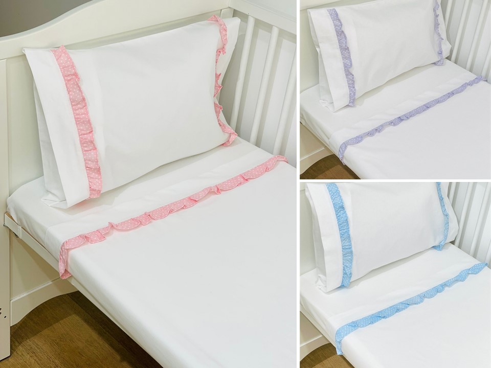 Maxi Berço (70x140cm)- 1 lençol de cima (110x190cm) + 1 lençol de baixo (70x140cm) + 1 fronha de almofada (35x70cm)