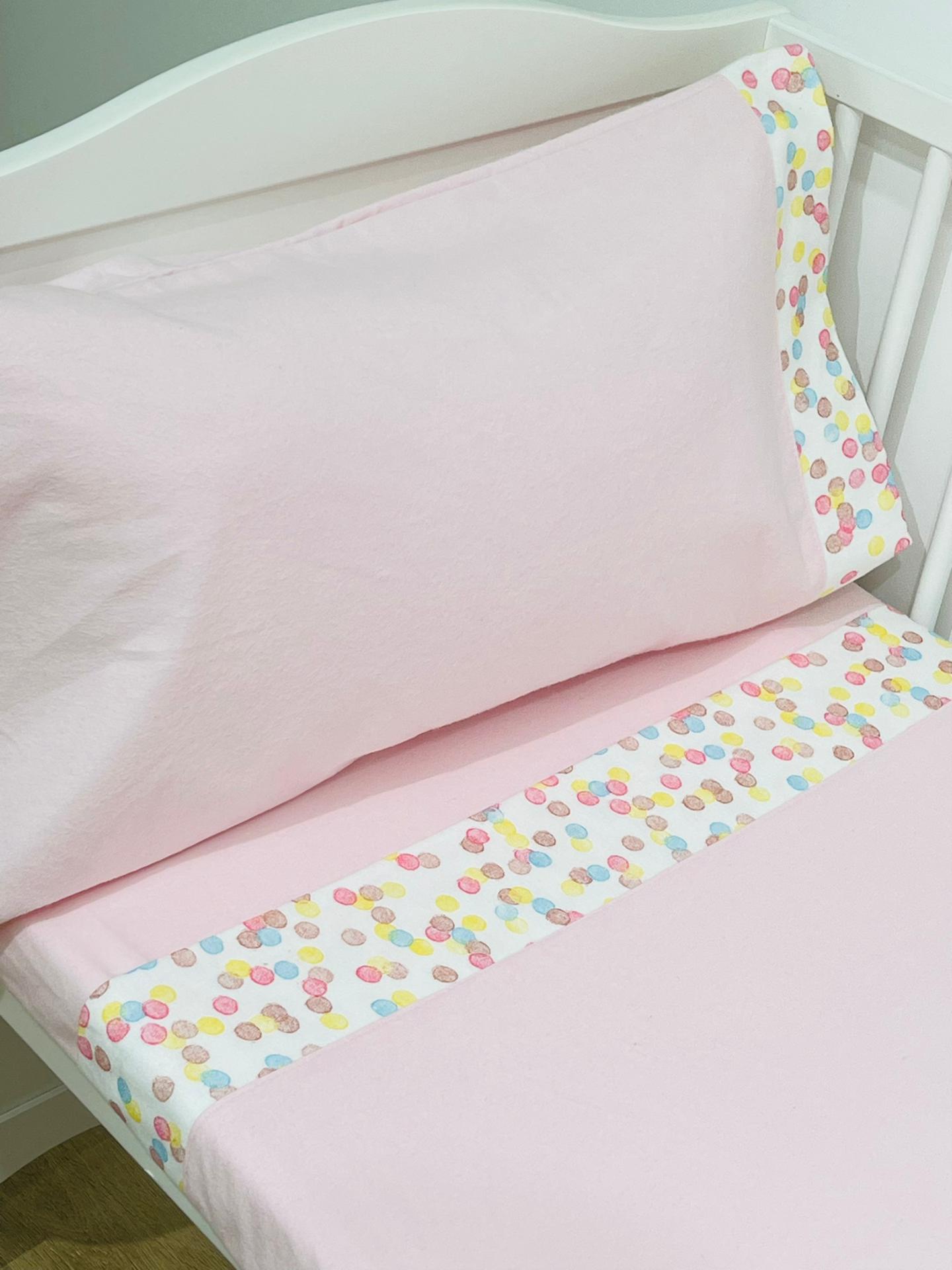 Maxi Berço (70x140cm)- 1 lençol de cima (110x190cm) + 1 lençol de baixo (70x140cm) + 1 fronha de almofada (35x70cm)