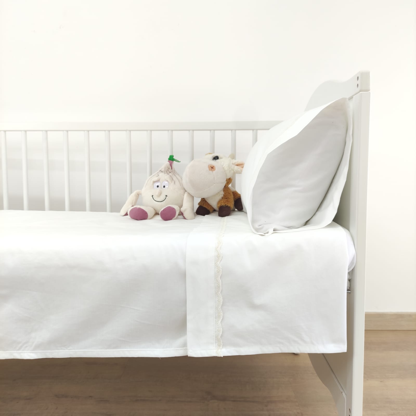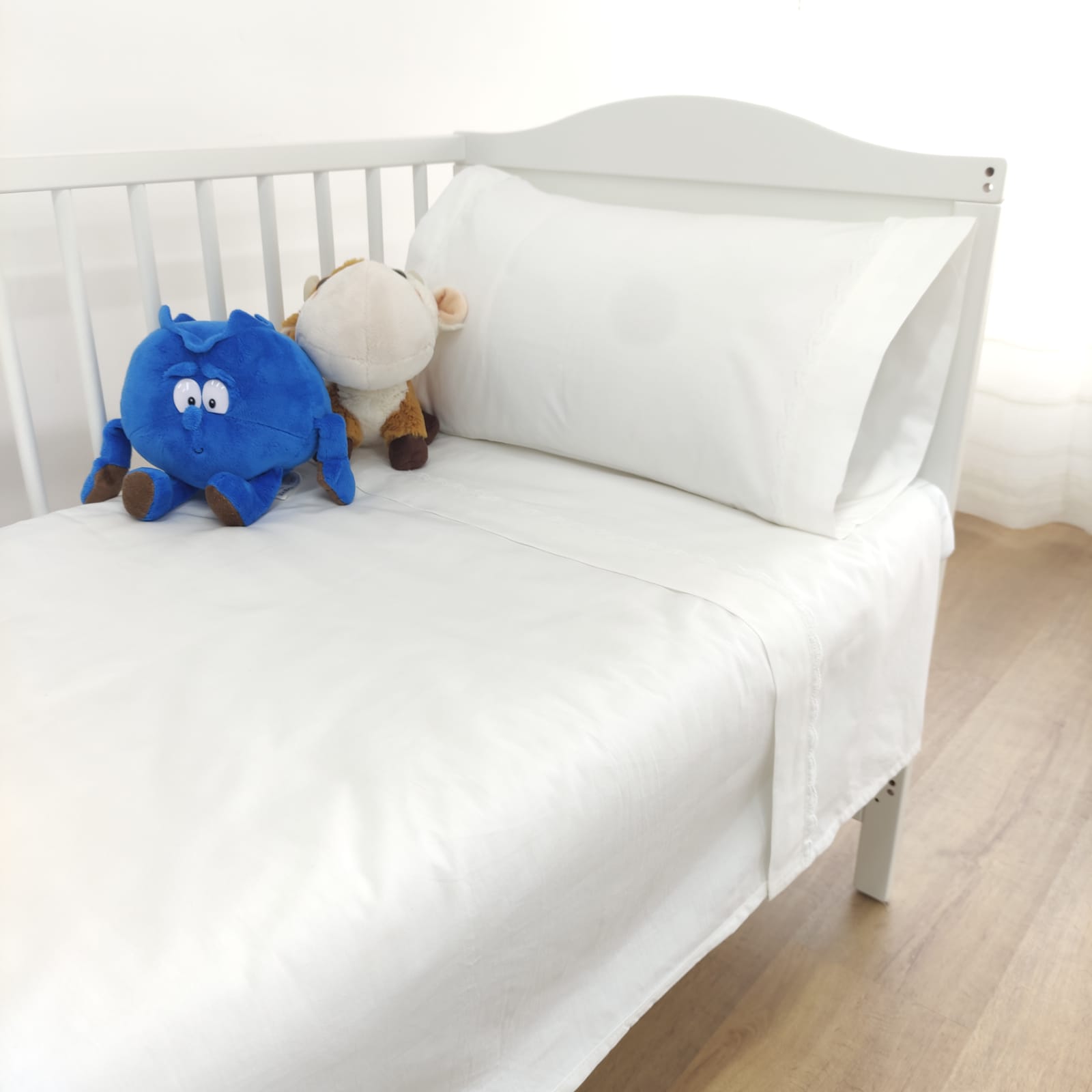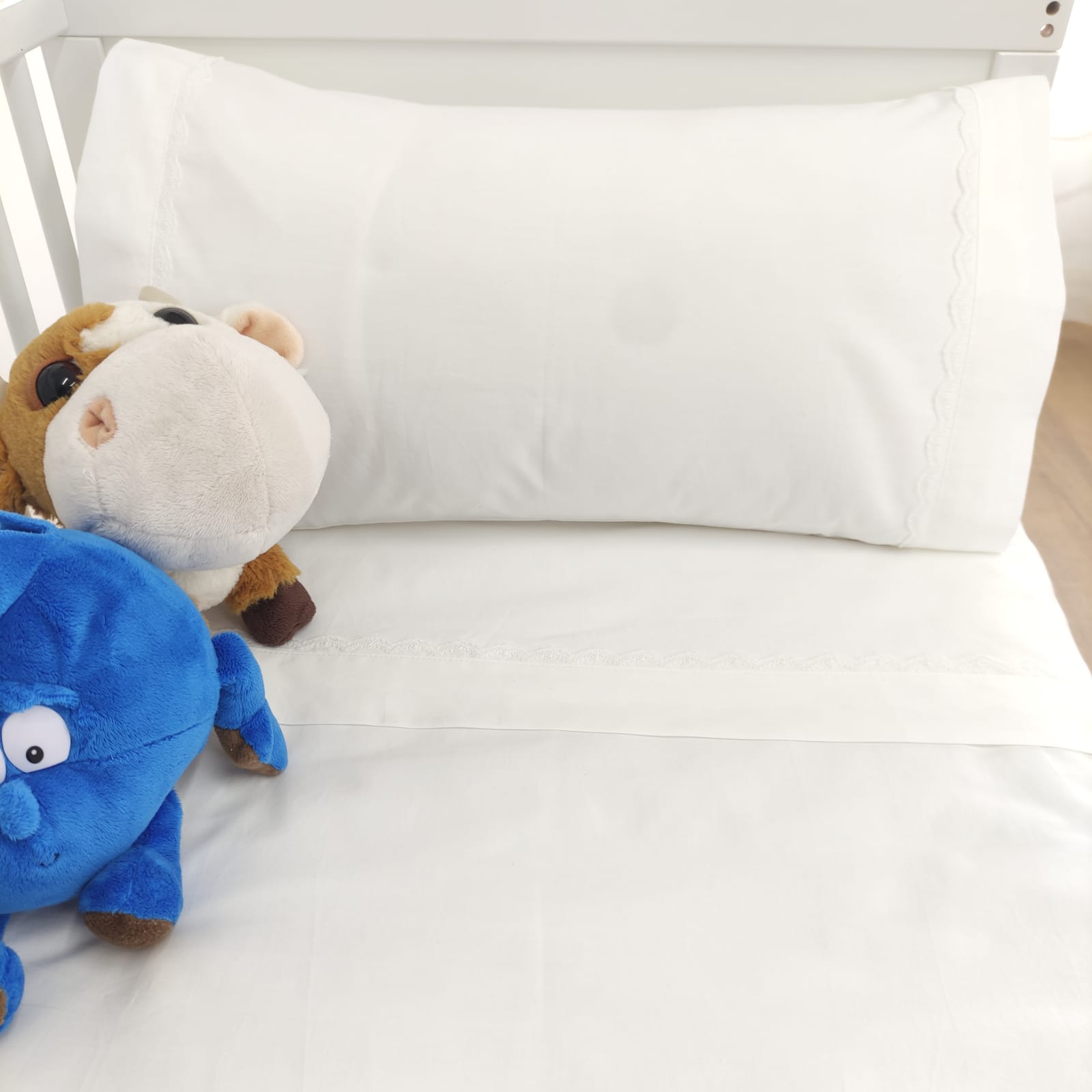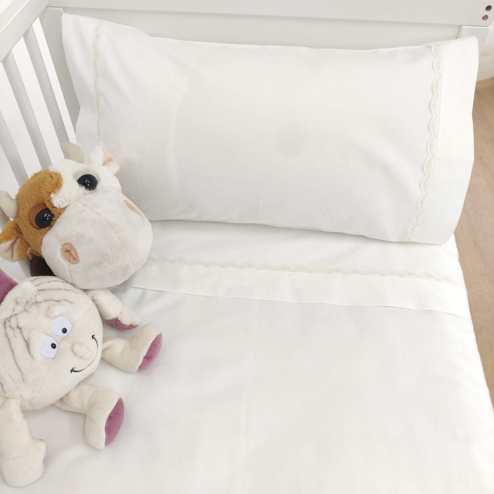 Berço (60x120cm)- 1 lençol de cima (100x170cm) + 1 lençol de baixo (60x120cm) + 1 fronha de almofada (35x55cm)