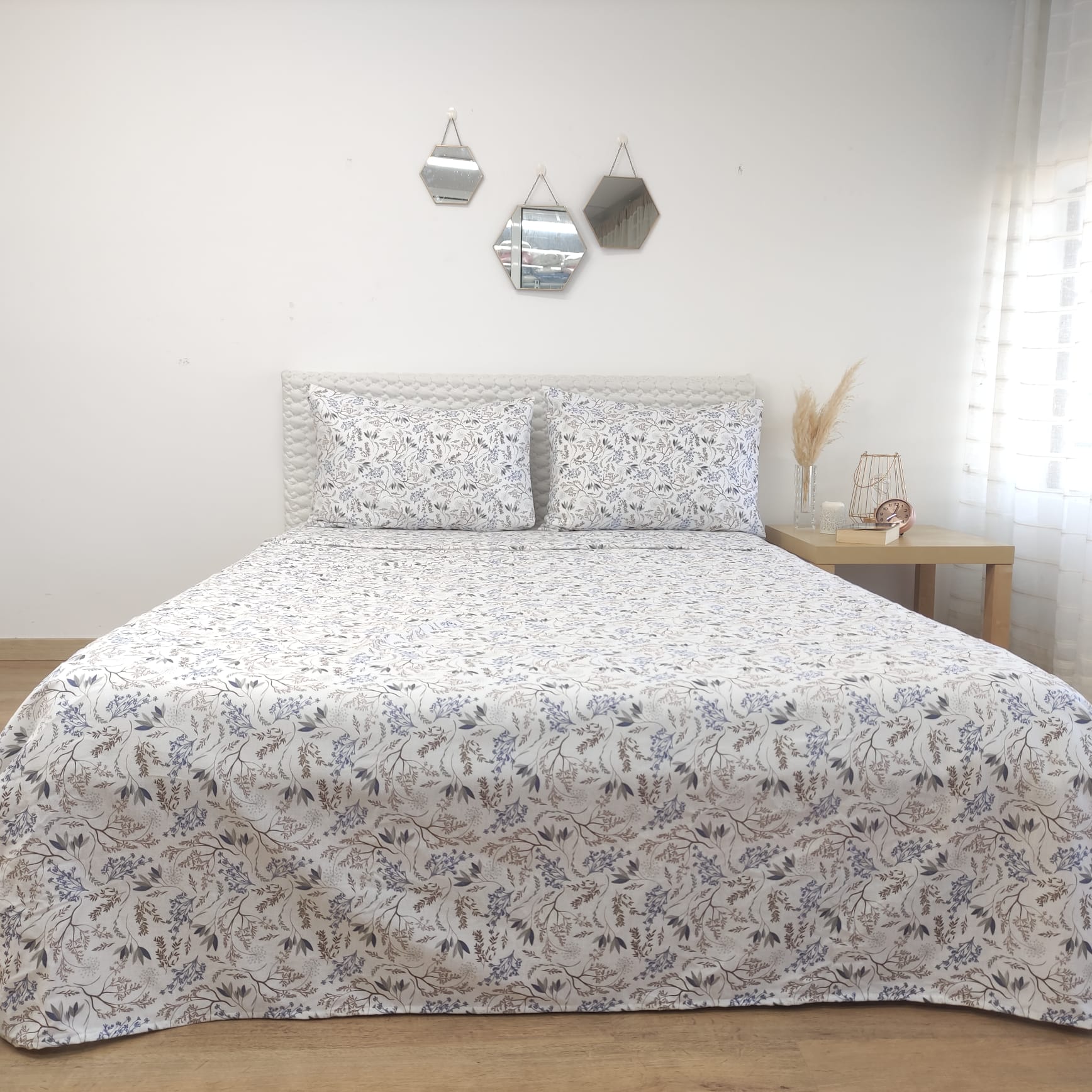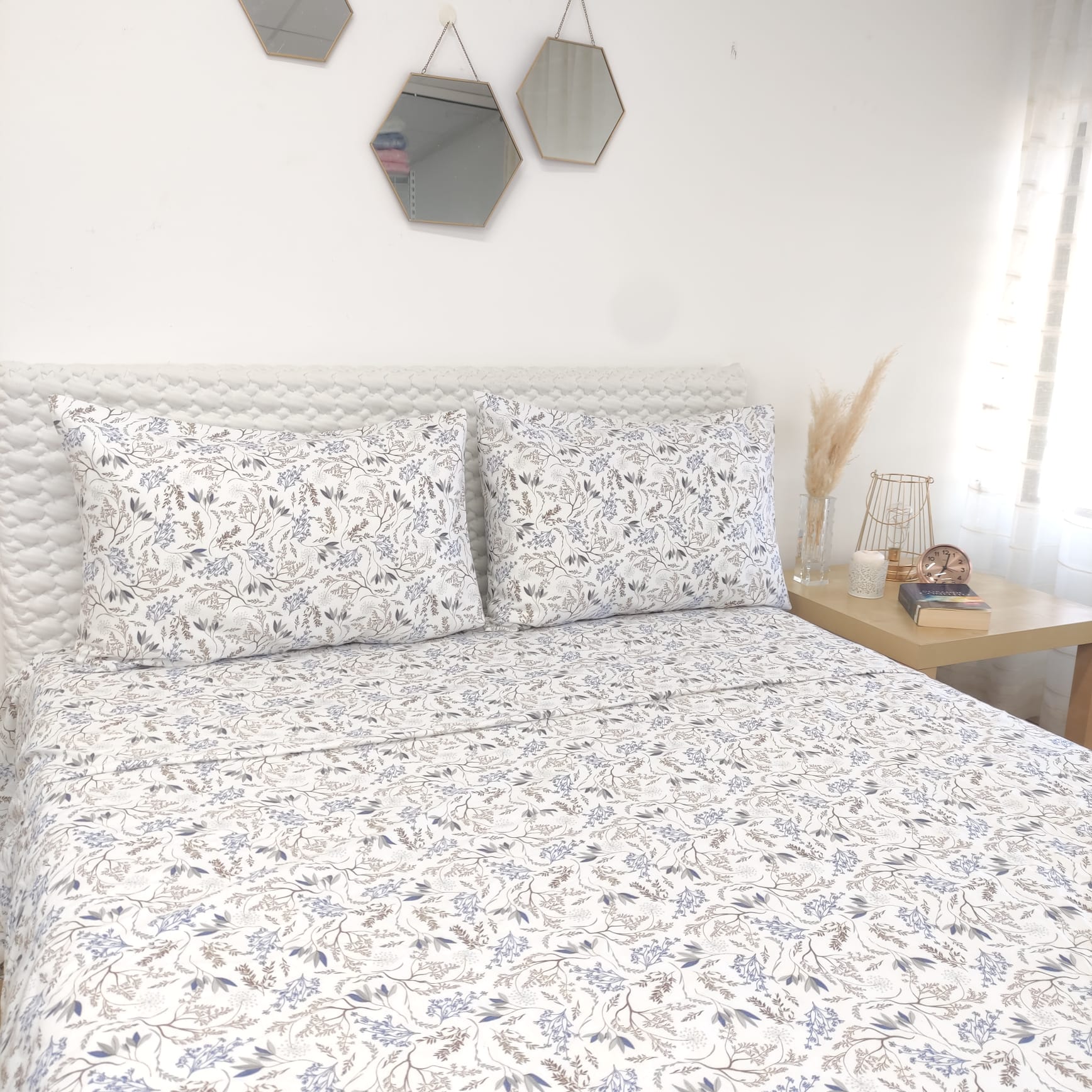 Jogo de Lençóis em flanela, com um padrão elegante, com textura suave e macia ideal para noites de descanso confortáveis e aconchegantes.