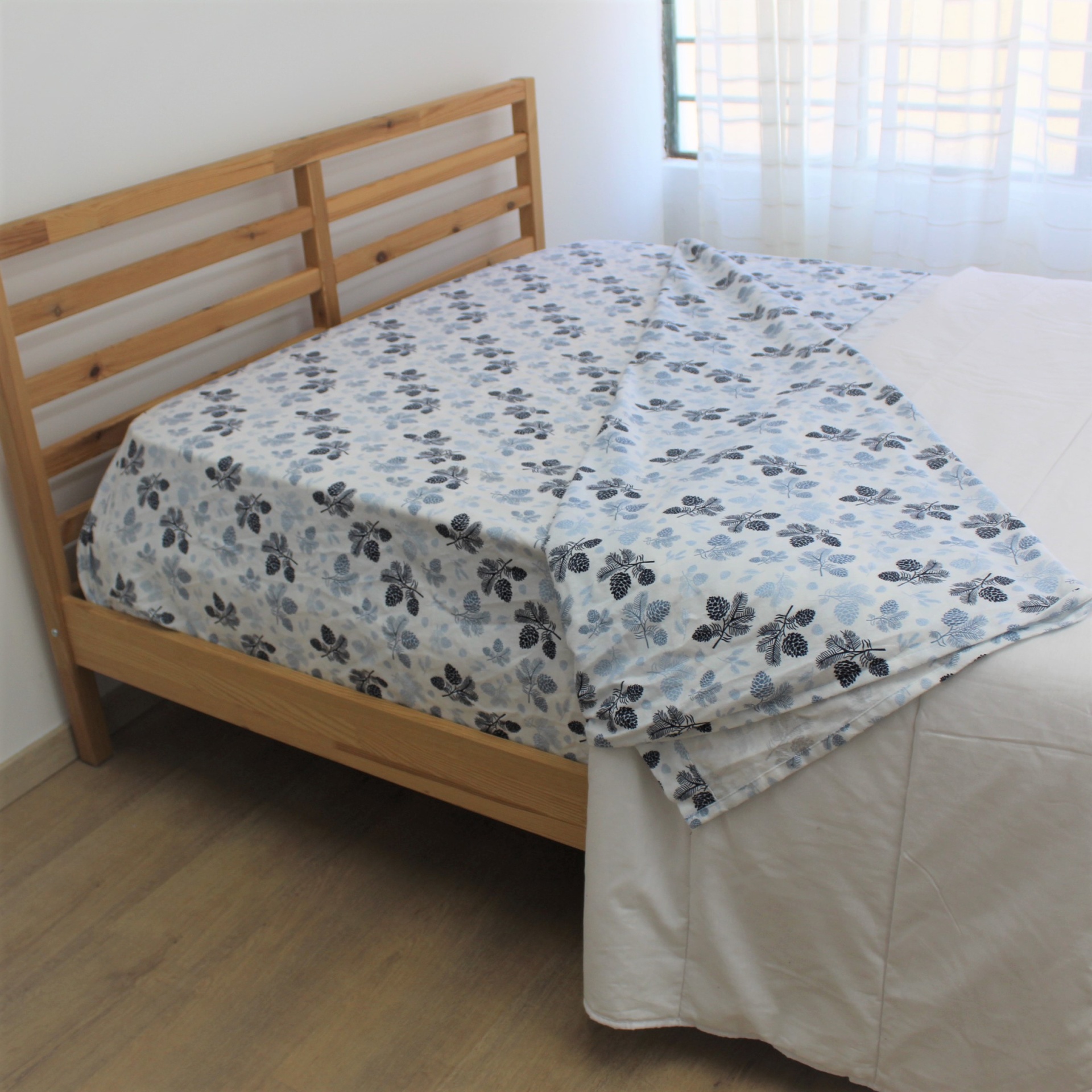 - Cama 120 (Solteiro) - 1 lençol de baixo com elástico (120x200cm) com mais 30cm de altura + 1 lençol de cima (190x280cm) + 2 fronhas de almofada (50x70cm)
